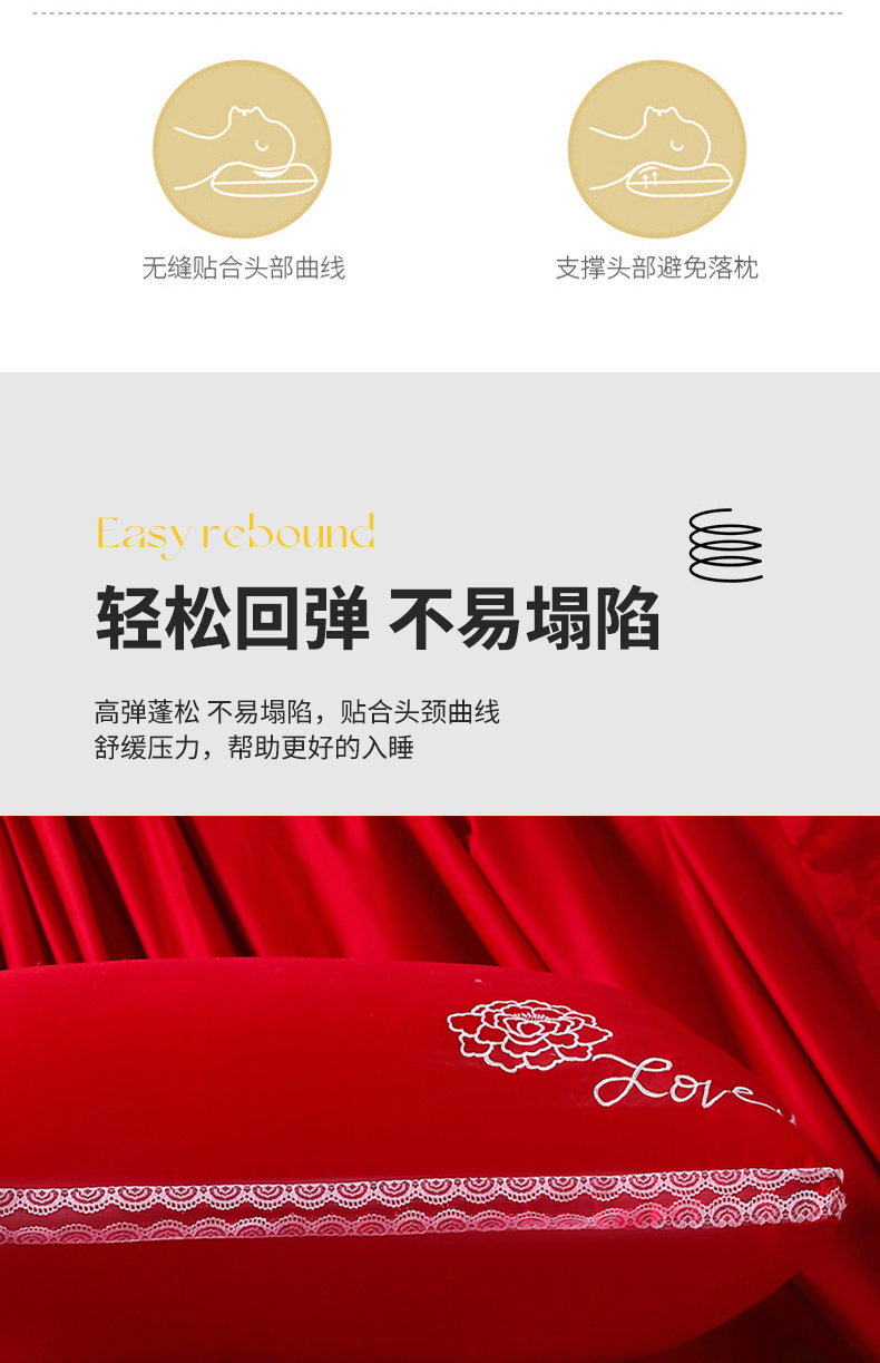当前位置: 91家纺网 > 商品网购 > 枕头/枕芯/保健枕/颈椎枕 > (总)糖果枕芯2025新款爱的玫瑰大红婚庆枕芯大喜喜庆枕头