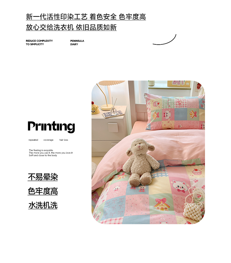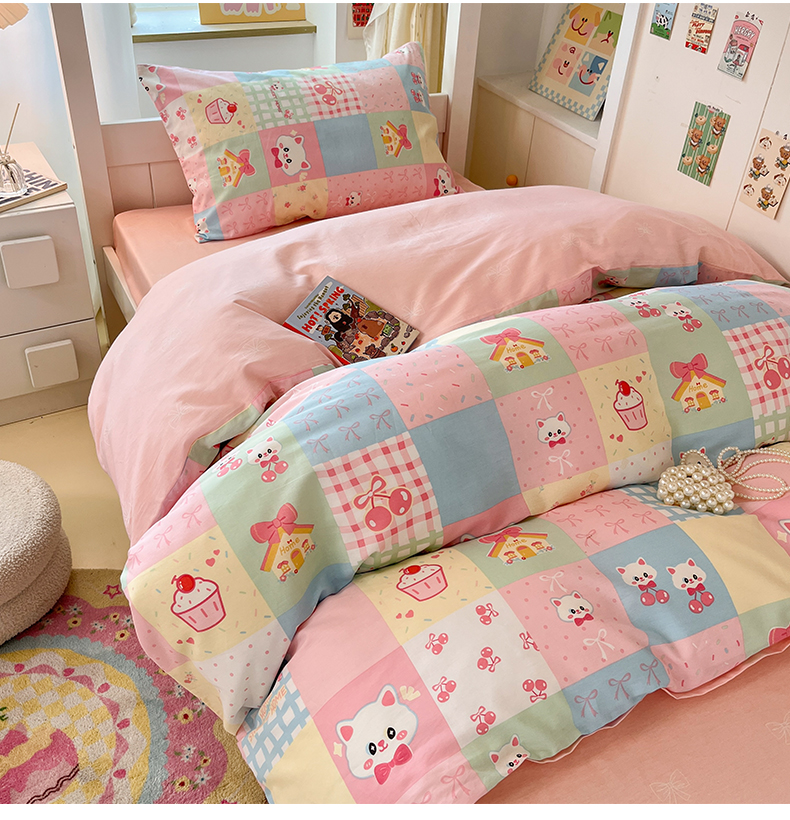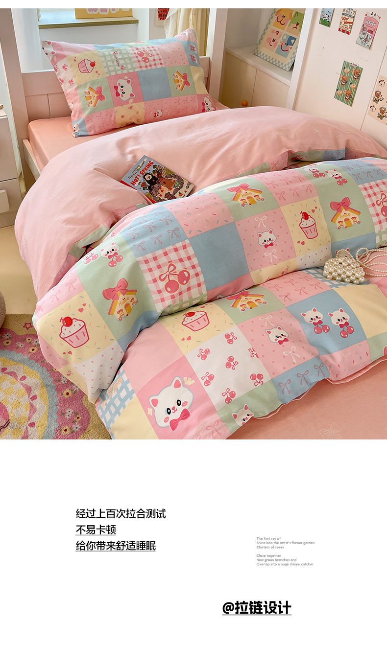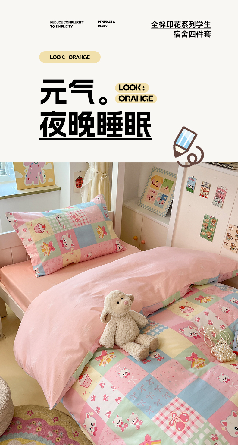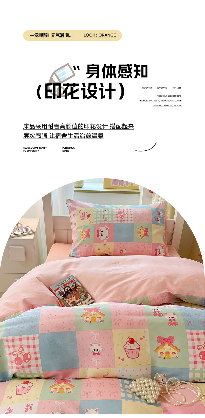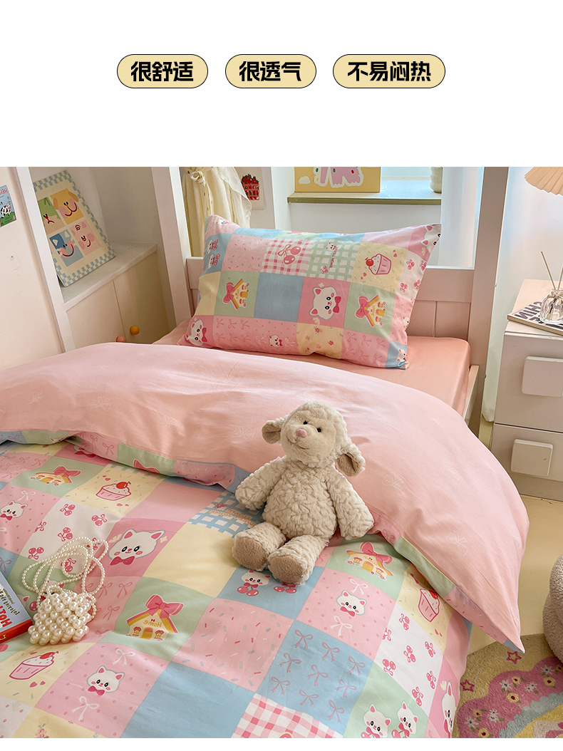 当前位置: 91家纺网 > 商品网购 > 床品套件 > 三件套 > 雅居纺家纺 2025新款全棉纯棉印花系列学生宿舍三四件套上下铺三件套 樱桃猫咪
