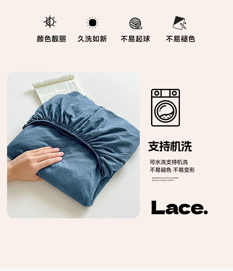 • 91家纺网 家纺一手货源 找家纺 彩韵家纺 2025新款超柔云感双层纱床笠 双层纱-深蓝