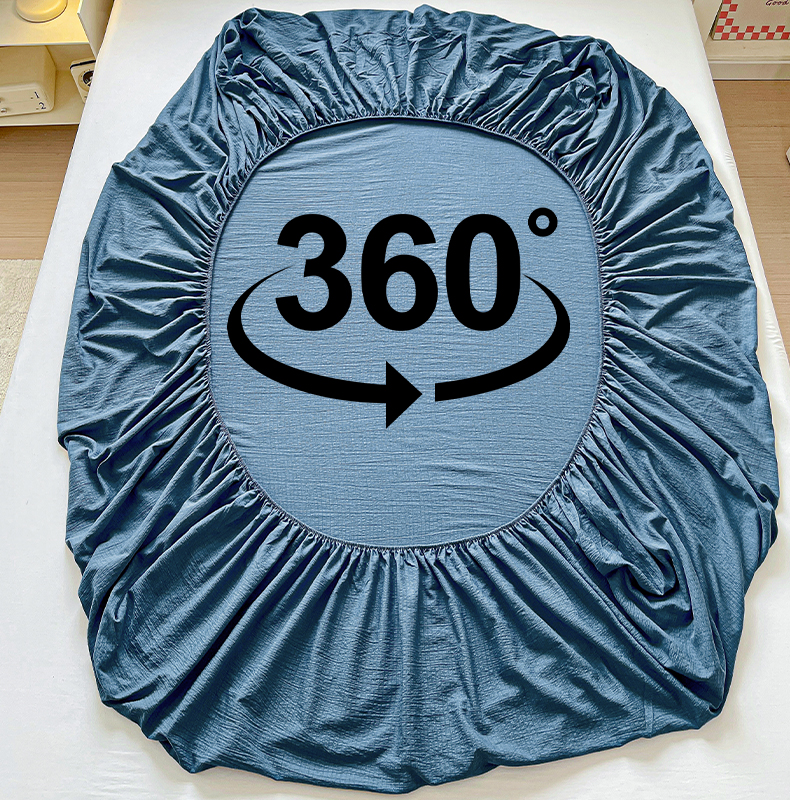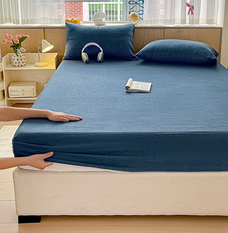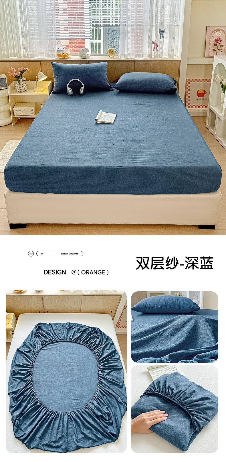彩韵家纺 2025新款超柔云感双层纱床笠 双层纱-深蓝
