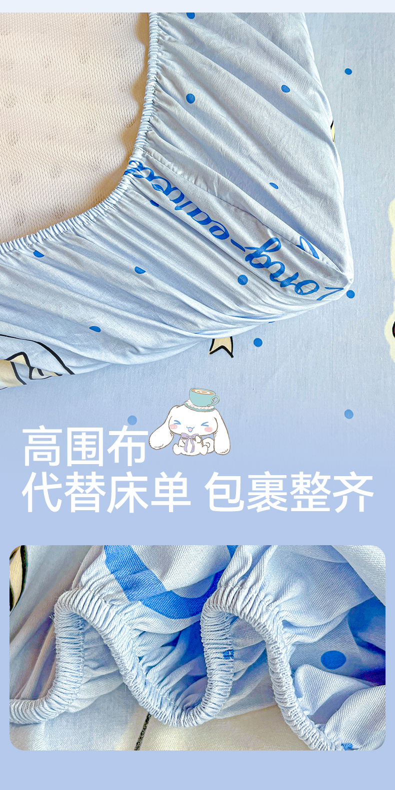 • 91家纺网 家纺一手货源 找家纺 名兮家居 2025-奥特曼-三丽鸥全棉13372学生床上下铺床笠【含防伪标】 点点玉桂狗