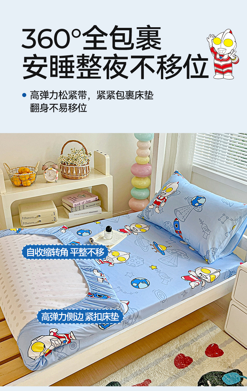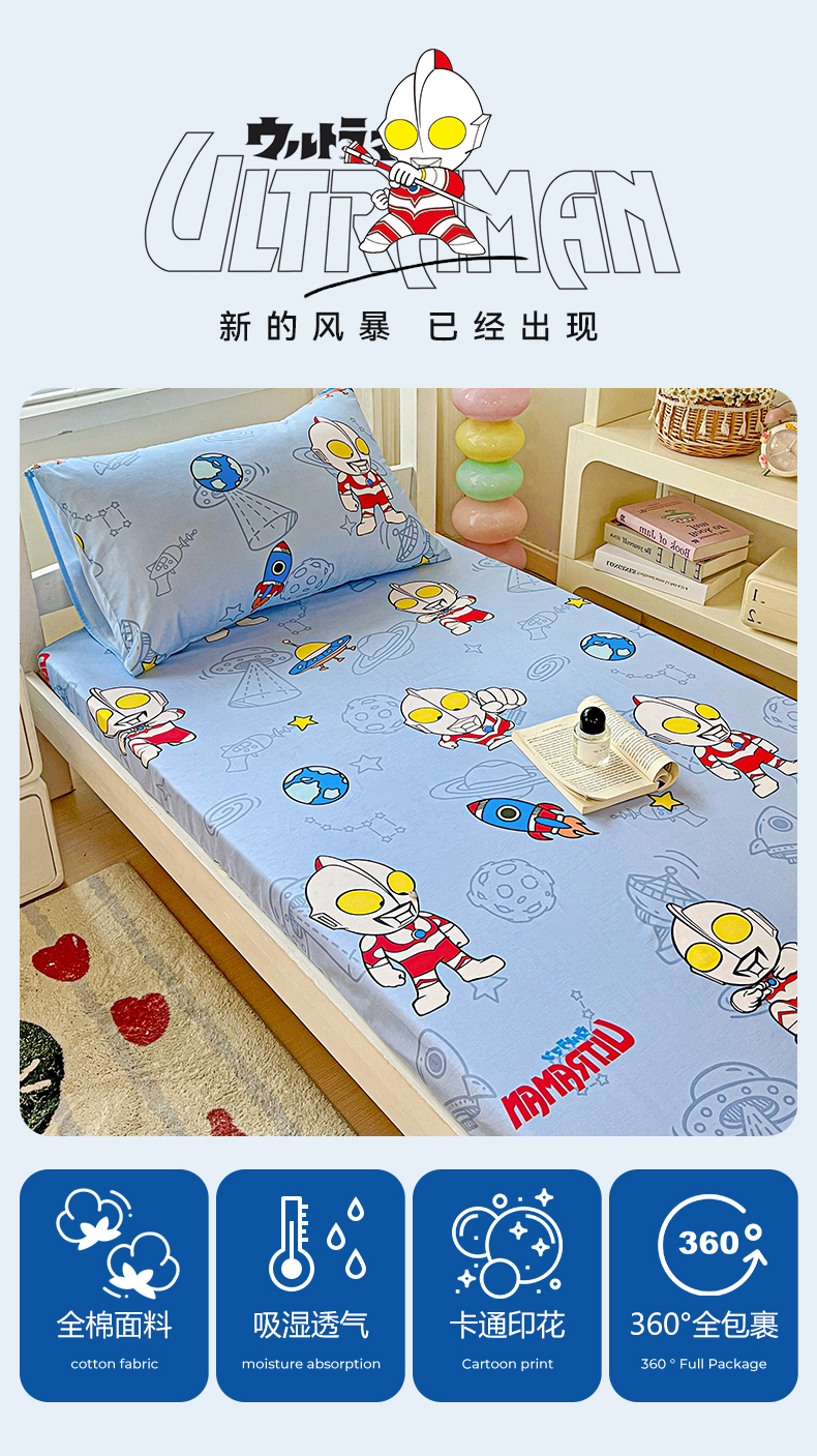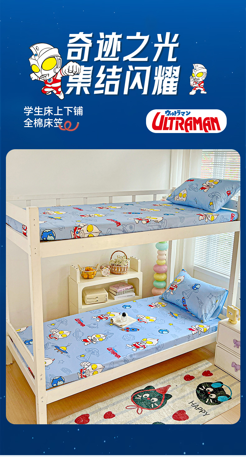 • 91家纺网 家纺一手货源 找家纺 名兮家居 2025-奥特曼-三丽鸥全棉13372学生床上下铺床笠【含防伪标】 太空奥特曼