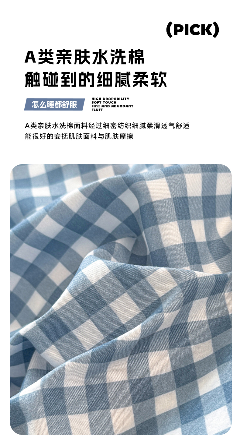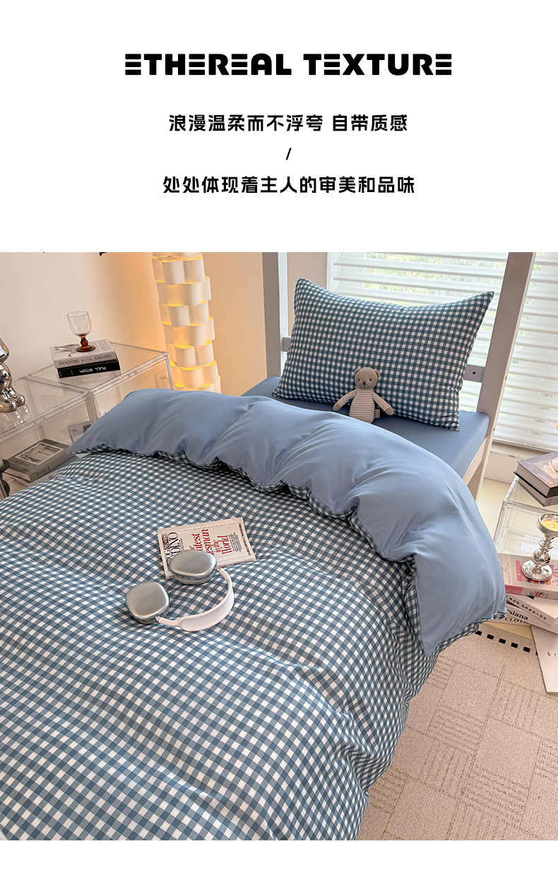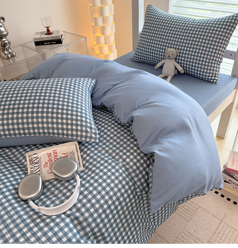 十一家居2025年新款ins风A类亲肤水洗棉学生宿舍三件套——悸动系列 蓝小格+海青蓝