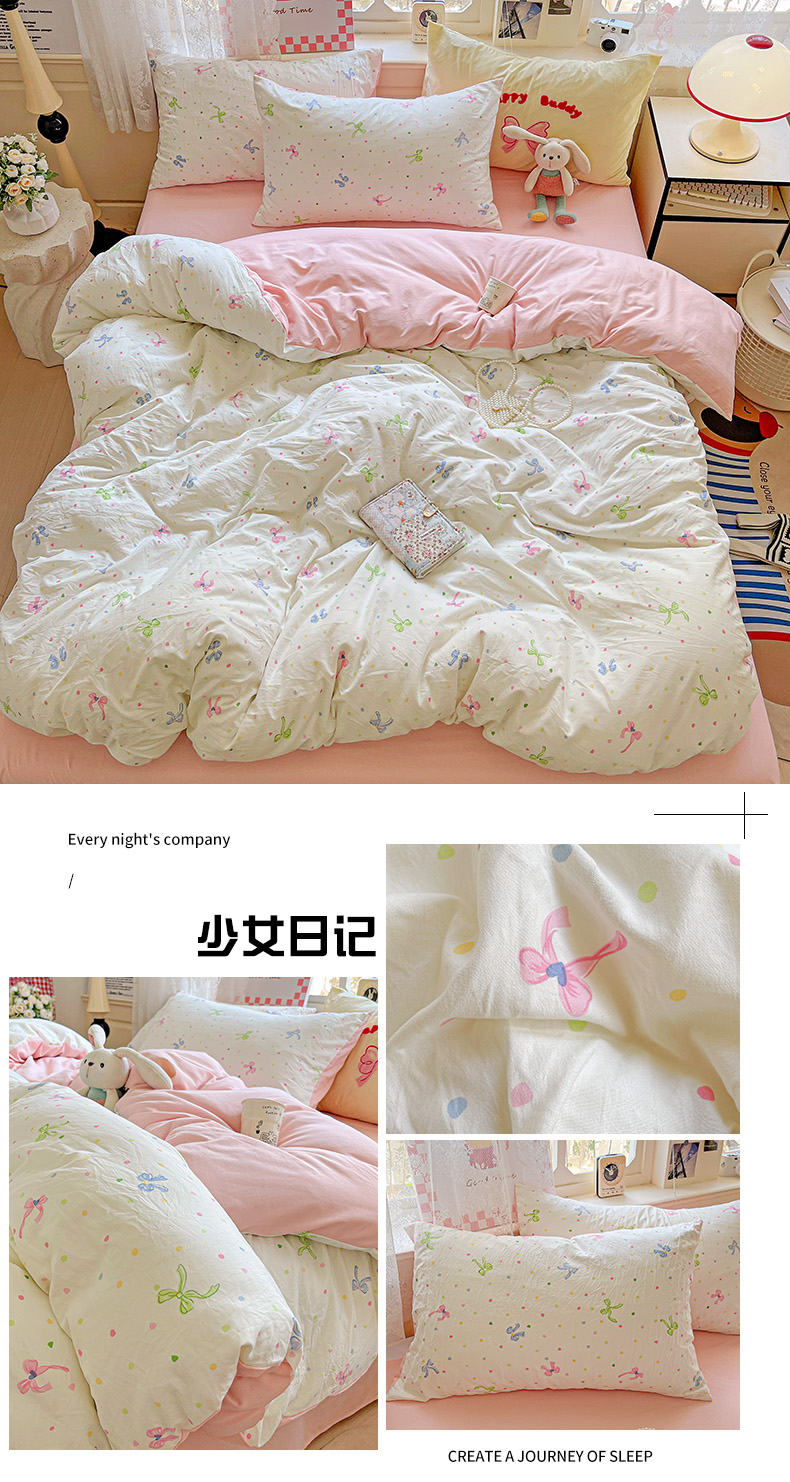 (总)布可家纺 2025新款水洗磨毛印花四件套,雏菊KT,粉粉KT,蝴蝶结KT,开心生活,睡梦,甜筒KT,Kt乐园