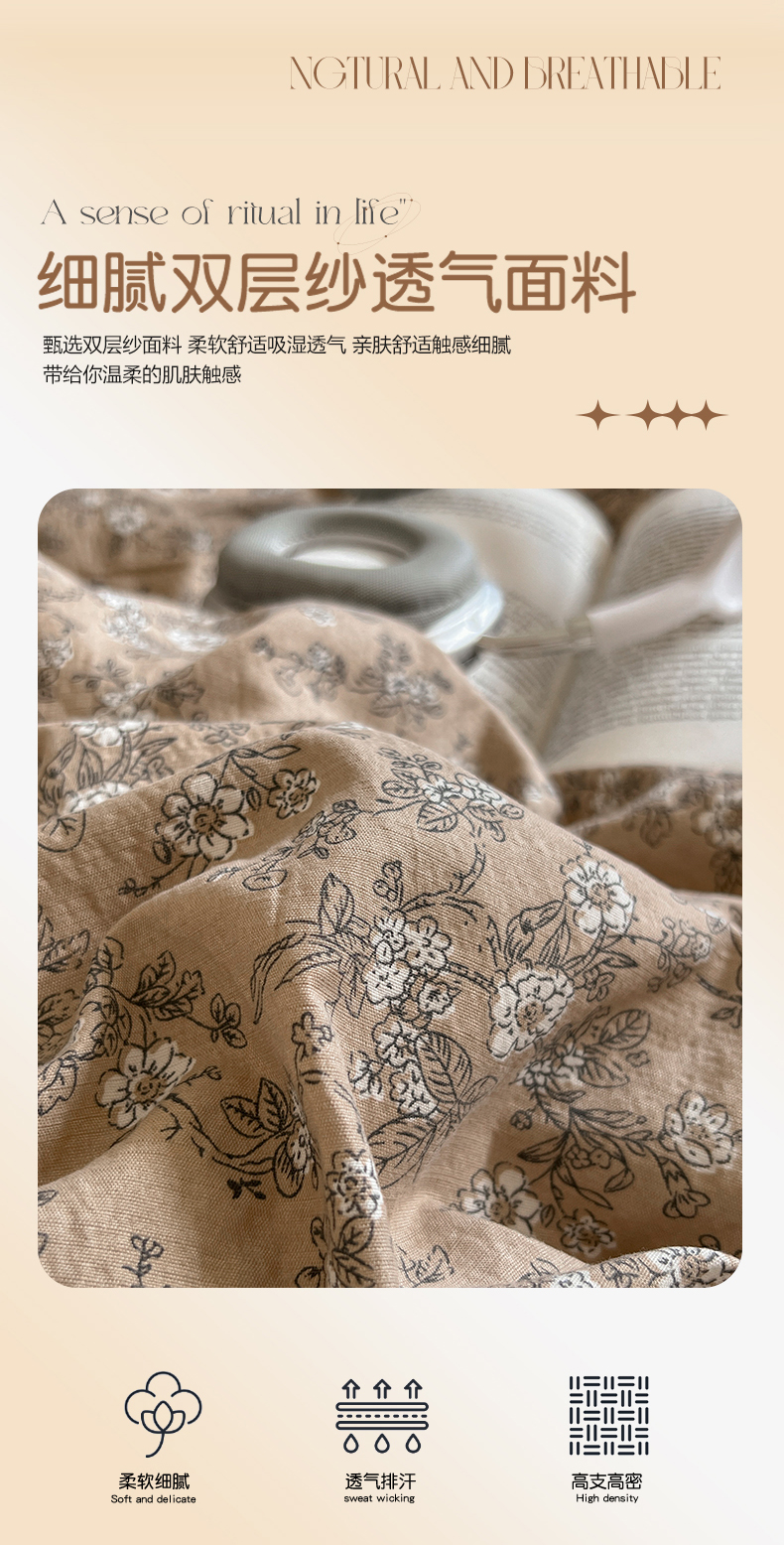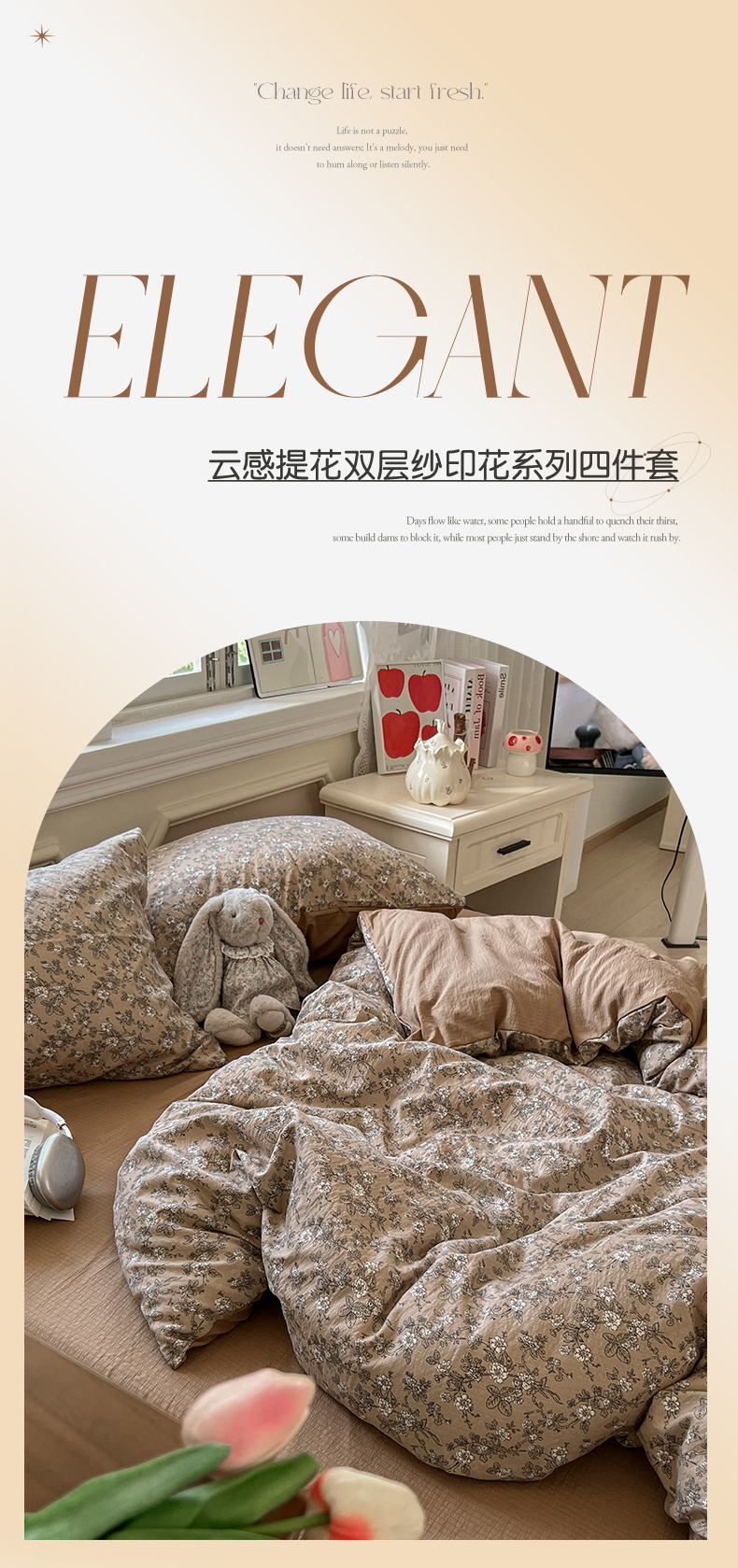 当前位置: 91家纺网 > 商品网购 > 床品套件 > 四件套 > 双层纱四件套 > 妖妖家纺 2025新款云感双层纱四件套 花间语