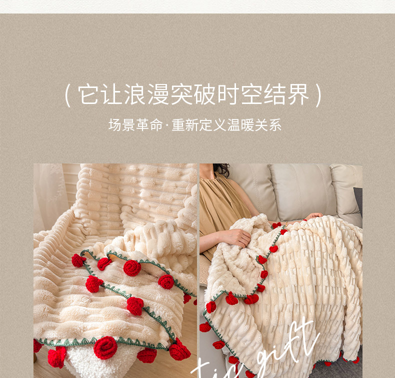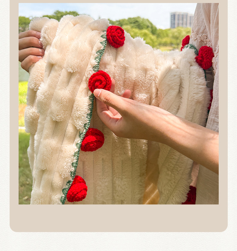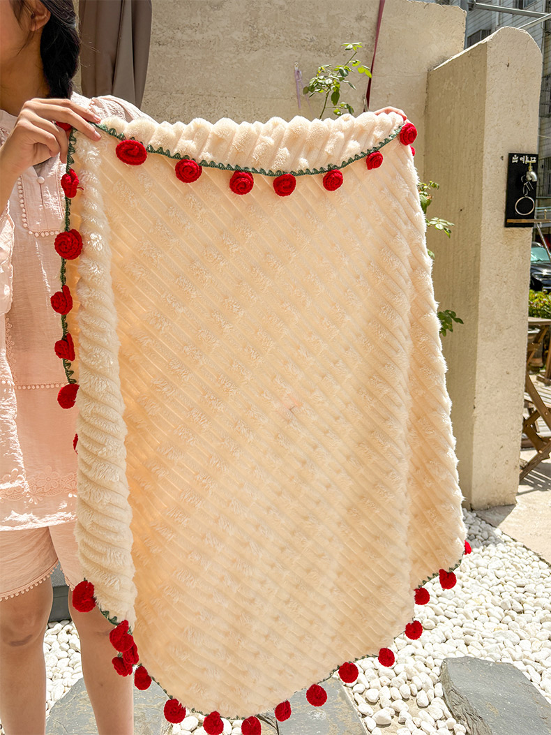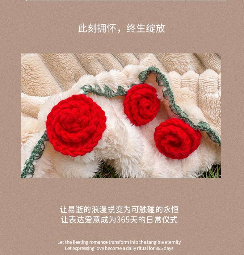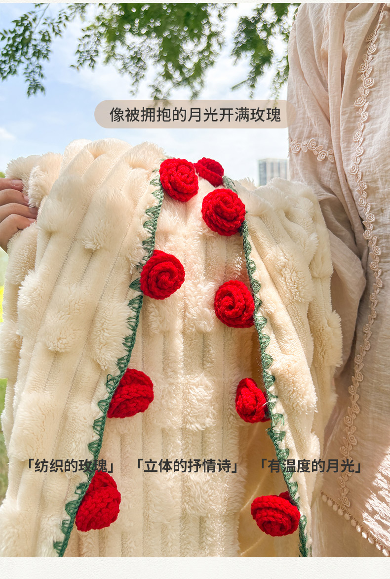 商品名称:(总)潮邦创意家居2025新款手工毛线编织竹纹绒玫瑰花束毯