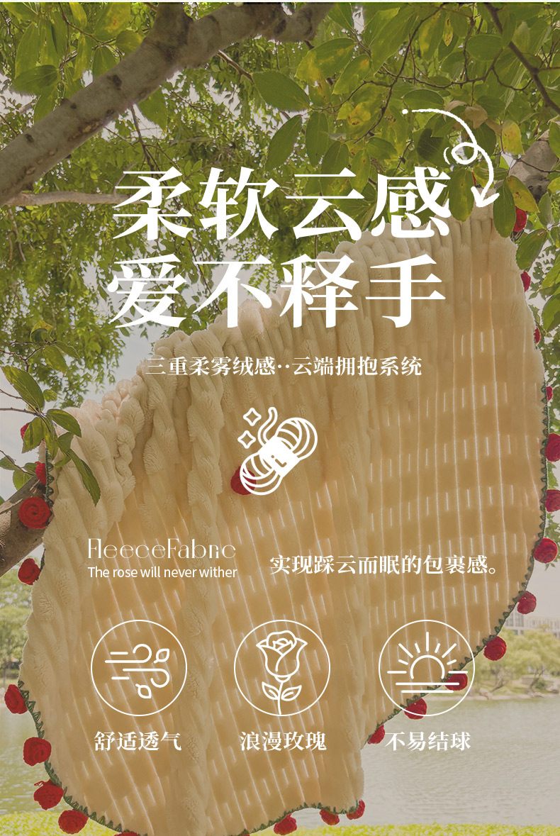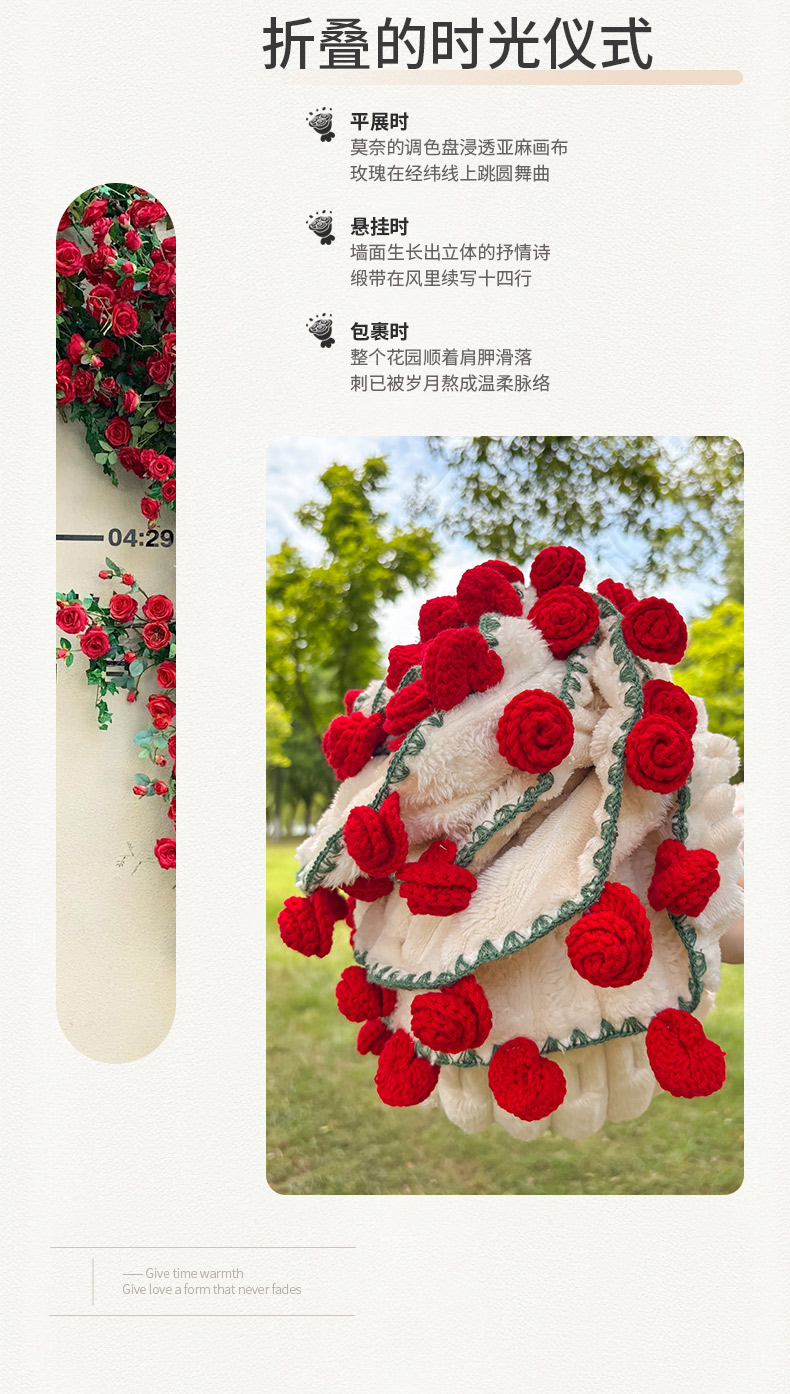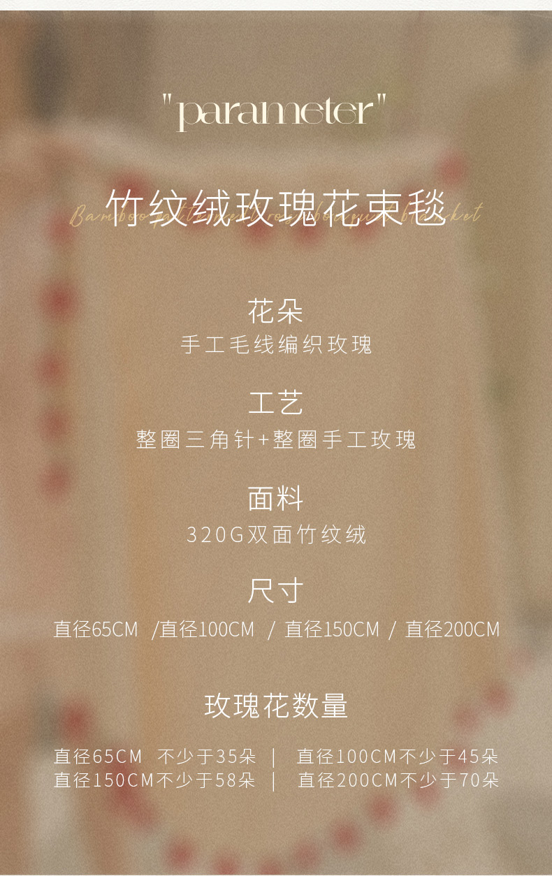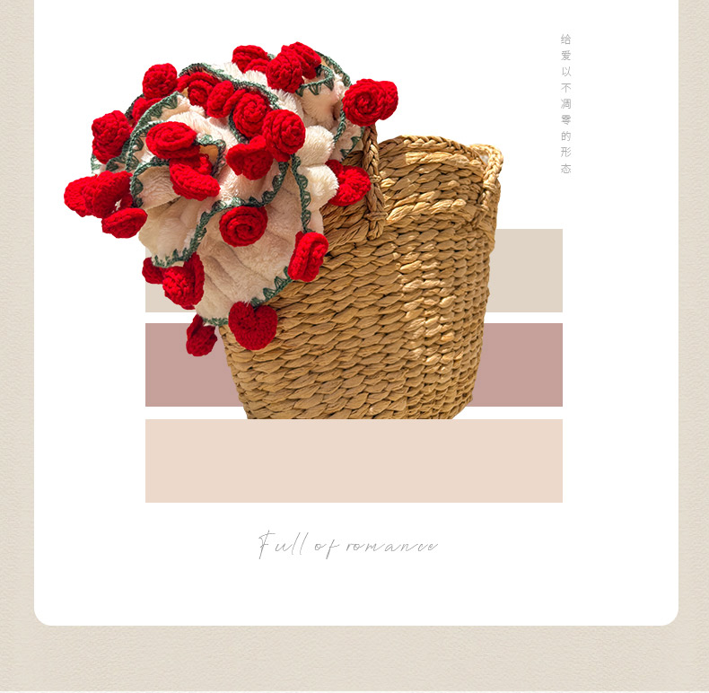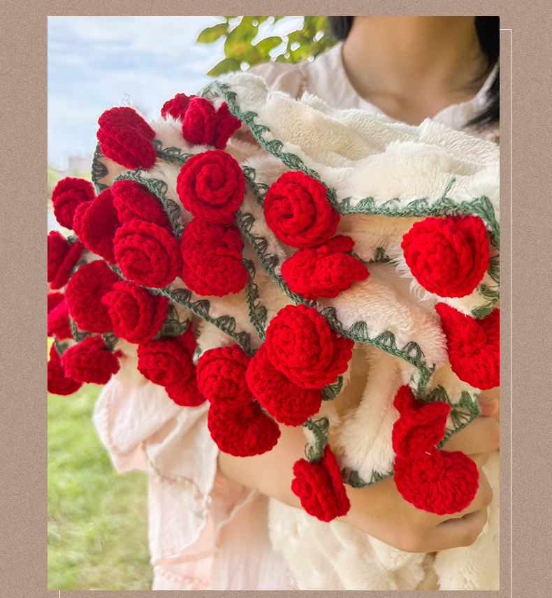 商品名称:(总)潮邦创意家居2025新款手工毛线编织竹纹绒玫瑰花束毯