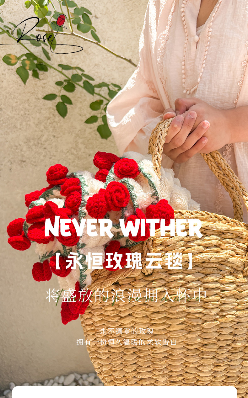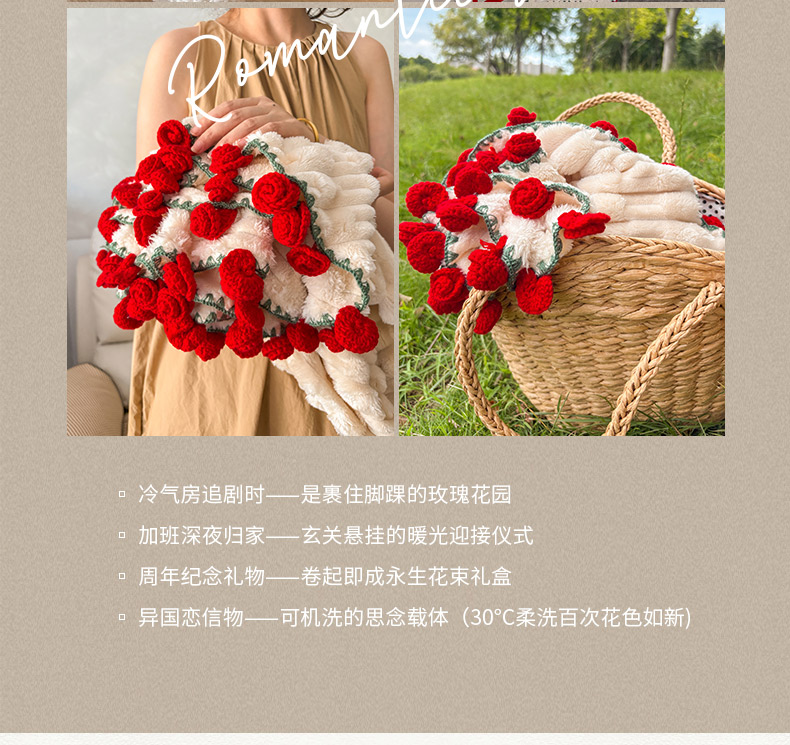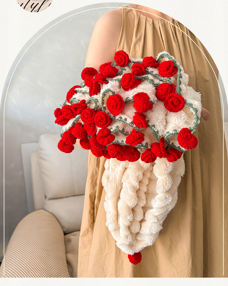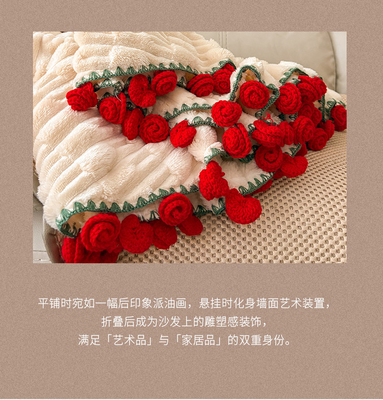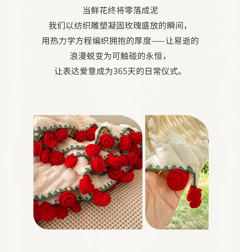 (总)潮邦创意家居2025新款手工毛线编织竹纹绒玫瑰花束毯