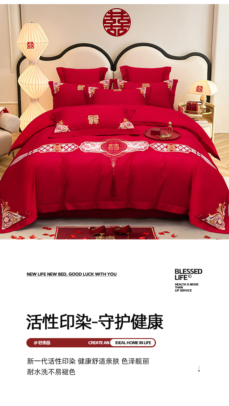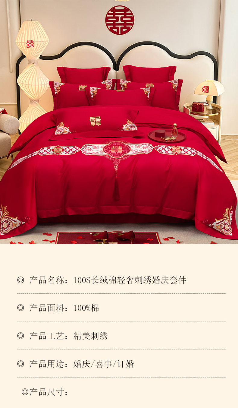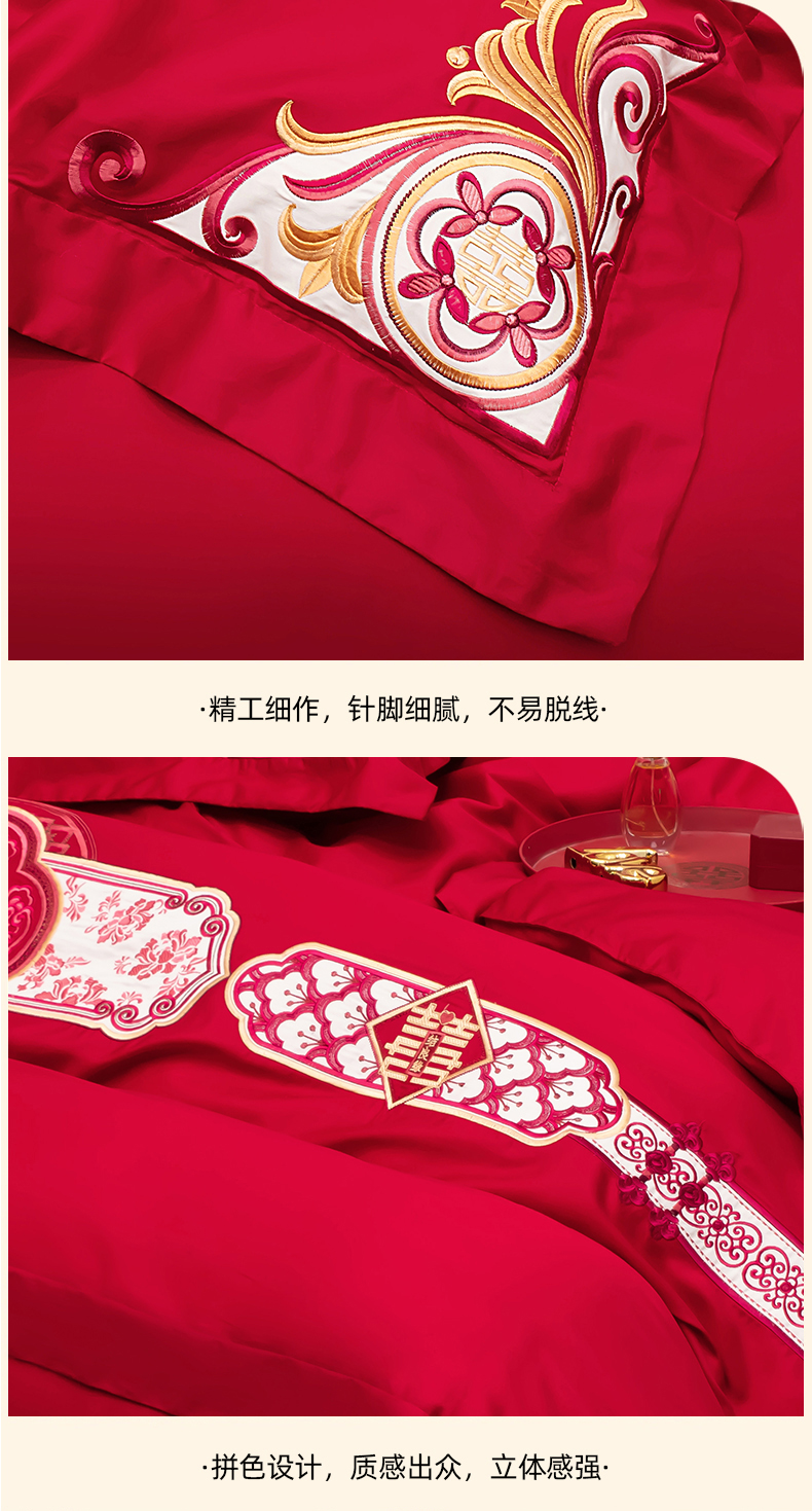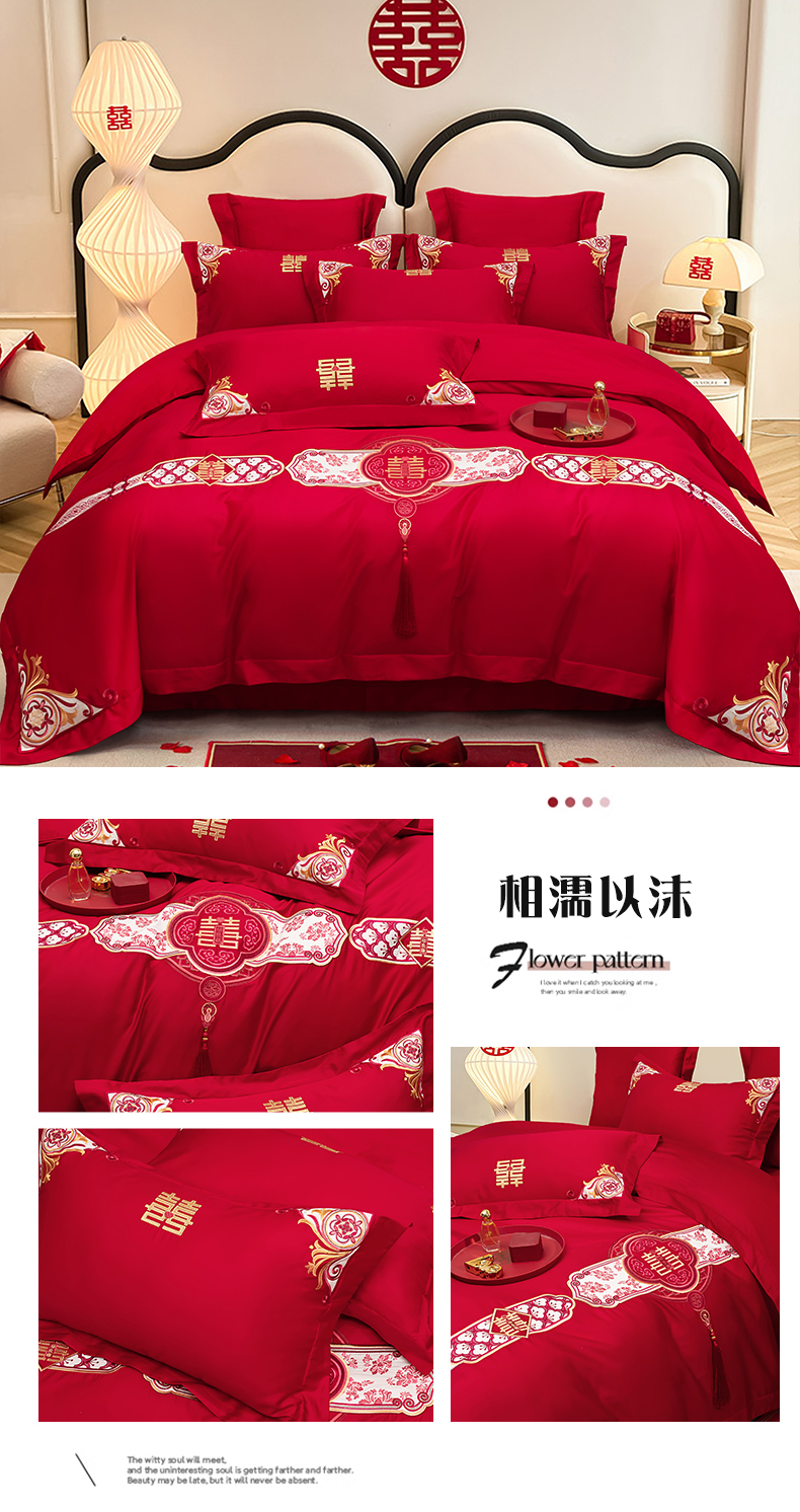 当前位置: 91家纺网 > 商品网购 > 床品套件 > 四件套 > 婚庆四件套 > 千禧家纺 2025新款双面长绒棉轻奢工艺款刺绣婚庆套件(贵妃枕非图上所展示款)相濡以沫