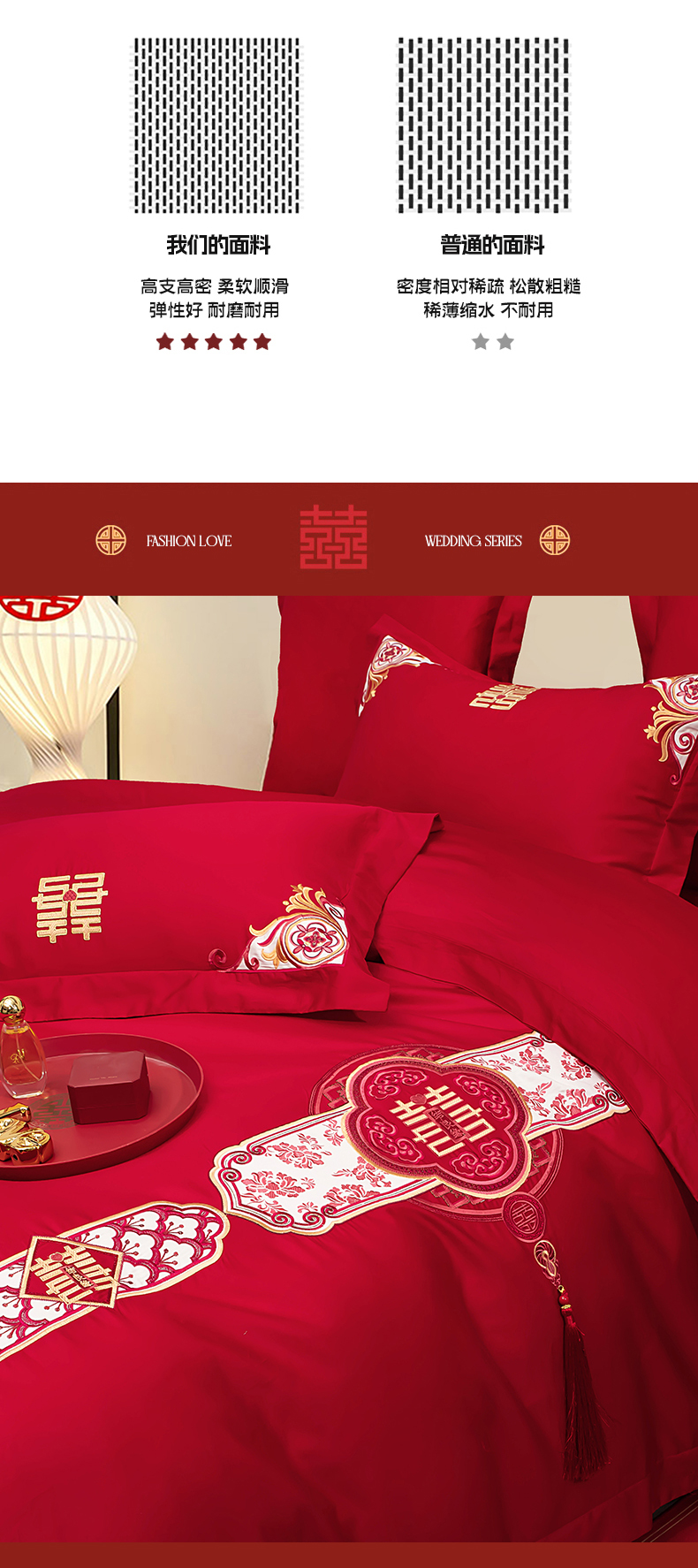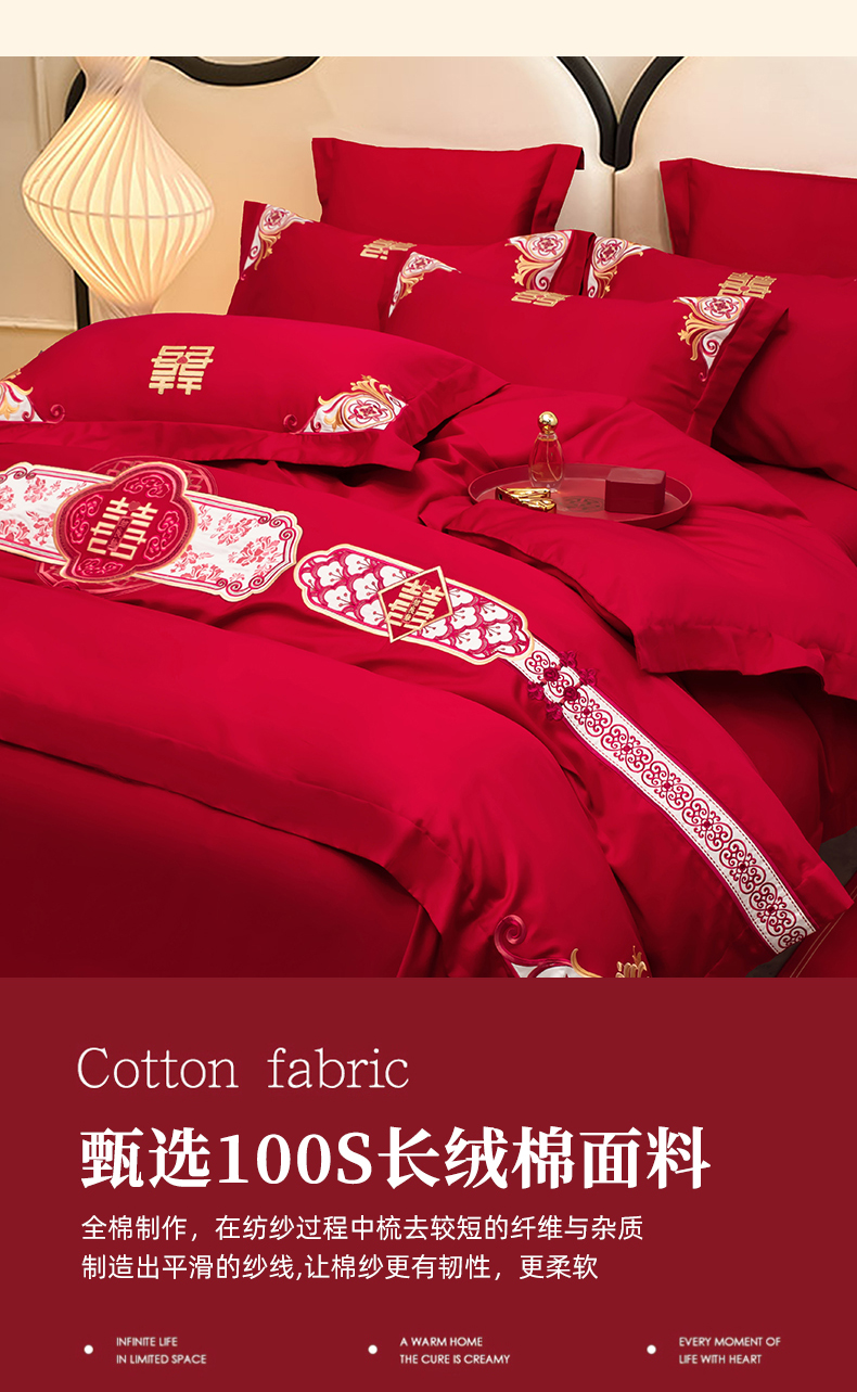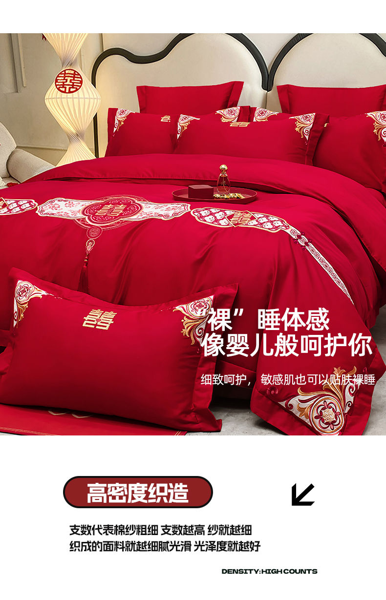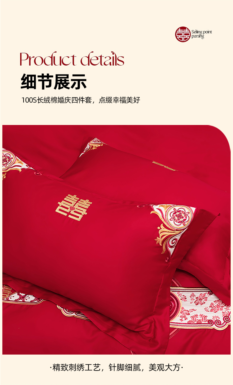 当前位置: 91家纺网 > 商品网购 > 床品套件 > 四件套 > 婚庆四件套 > 千禧家纺 2025新款双面长绒棉轻奢工艺款刺绣婚庆套件(贵妃枕非图上所展示款)相濡以沫