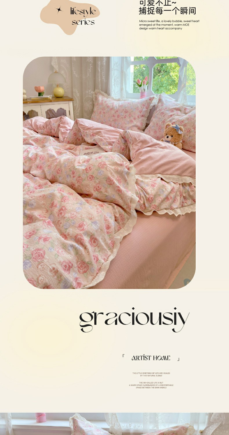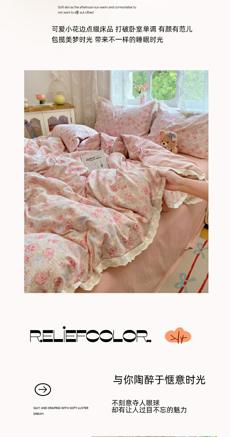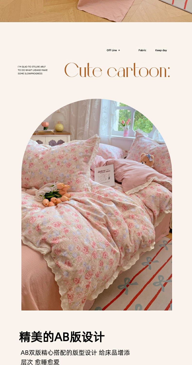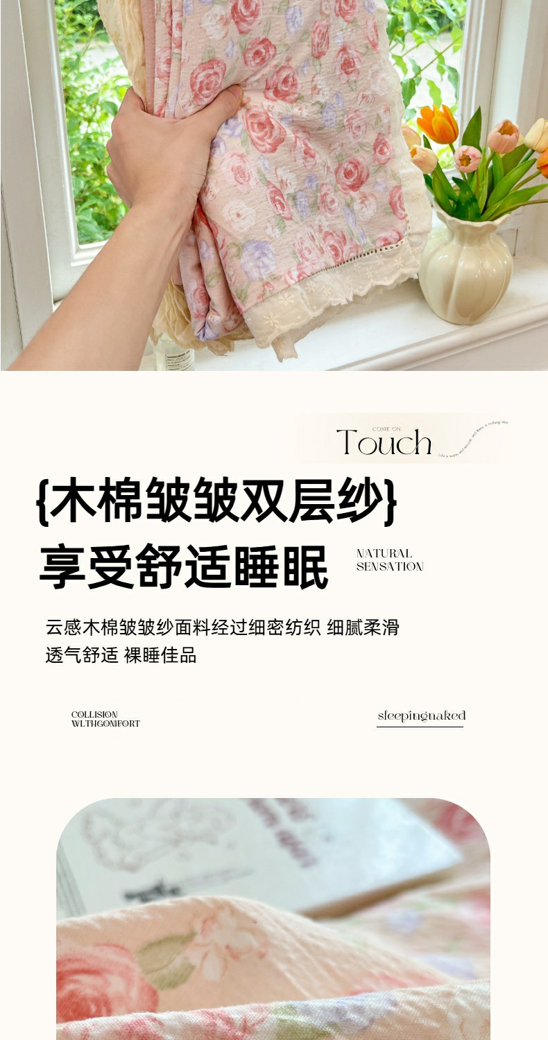当前位置: 91家纺网 > 商品网购 > 床品套件 > 四件套 > 全棉普通四件套 > 优佳优品 2025新款A类云感木棉皱皱双层纱全棉镂空花边四件套(提供买家秀) 戴安娜玫瑰