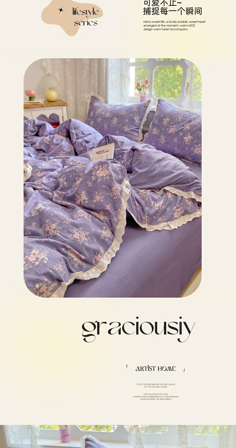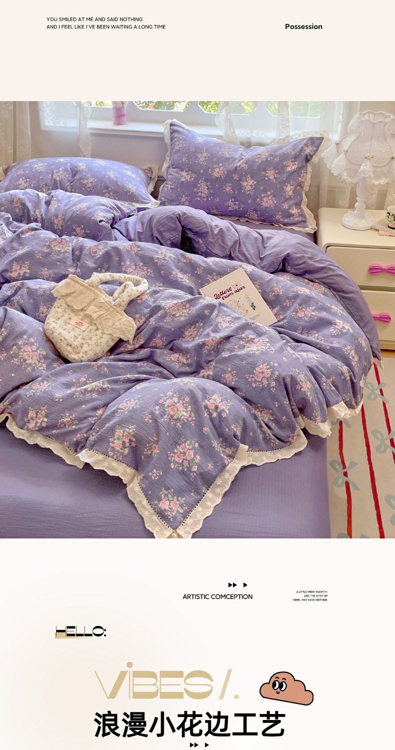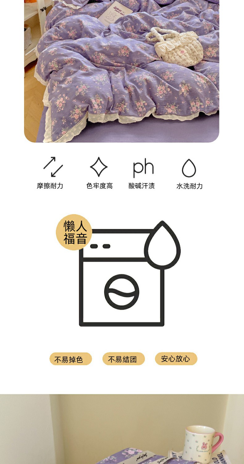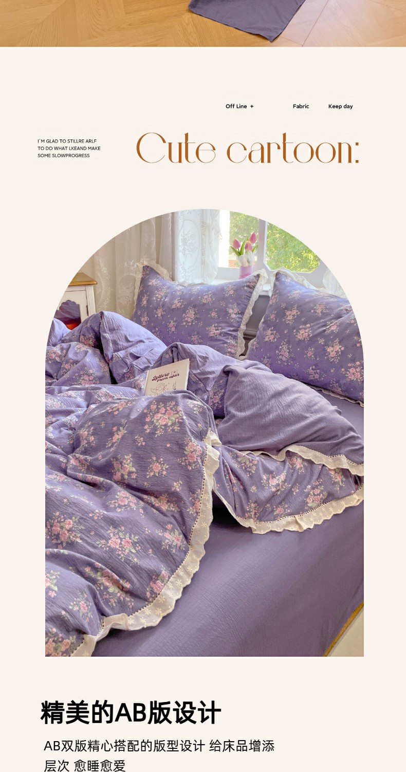当前位置: 91家纺网 > 商品网购 > 床品套件 > 四件套 > 全棉普通四件套 > 优佳优品 2025新款A类云感木棉皱皱双层纱全棉镂空花边四件套(提供买家秀) 紫藤花语
