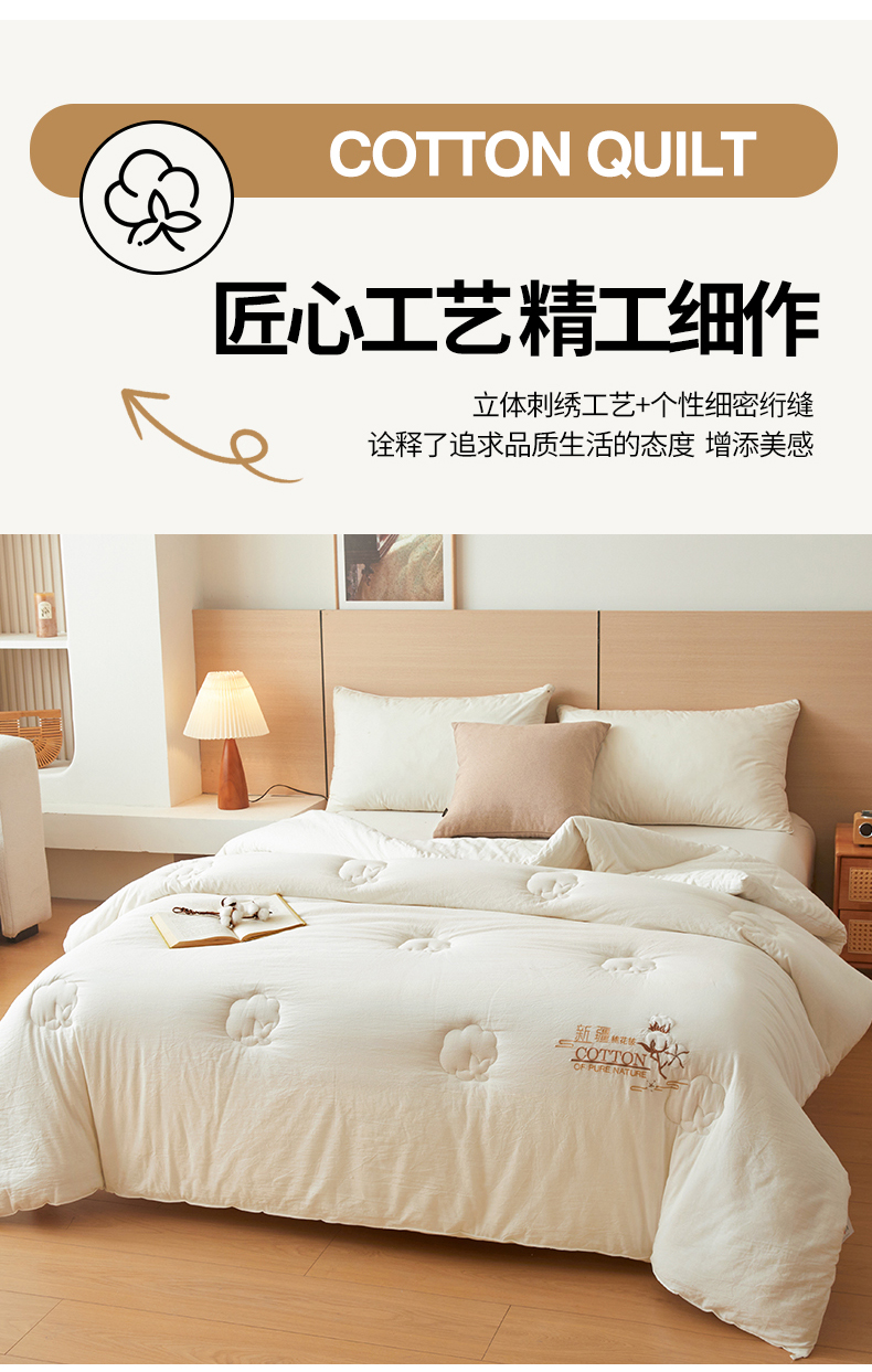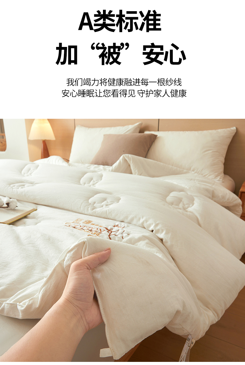 (总)西域种棉人·千百笠 2025新款A类学生款填充100%棉新疆棉花被子毛巾绣贴布绣冬被棉被全棉冬季加厚保暖纯棉花被芯 91家纺网 家纺一手货源 找家纺 (总)2025新款A类学生款填充100%棉,风铃白,风铃灰