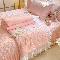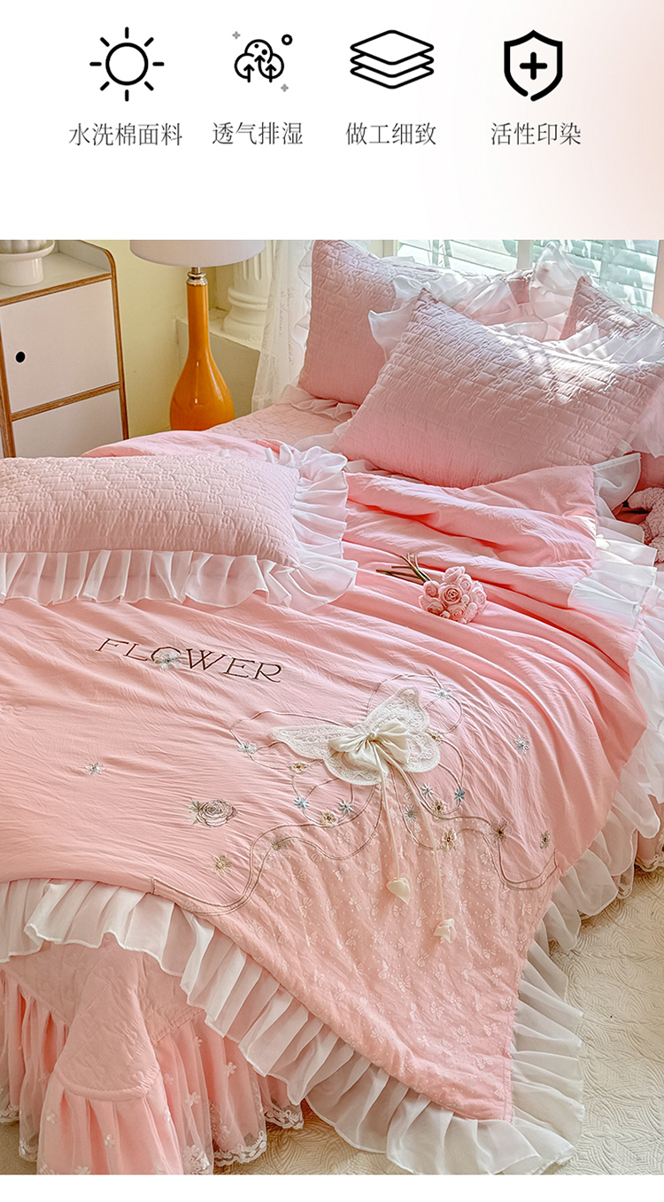 苏米娜家纺2025春夏新品韩版甜美公主风超柔水洗棉床盖四件套刺绣针织棉双层纱纯棉棉麻全棉少女心夹棉床裙款夏被款床盖四件套 幻蝶-樱花粉