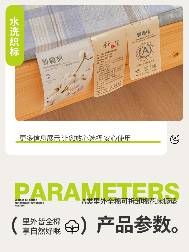 商品名称:(总)西域种棉人·千百笠 2025新款A类100%棉里外全棉新疆棉花床垫宿舍学生单人床褥垫家用卧室垫被褥子
