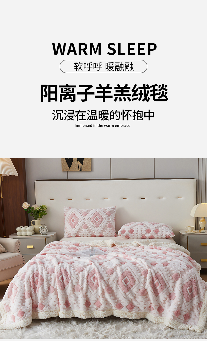 商品名称:缦纱 2025新款波西米亚阳离子提花镂空塔芙绒羊羔绒保暖午睡双层毛毯办公室盖毯 菱格-柔粉