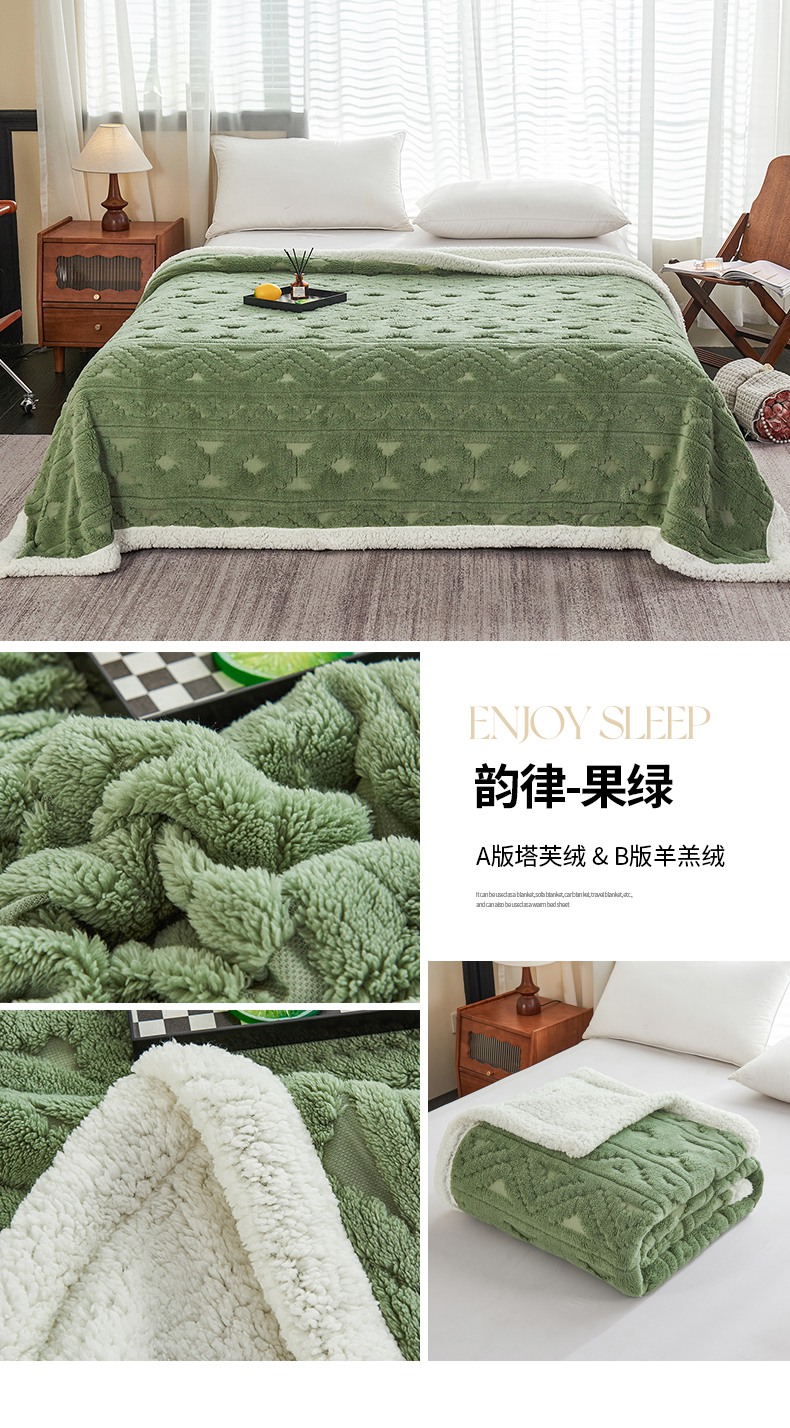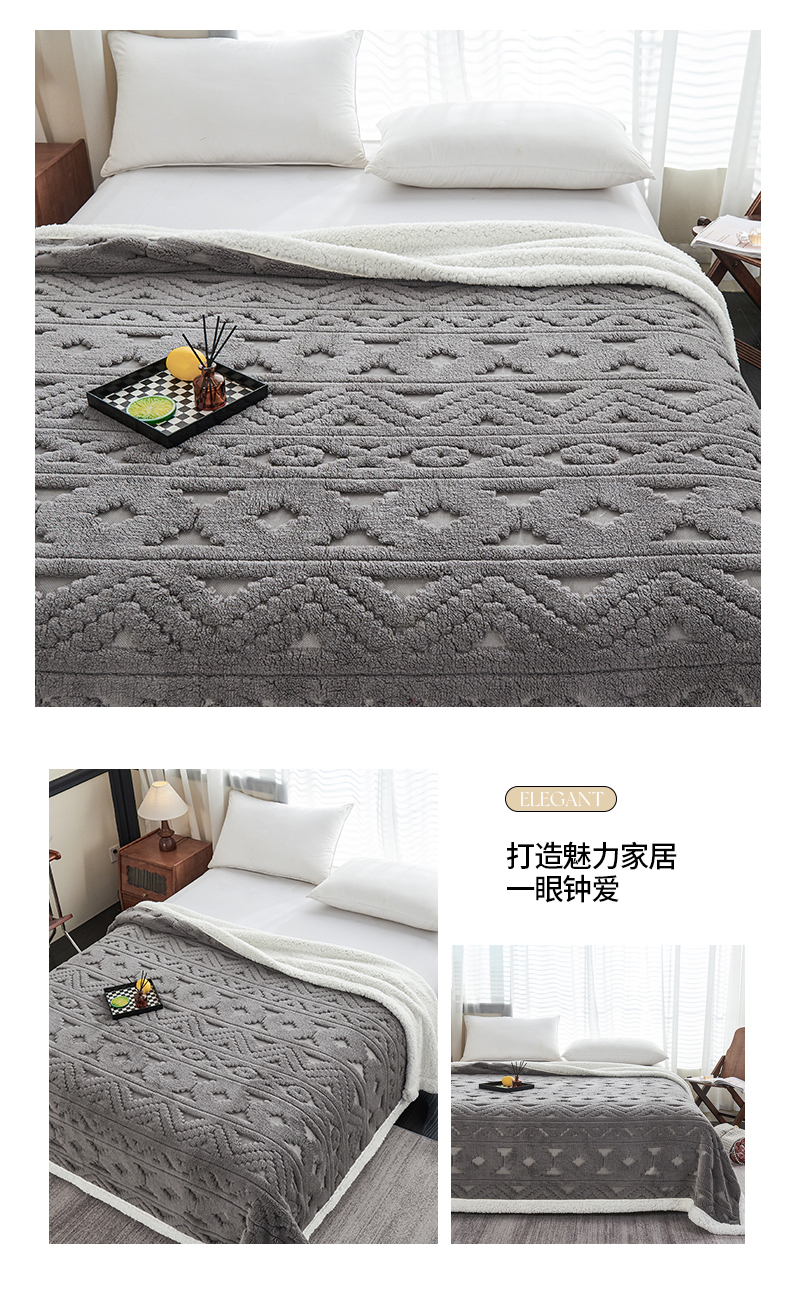 商品名称:缦纱 2025新款提花舒棉绒镂空塔芙绒羊羔绒双层毛毯跨境电商 韵律-深灰