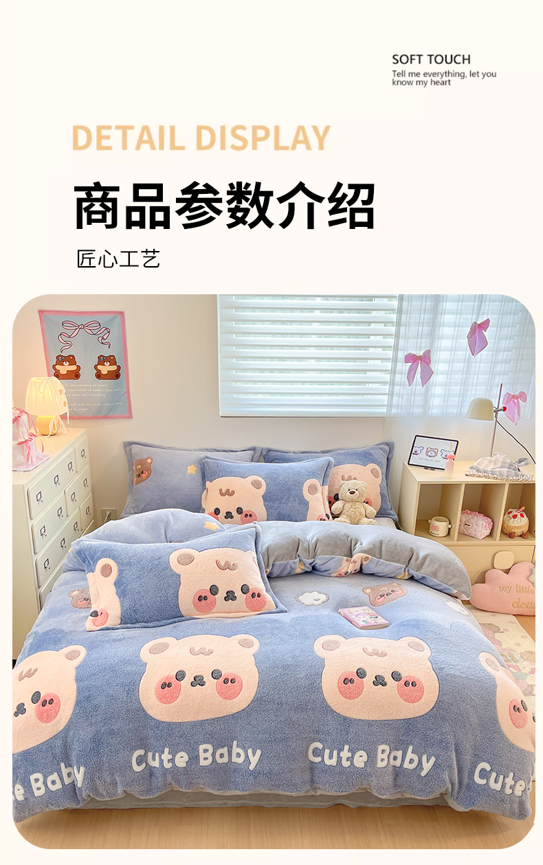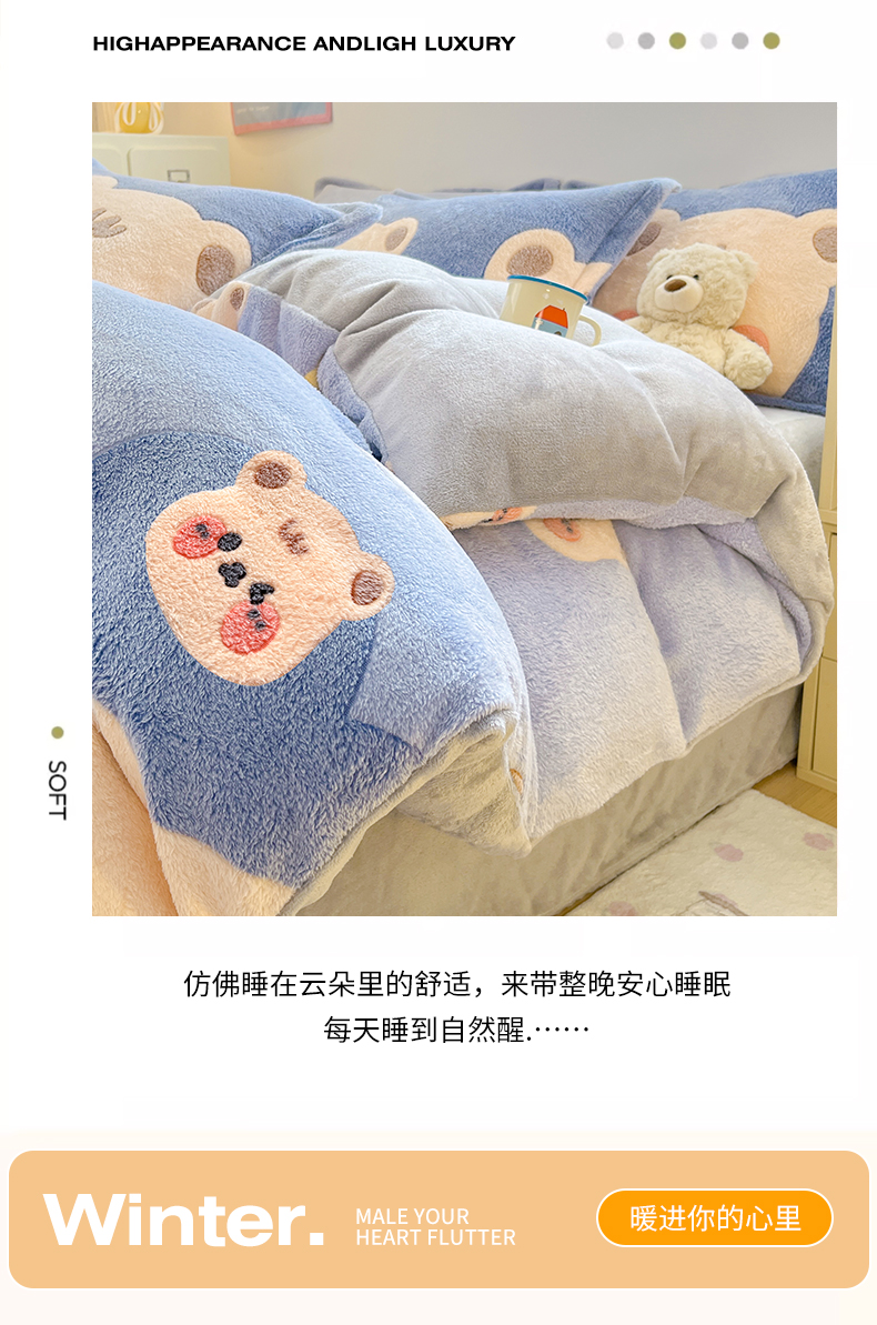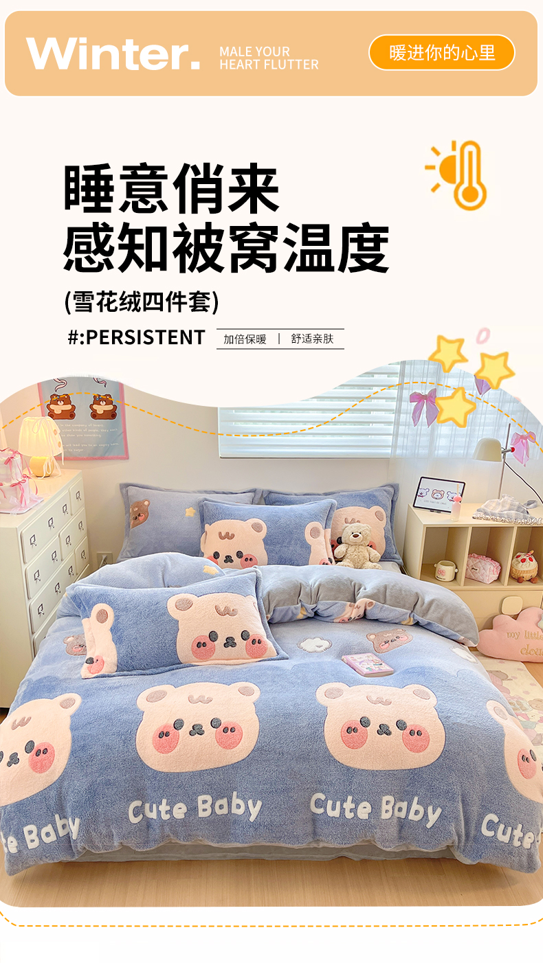当前位置: 91家纺网 > 商品网购 > 床品套件 > 四件套 > 其它四件套 > 川悦生活 2025新款立体雪花绒印花大床四件套系列一场景一 熊小巴
