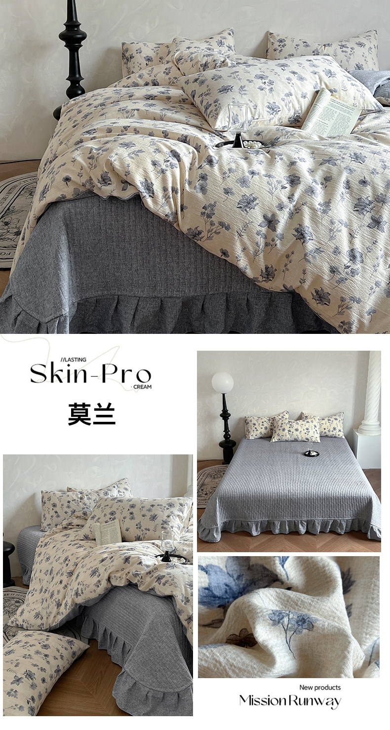 商品名称:(总)美梦家纺 2025新款高克重加厚亚麻皱皱纱床盖四件套系列(提供买家秀)