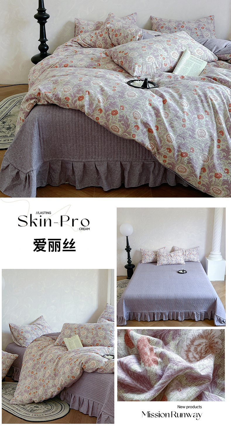 (总)美梦家纺 2025新款水洗棉花边夹棉床盖款四件套,波点,蝴蝶,玫瑰花园,樱桃,澜音花香