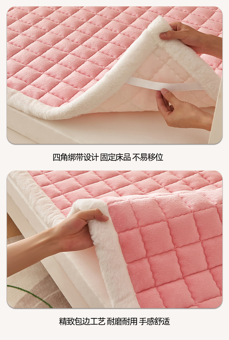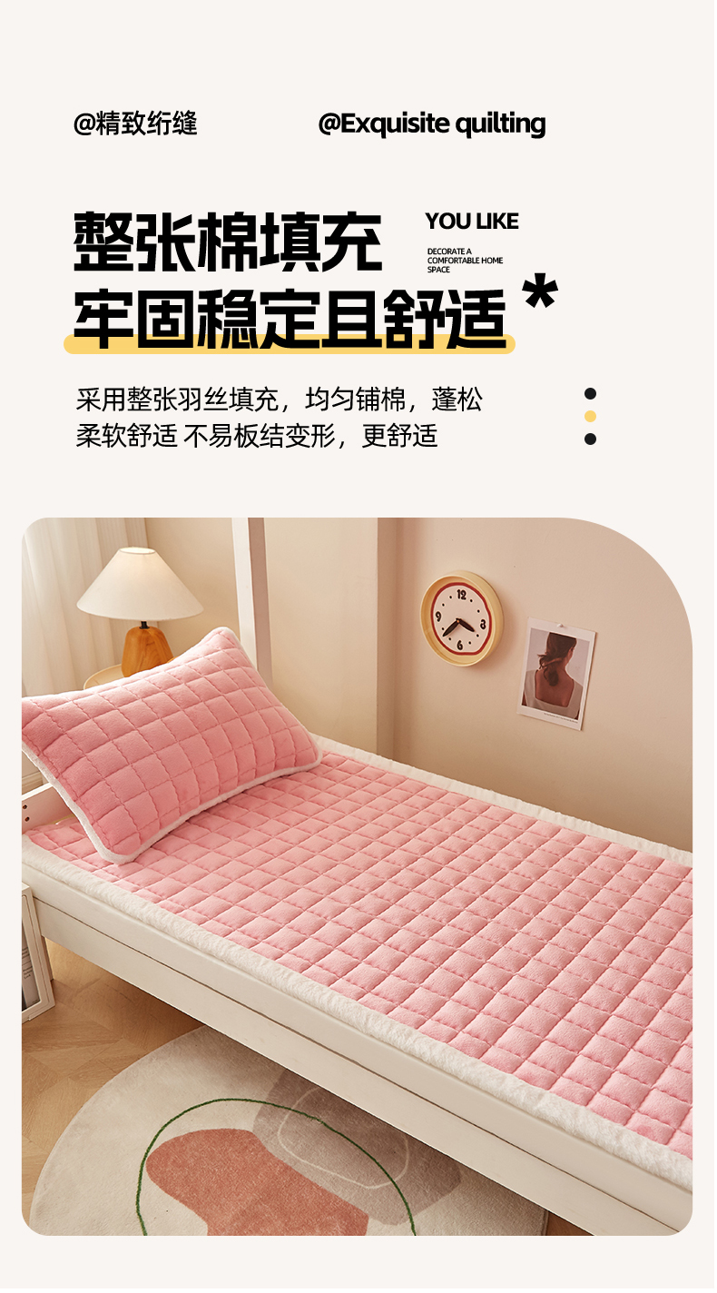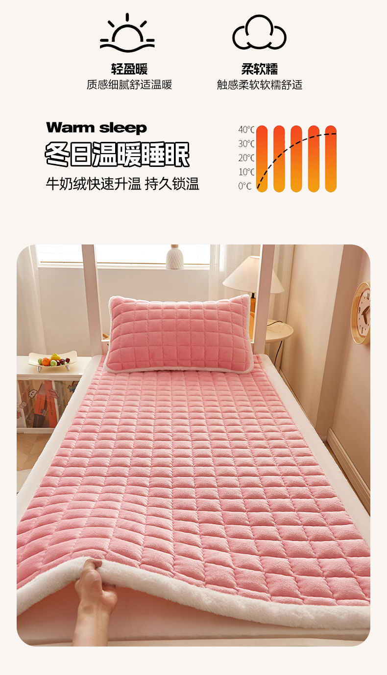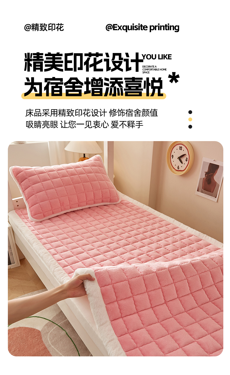 当前位置: 91家纺网 > 商品网购 > 床垫/床褥 > 普通床垫 > 东宇床垫 2025新款A类牛奶绒印花直角防滑床垫床褥三件套-学生款 粉格甜心