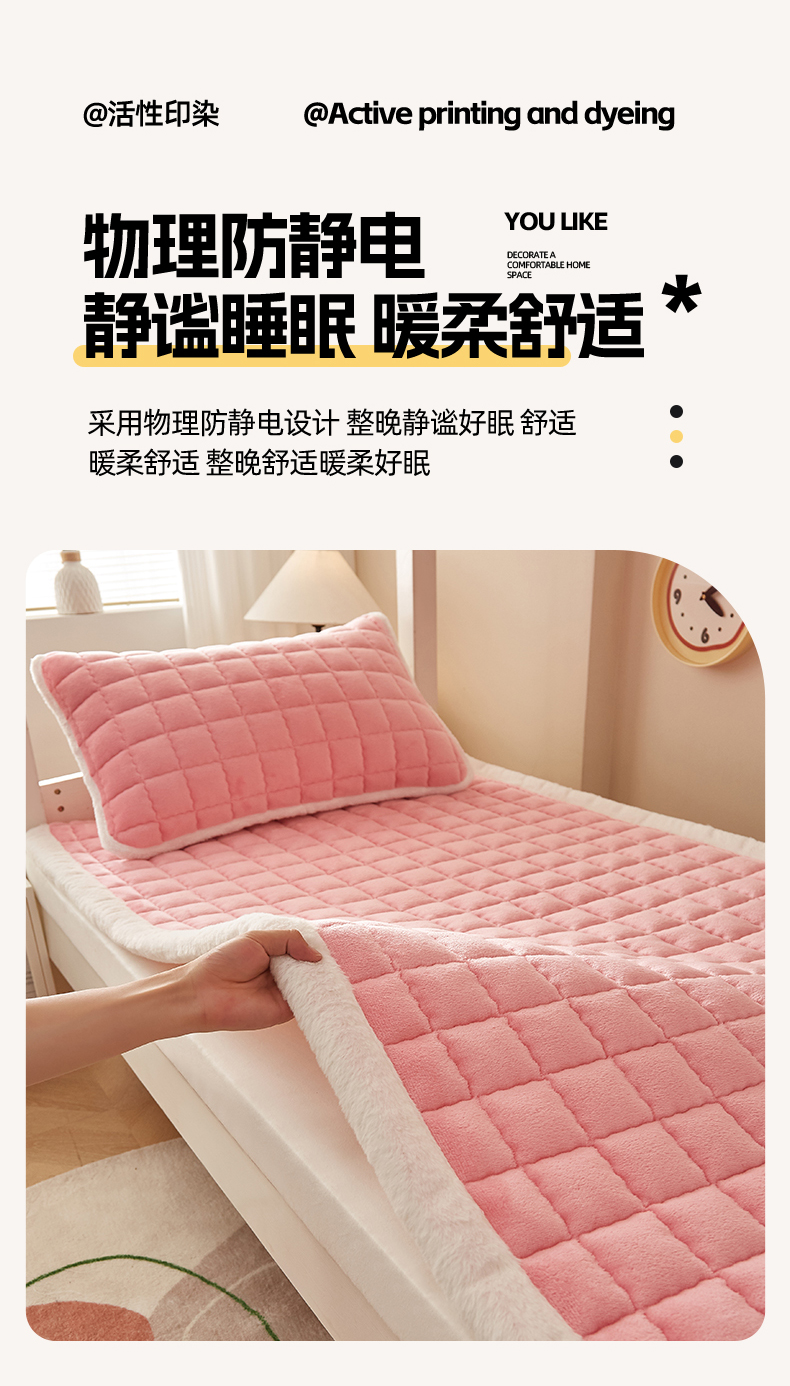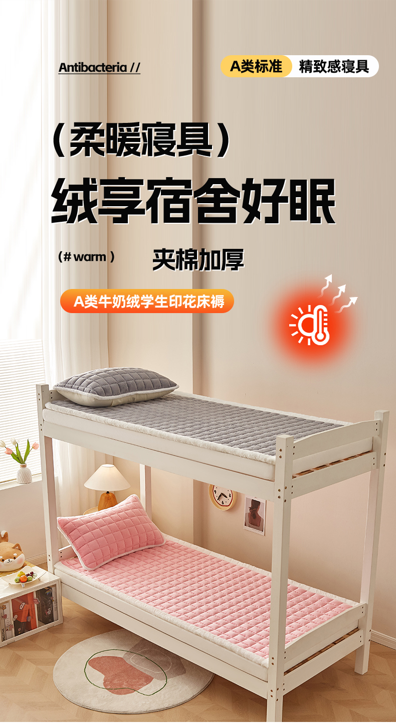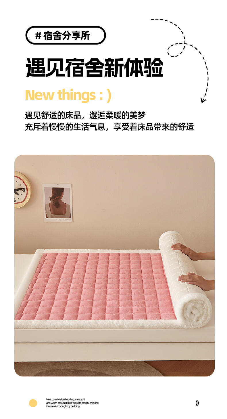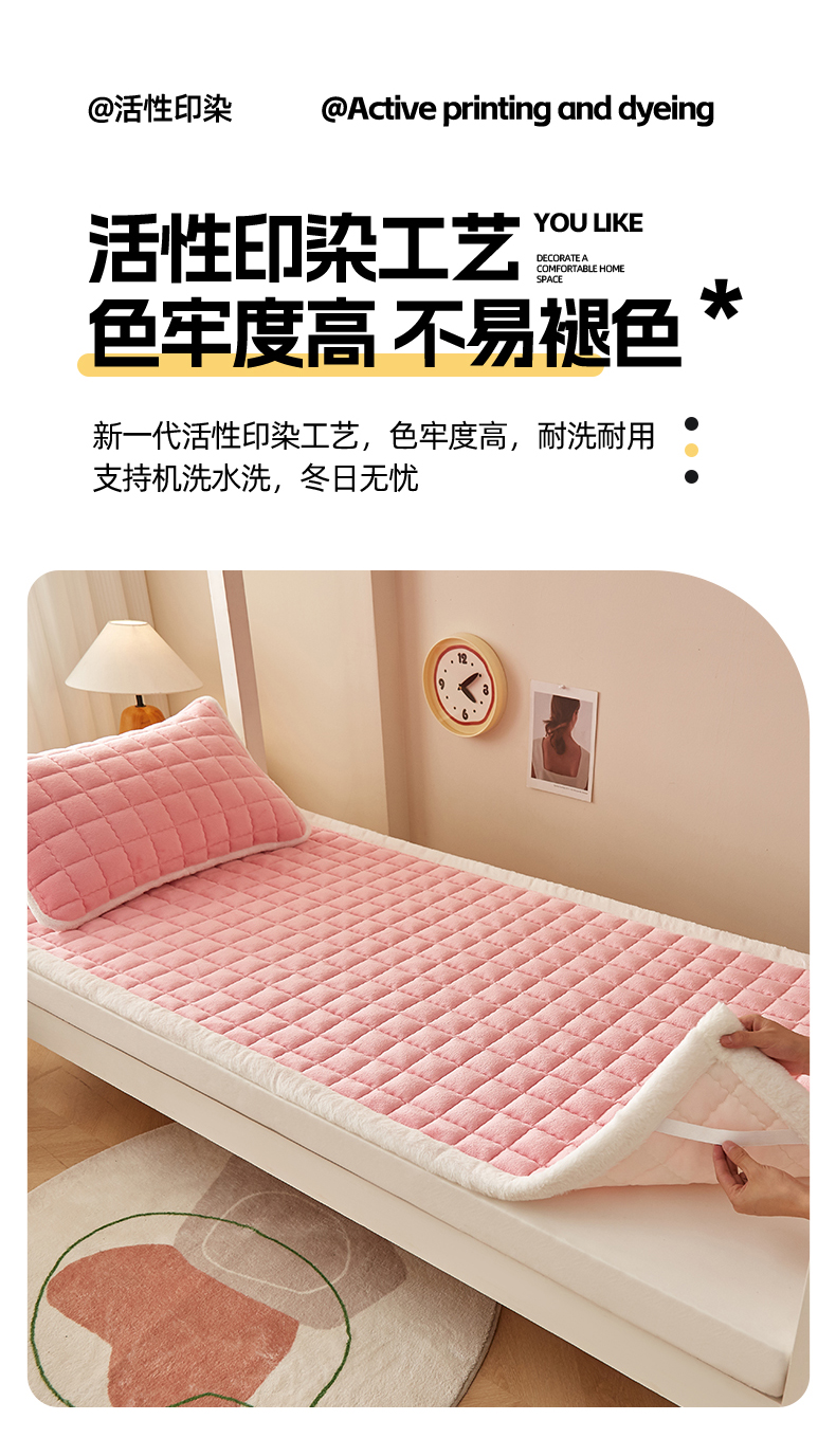 当前位置: 91家纺网 > 商品网购 > 床垫/床褥 > 普通床垫 > 东宇床垫 2025新款A类牛奶绒印花直角防滑床垫床褥三件套-学生款 粉格甜心