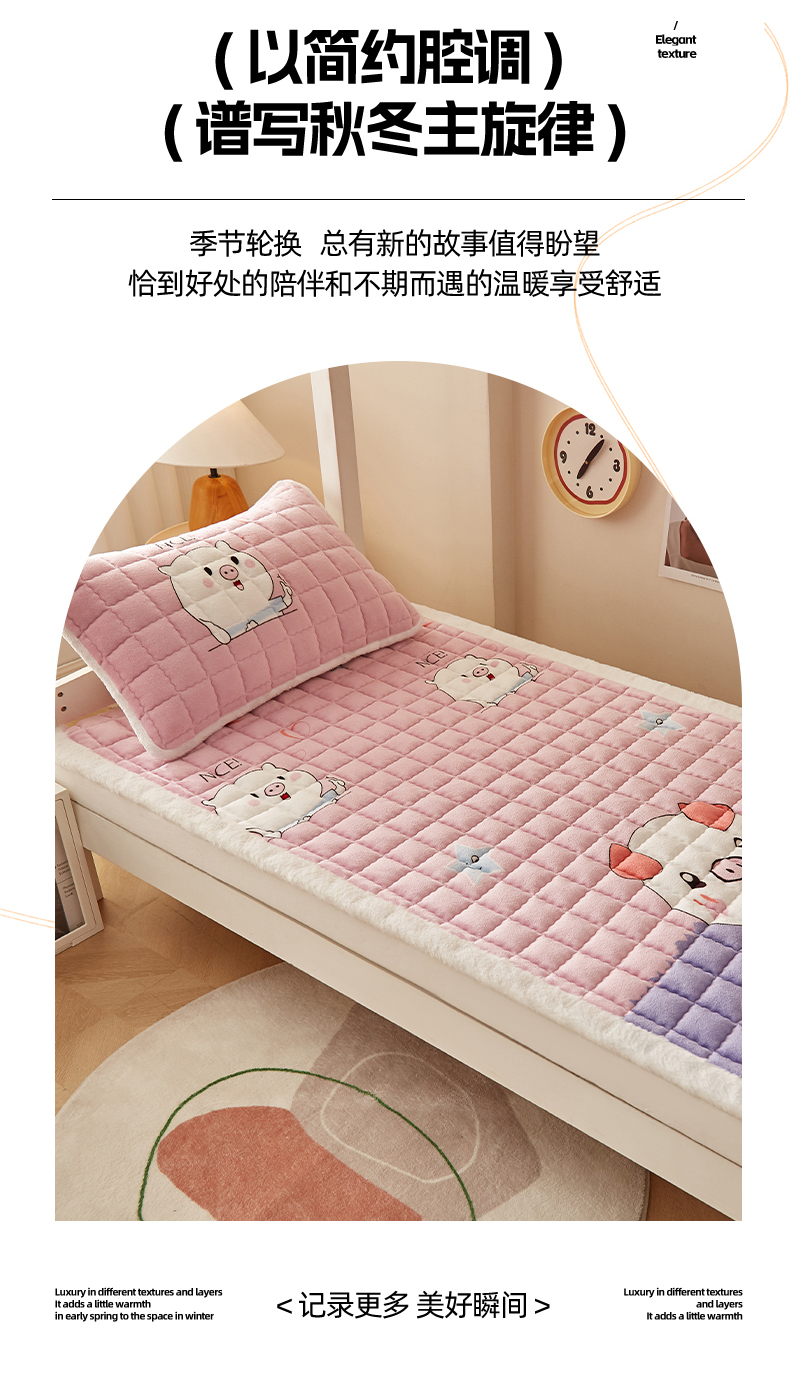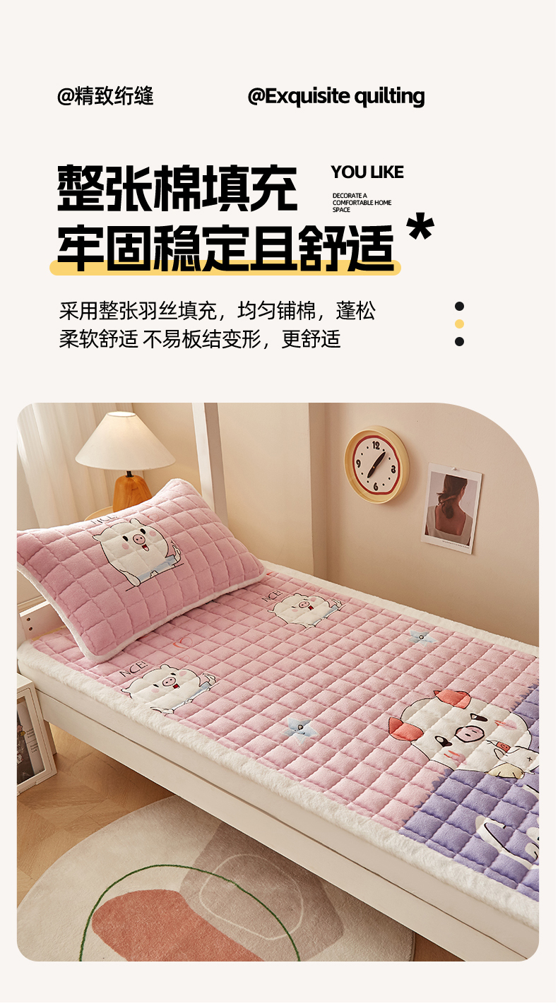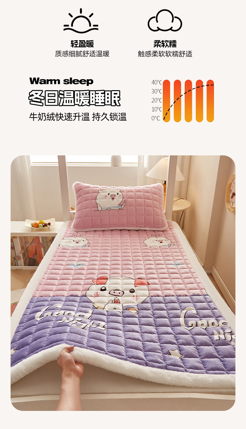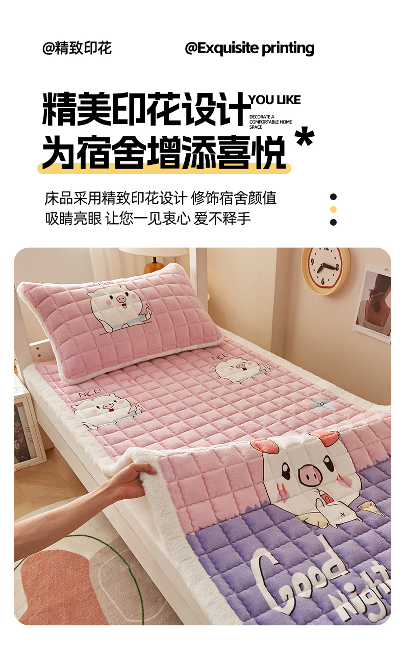 当前位置: 91家纺网 > 商品网购 > 床垫/床褥 > 普通床垫 > 东宇床垫 2025新款A类牛奶绒印花直角防滑床垫床褥三件套-学生款 晚安猪宝