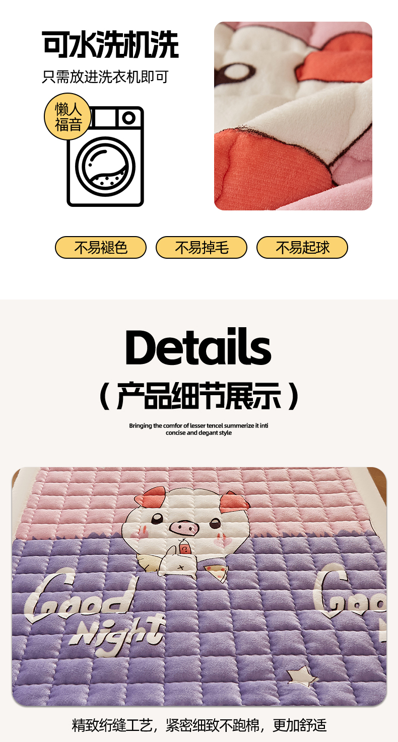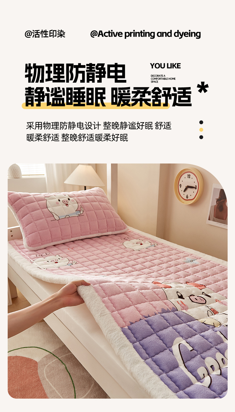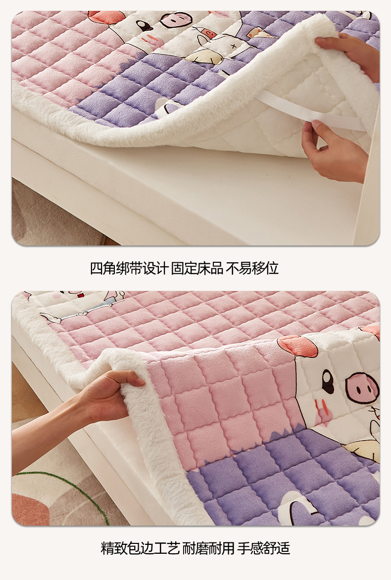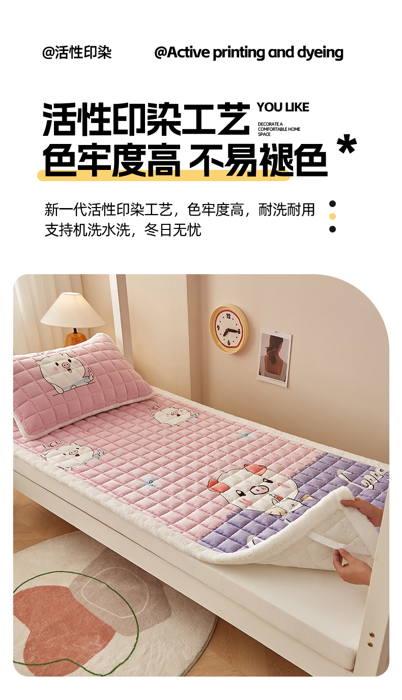 当前位置: 91家纺网 > 商品网购 > 床垫/床褥 > 普通床垫 > 东宇床垫 2025新款A类牛奶绒印花直角防滑床垫床褥三件套-学生款 晚安猪宝