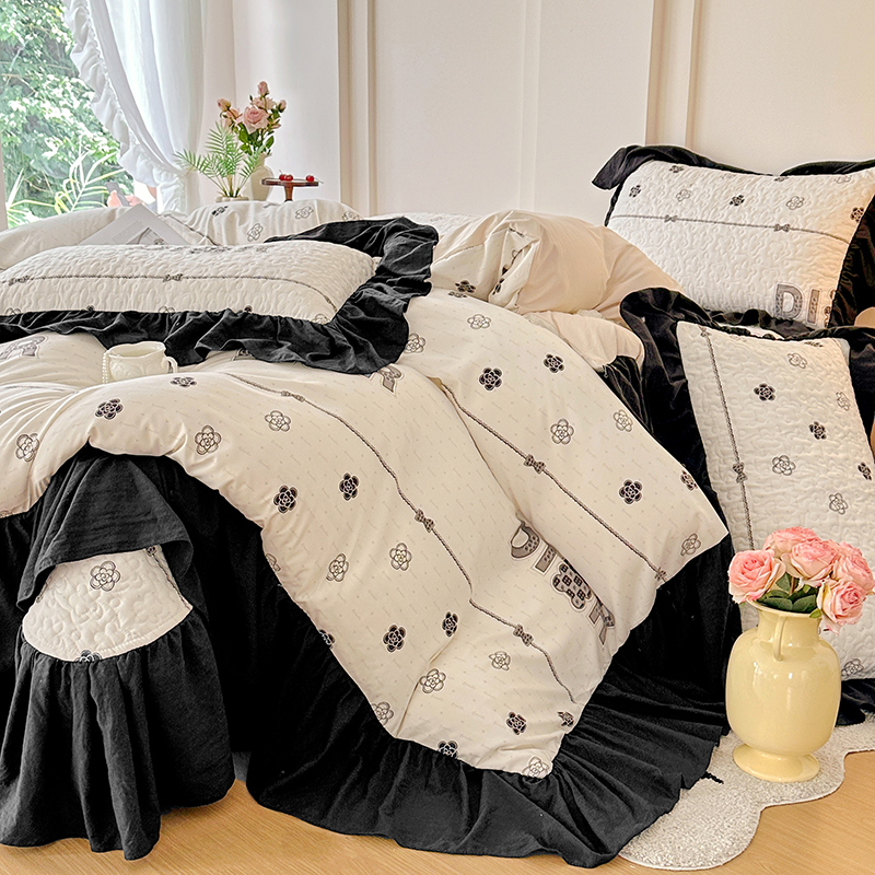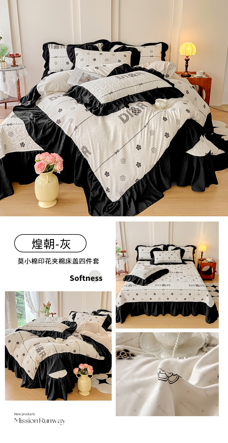 当前位置: 91家纺网 > 商品网购 > 床品套件 > 四件套 > 其它四件套 > 易辰美 2025新款法式公主风夹棉床盖四件套 煌朝-灰