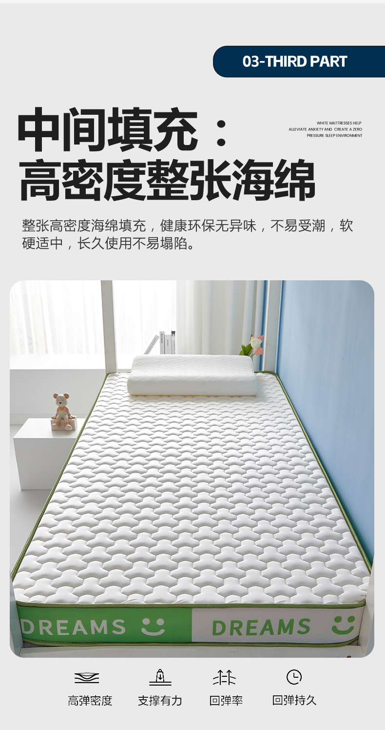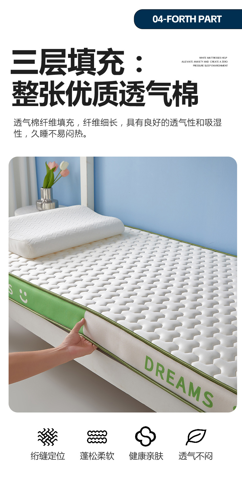 当前位置: 91家纺网 > 商品网购 > 床垫/床褥 > 普通床垫 > 暖季家纺 2025新款双拼色牛奶丝针织棉立体海绵三菱格学生床垫 立体绿白三菱格