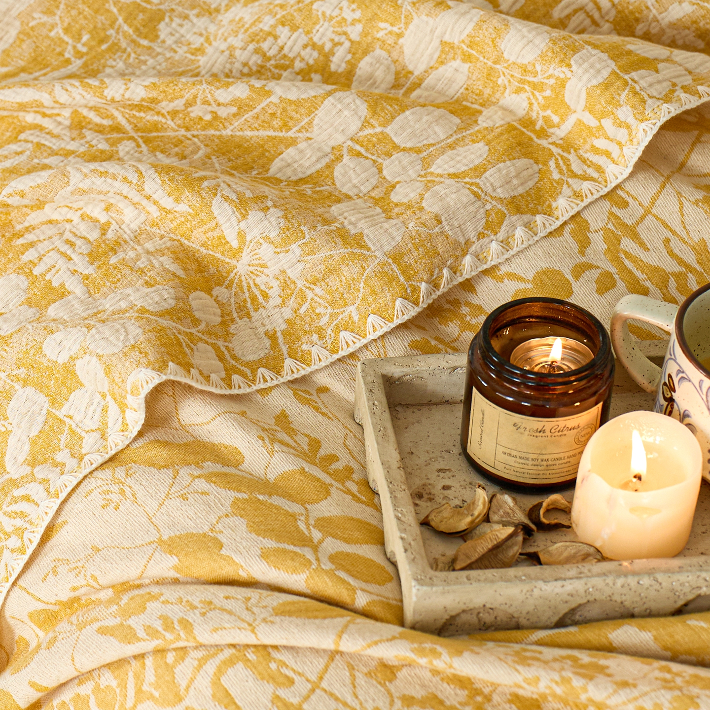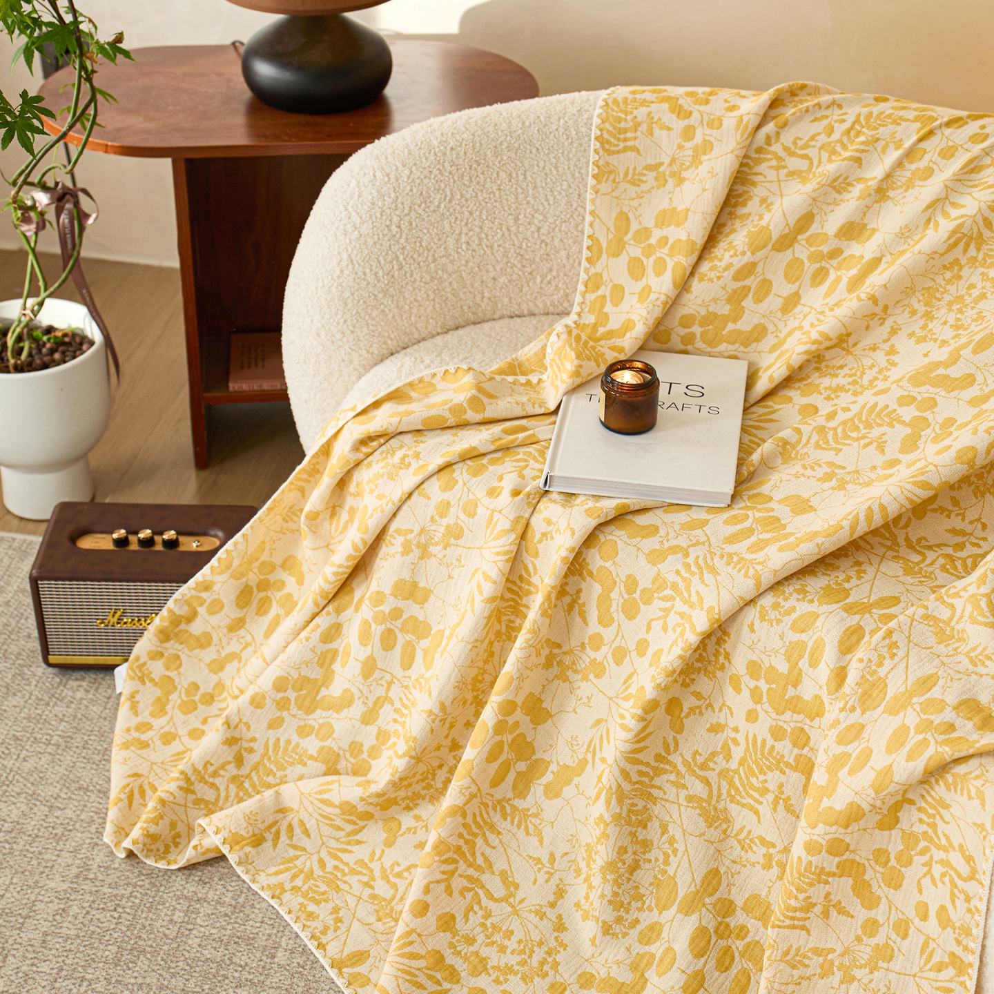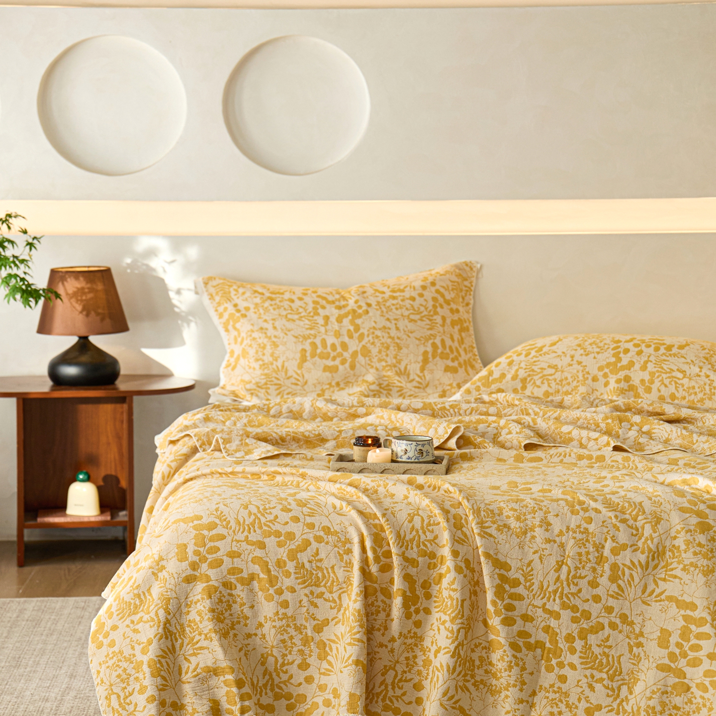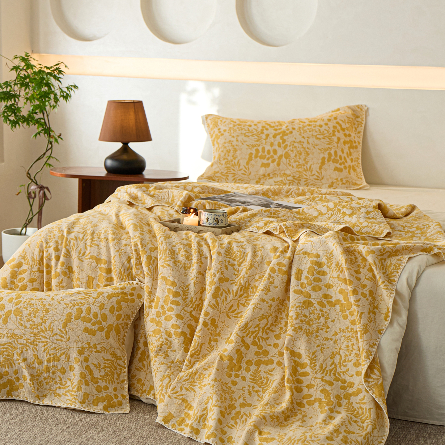 安莱生活2025新款双层纱多功能盖毯床盖三件套 新栀子花-黄