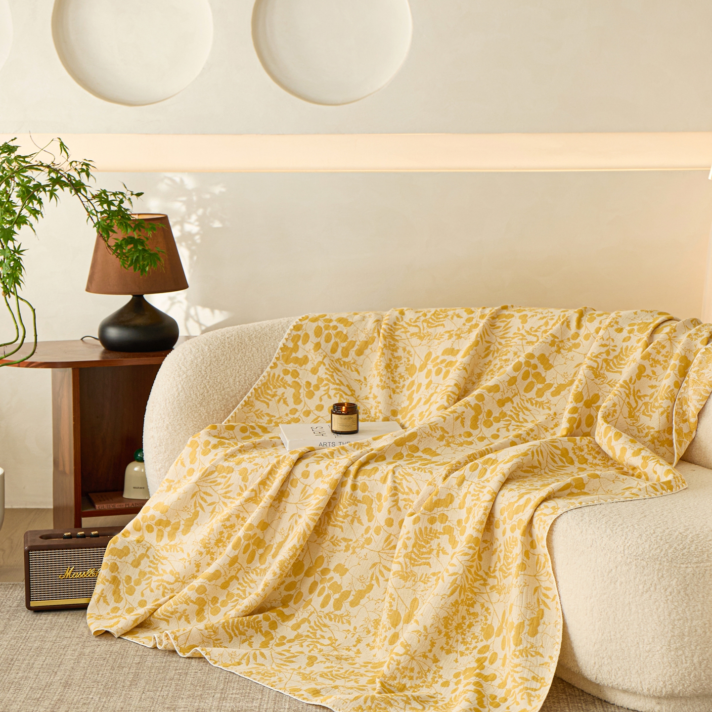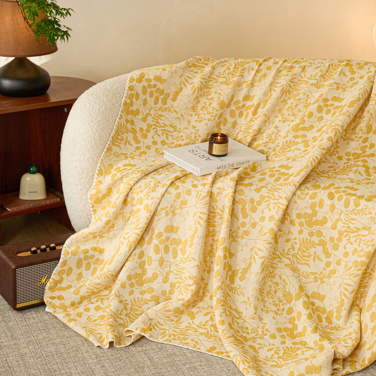 商品名称:安莱生活2025新款双层纱多功能盖毯床盖三件套 新栀子花-黄