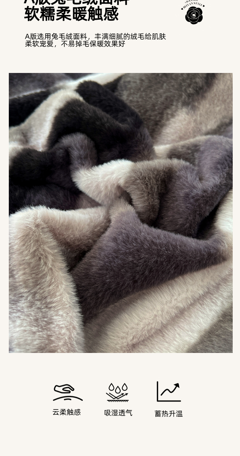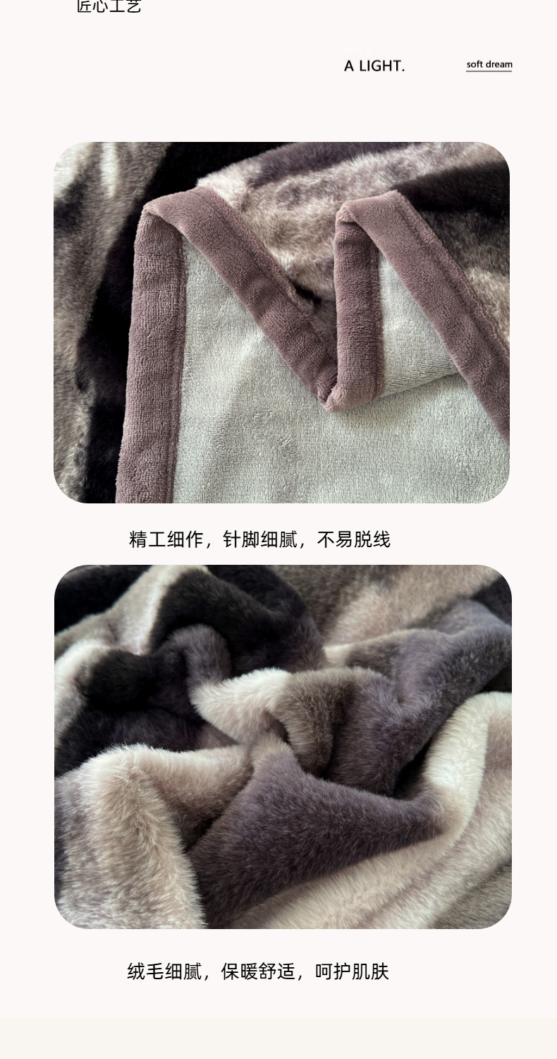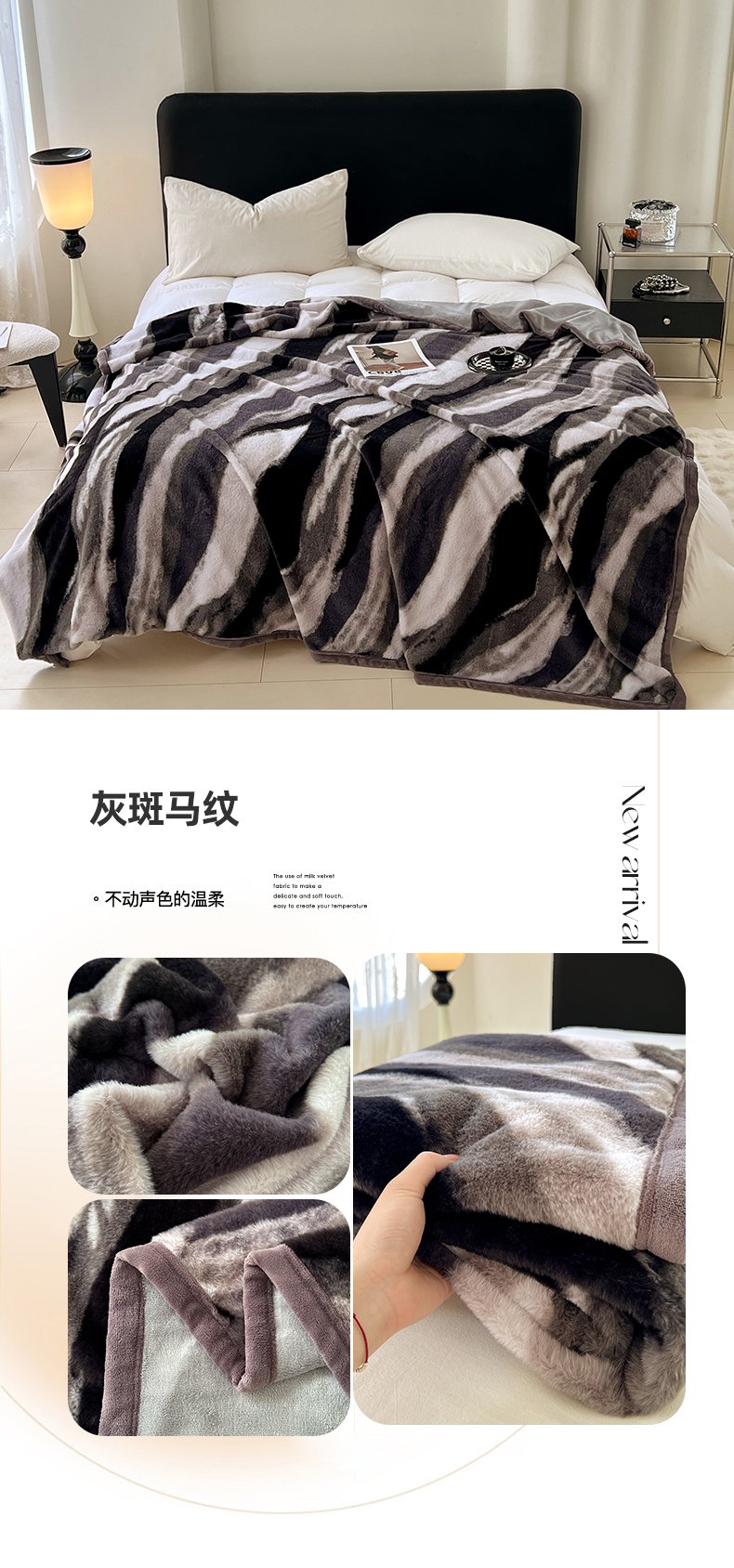 商品名称:锦润家纺 2025新款高克重多功能兔毛绒包边毛毯毯子 灰斑马纹