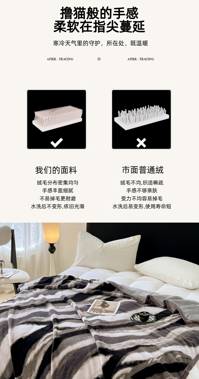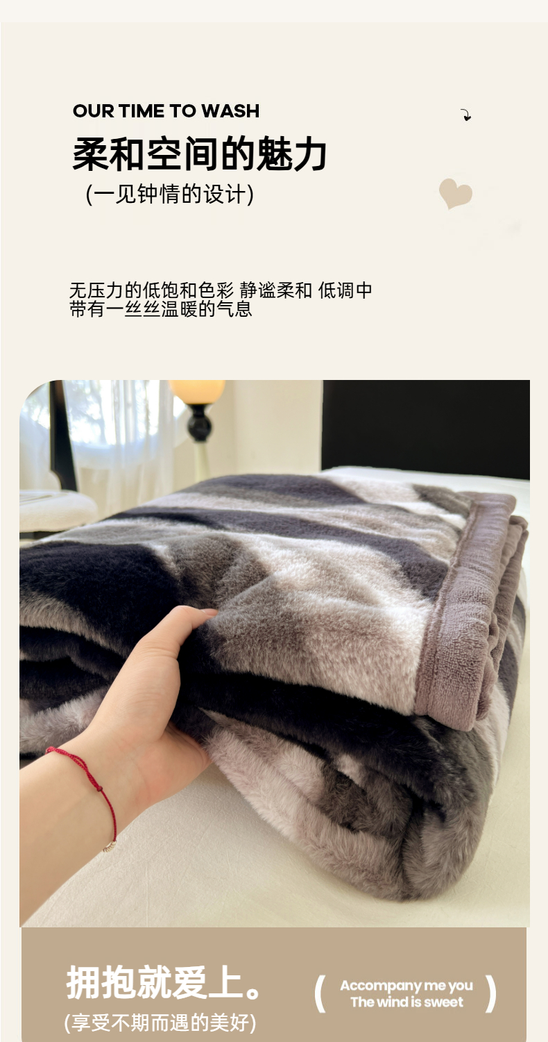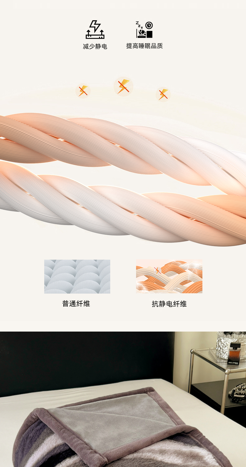 商品名称:锦润家纺 2025新款高克重多功能兔毛绒包边毛毯毯子 灰斑马纹