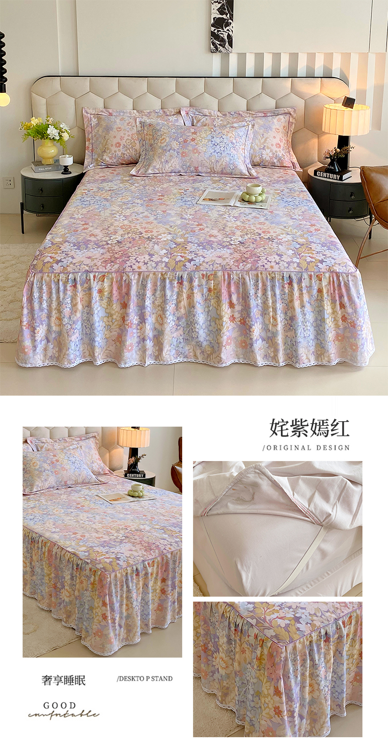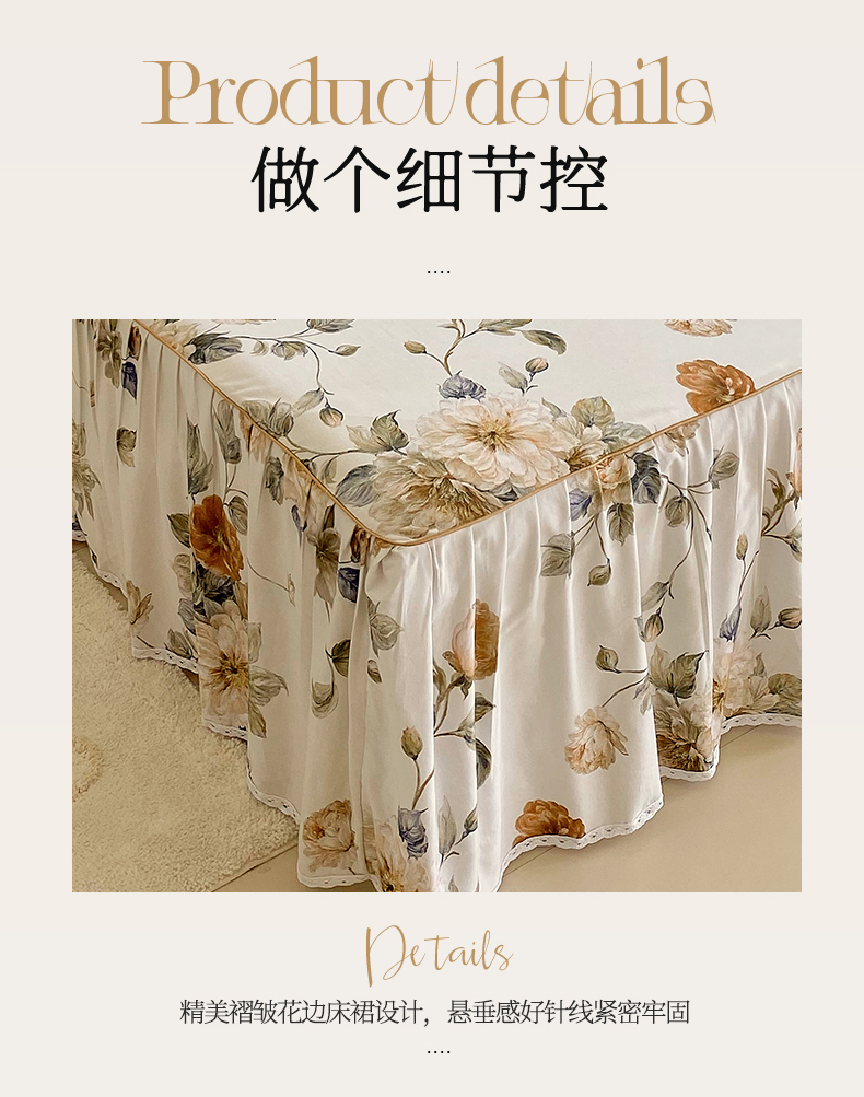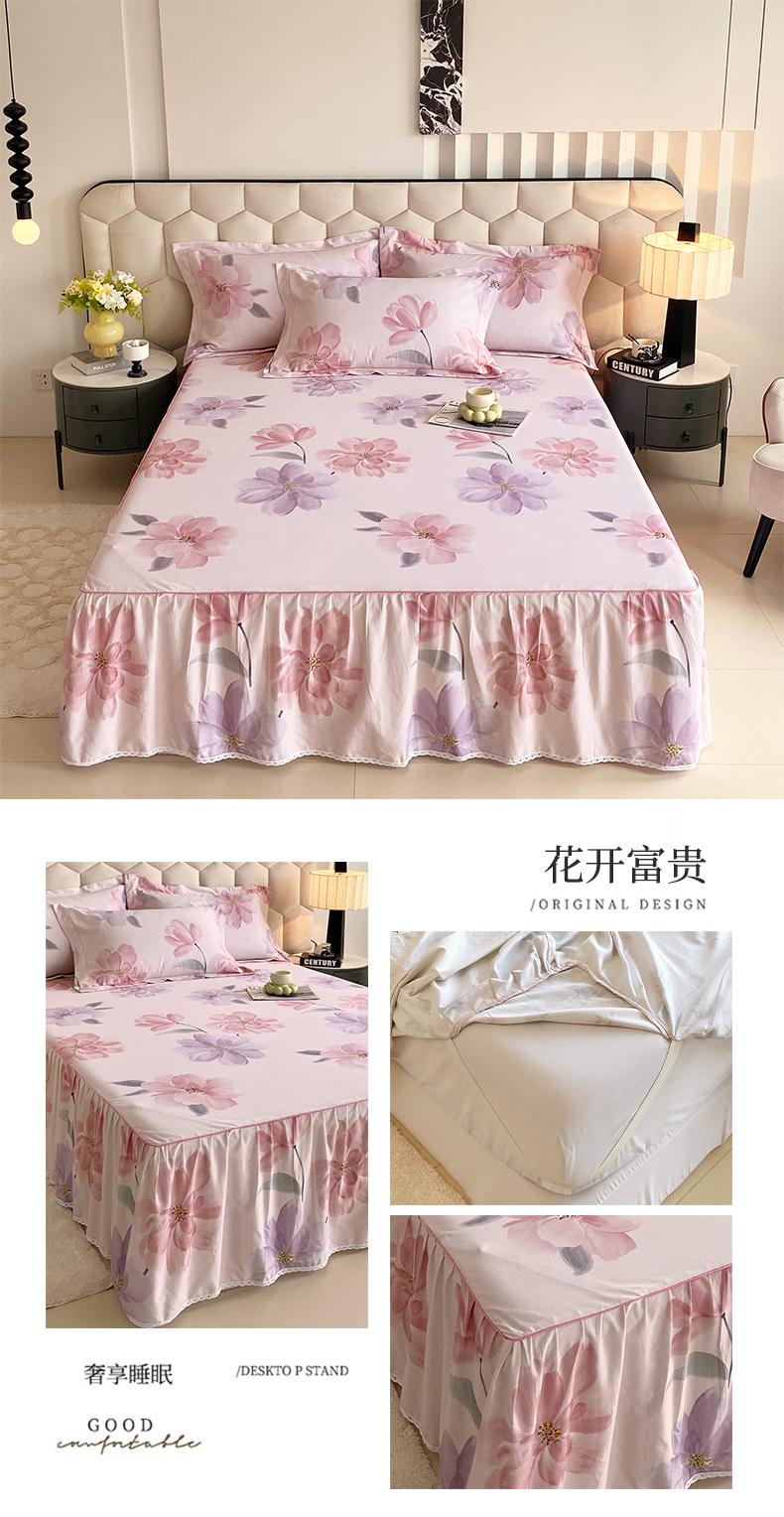 (总)宝齐莱家纺 2025款全棉磨毛印花系列单床裙,姹紫嫣红,国色天香,花开富贵,花前月下,美艳动人,普罗旺斯,诗情画意,时光印记,似水柔情,万紫千红