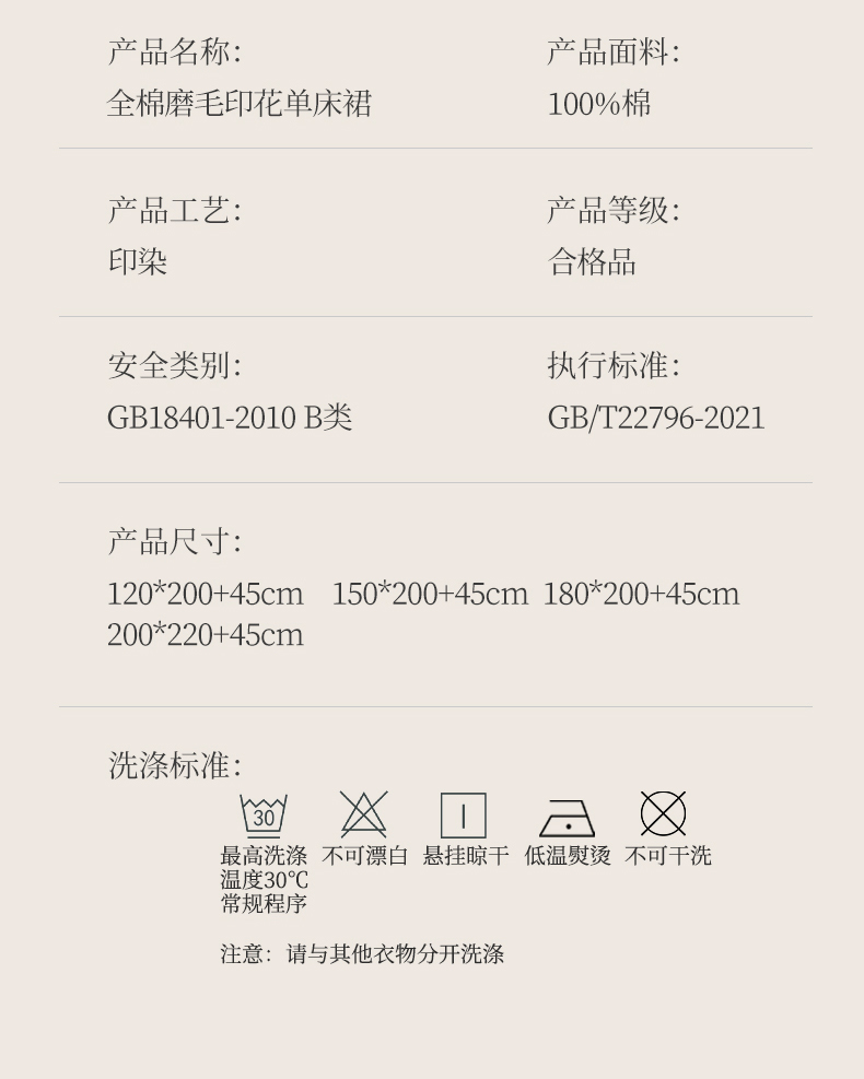 商品名称:(总)宝齐莱家纺 2025款全棉磨毛印花系列单床裙
