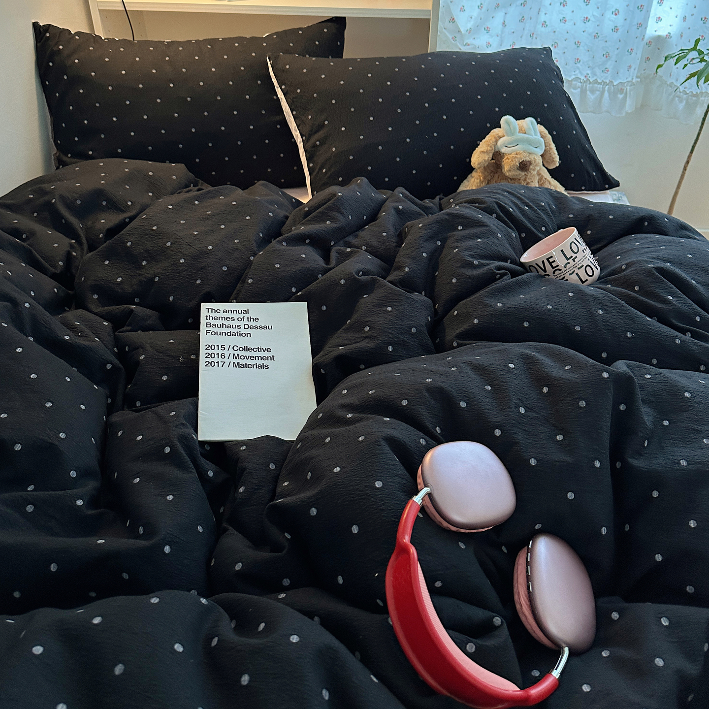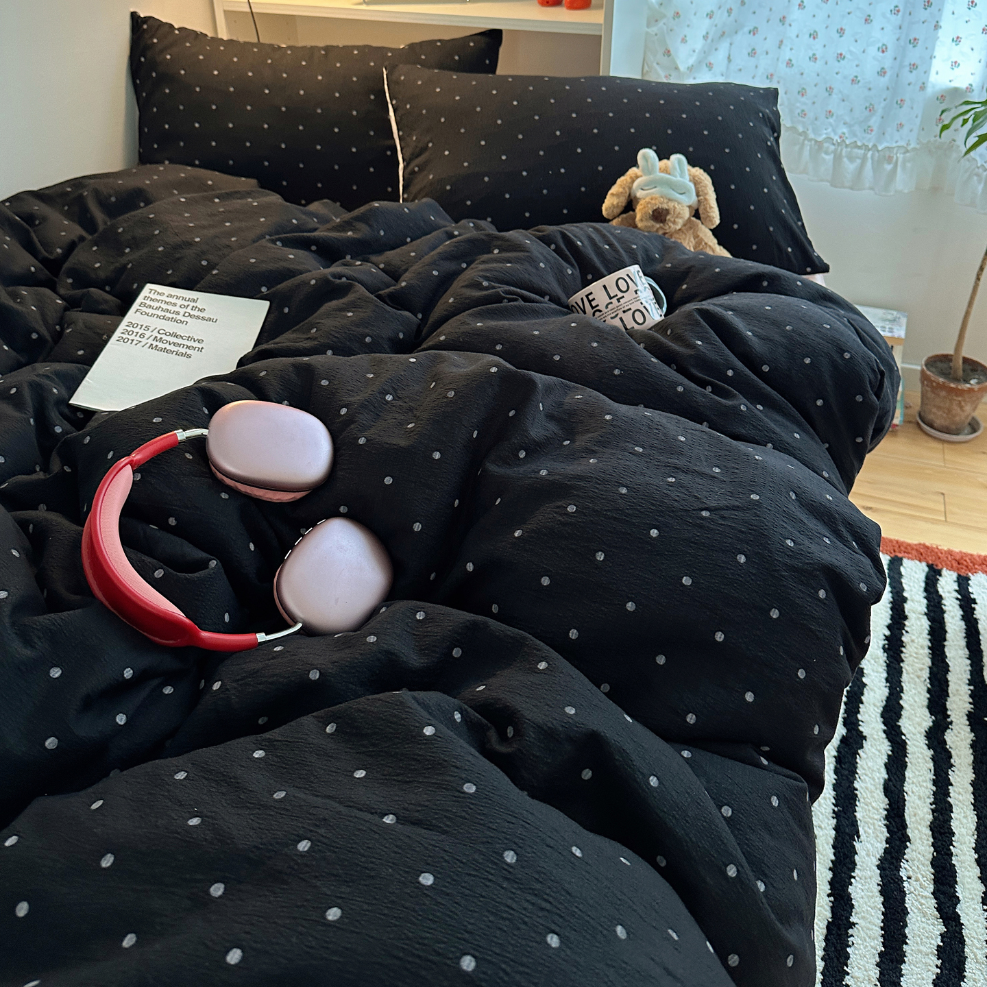 当前位置: 91家纺网 > 商品网购 > 床品套件 > 四件套 > 其它四件套 > 顾里家纺 2025新款韩系波点云朵棉四件套 黑波点1