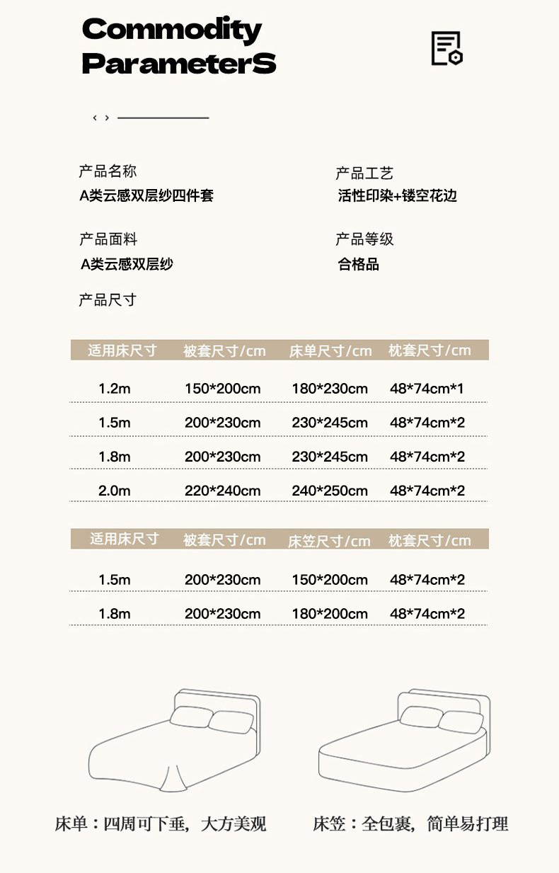 【床笠款】1.5四件套-被套200x230 | ¥65.00 |