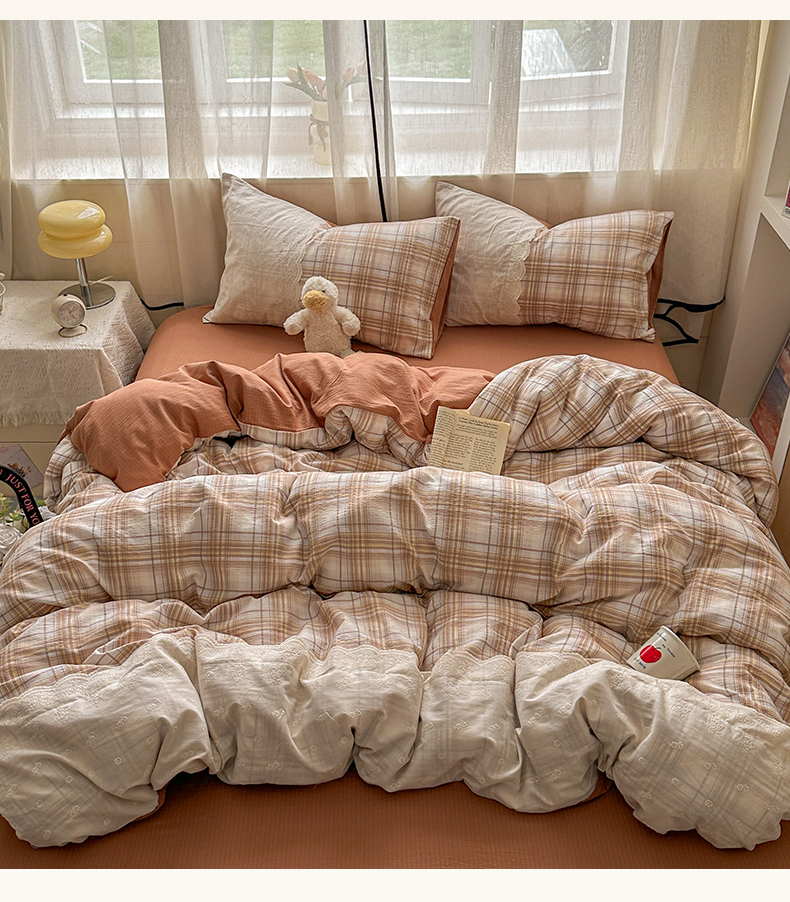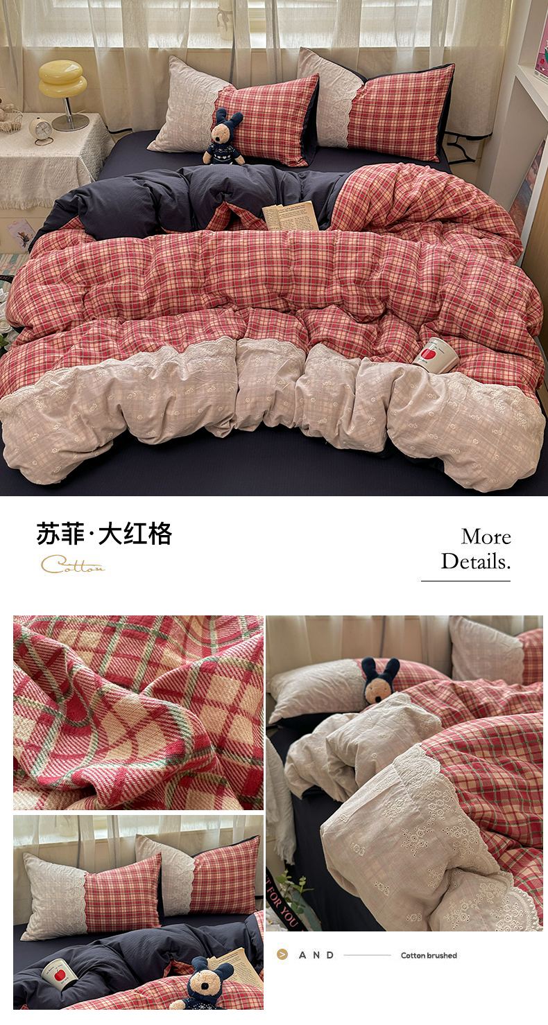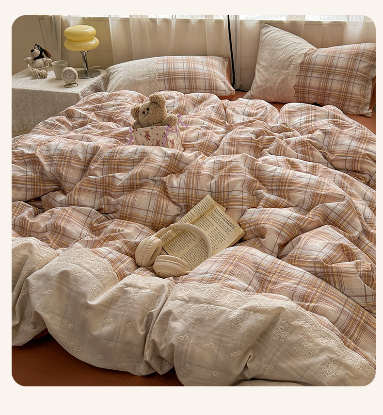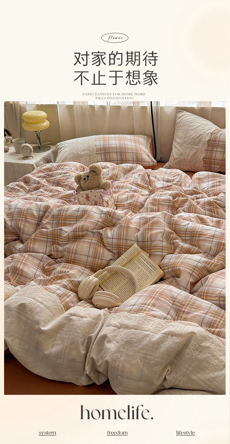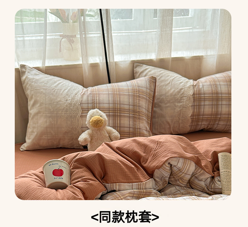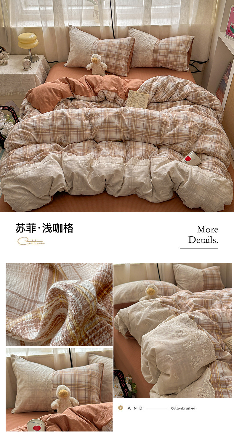 当前位置: 91家纺网 > 商品网购 > 床品套件 > 四件套 > 其它四件套 > 晚爱家纺(原晚安家居) 2025新款韩系少女风蕾丝花边四件套云感木棉双层纱-苏菲 苏菲·浅咖格