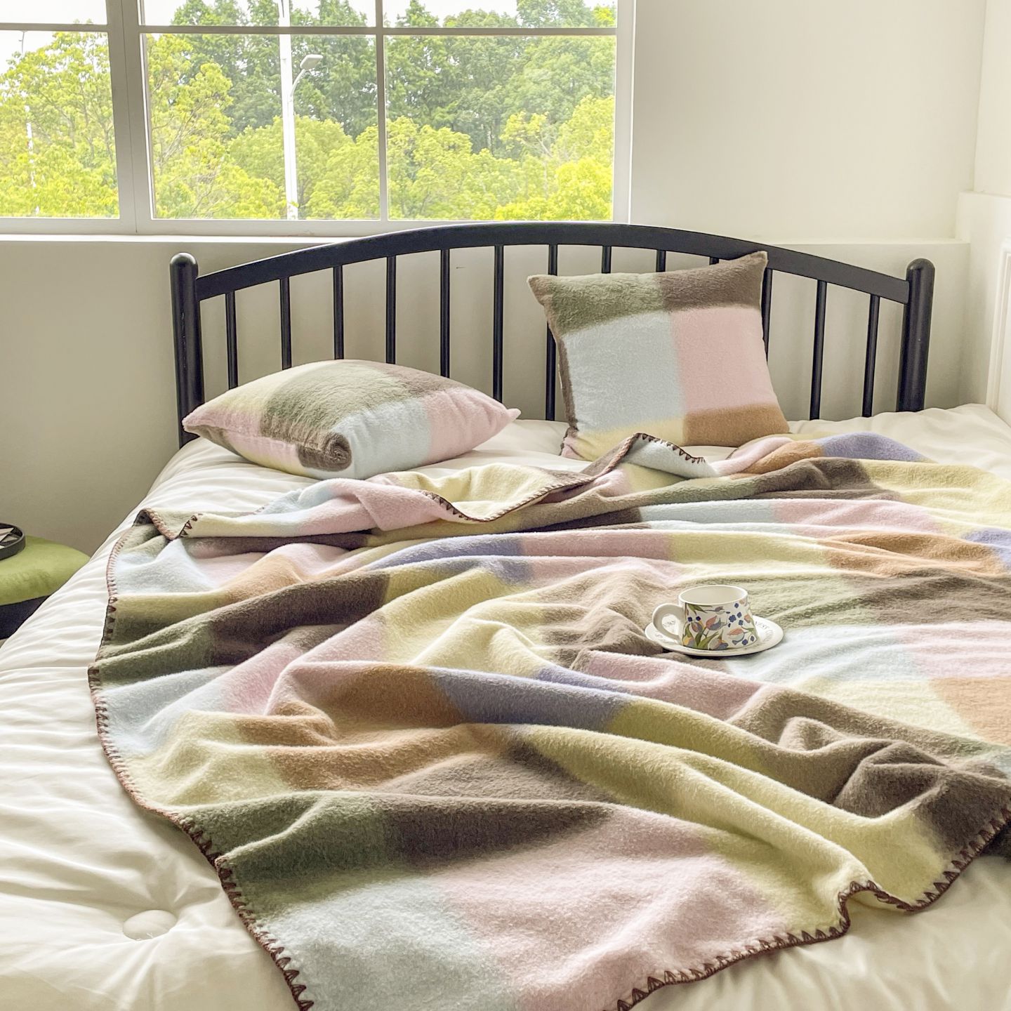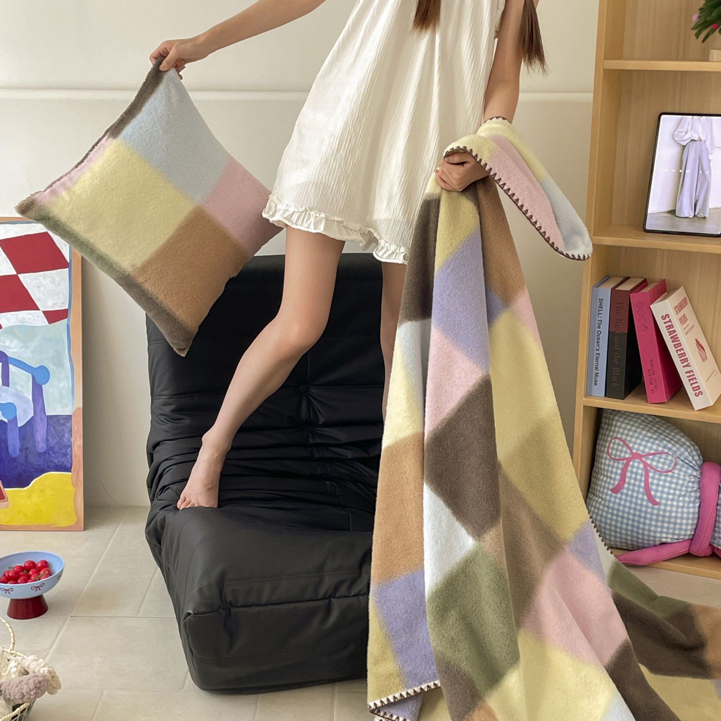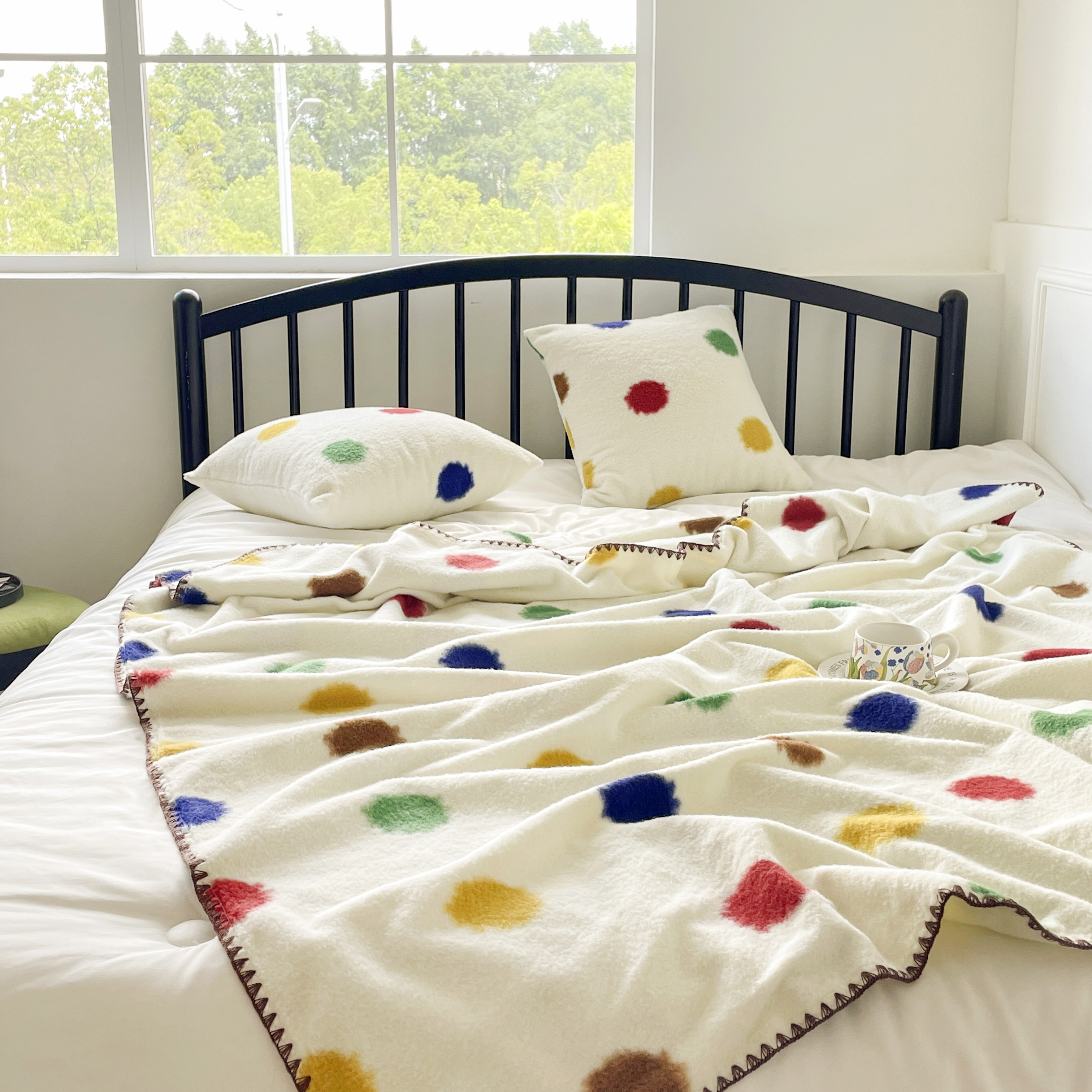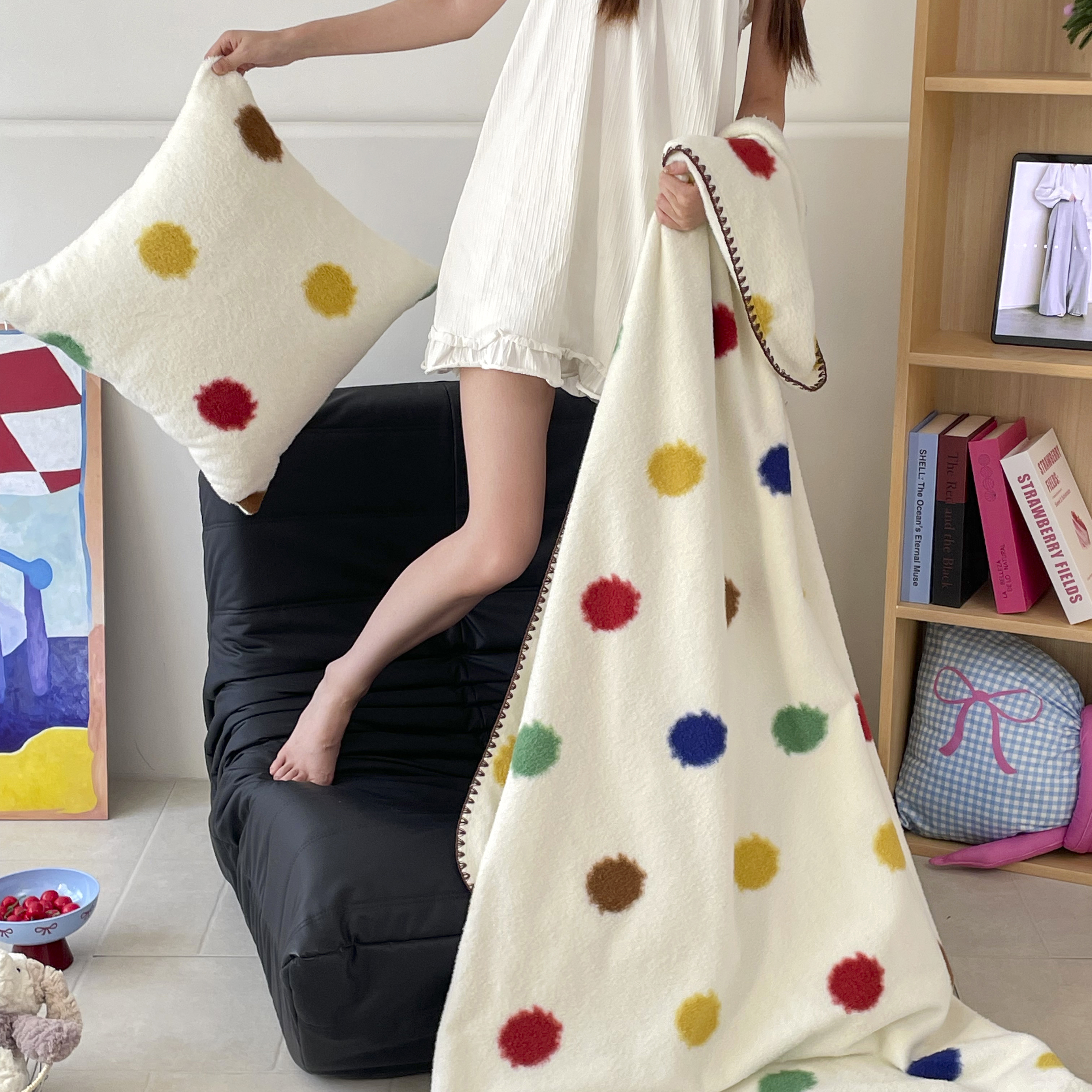 十里居 2025新款绵羊绒抱枕枕头枕芯 彩波点