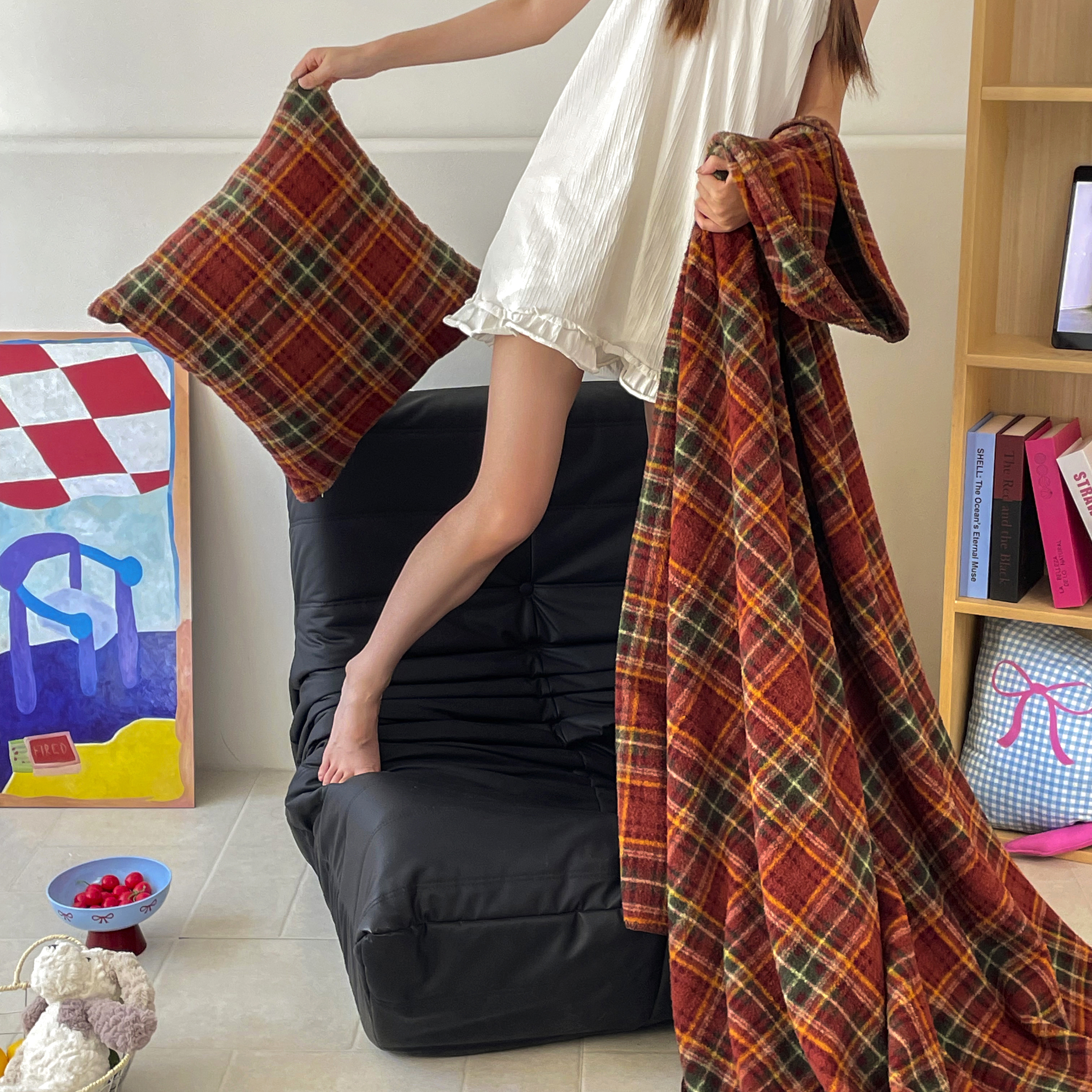 (总)十里居 2026新款lns博主风全棉纯棉色织水洗棉四件套,焦糖黑格,焦糖红格,焦糖黄格,焦糖蓝格