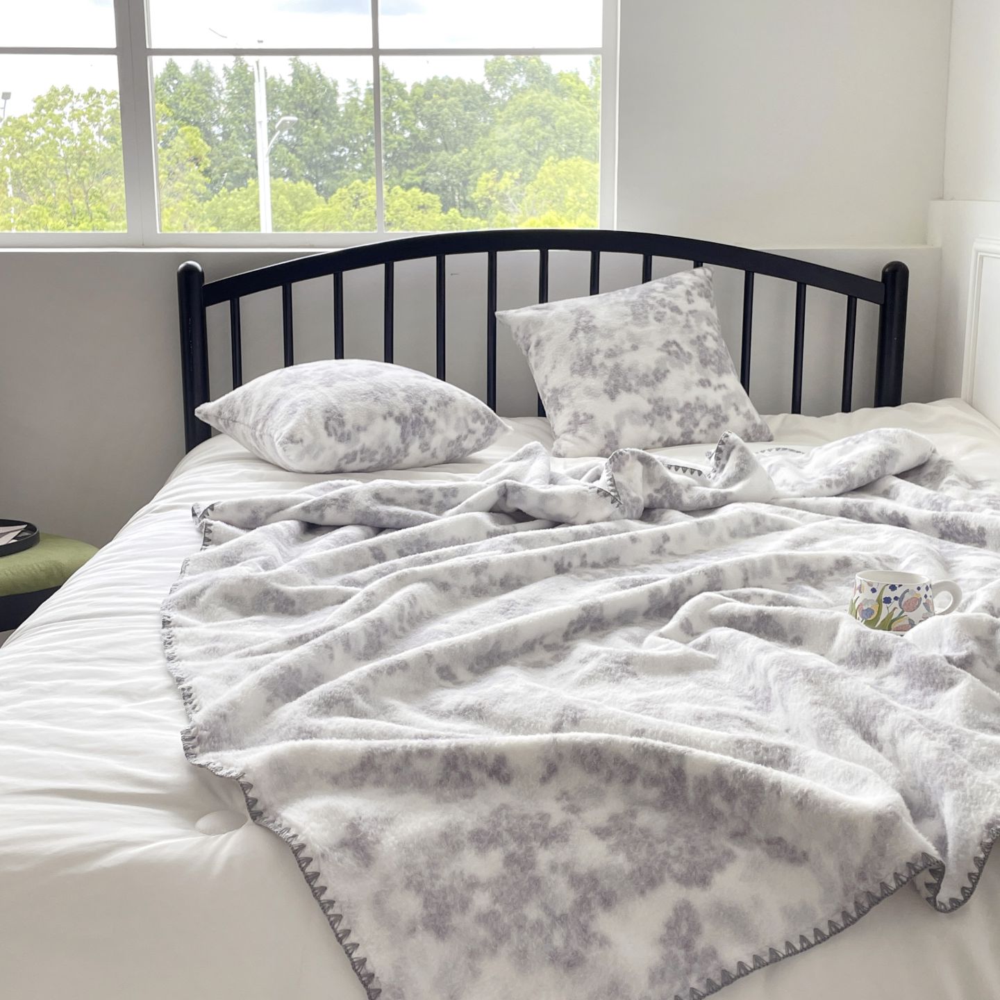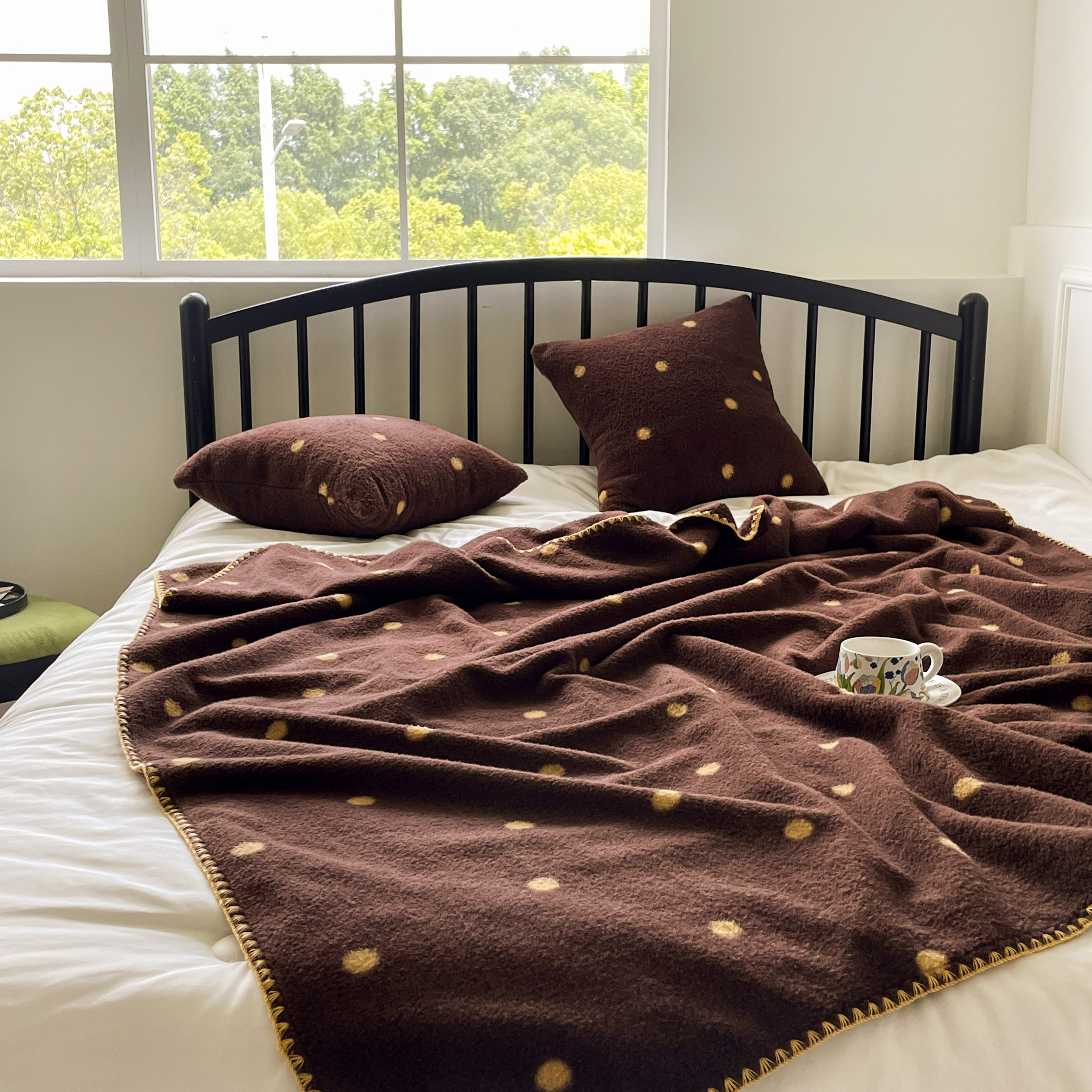 (总)十里居 2026新款韩系牛奶绒兔毛贴布绣床笠三件套四件套,波点小狗蓝,波点小狗白,波点小狗粉,波点小狗咖