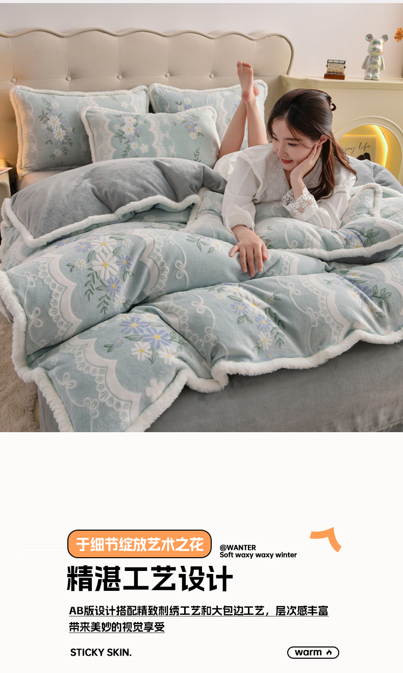 芯诗曼 2025直播高克重牛奶绒四件套法莱绒金貂貂狐保暖单被套 叶语,叶语