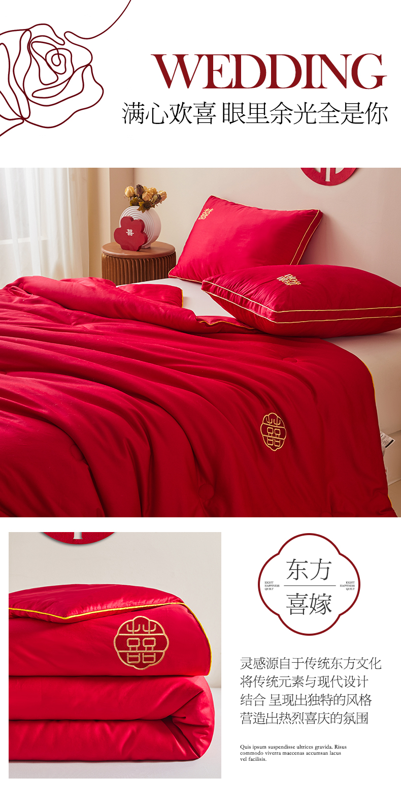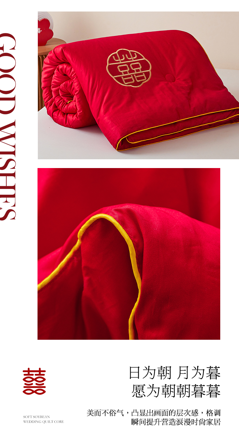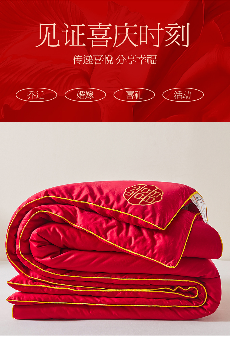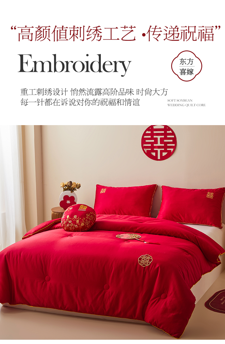商品名称:欧乐蒂 2025新款婚庆刺绣纤维被 囍嫁 红
