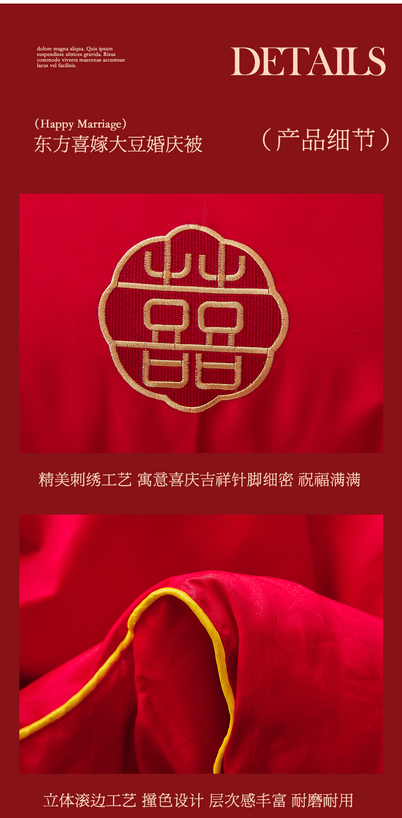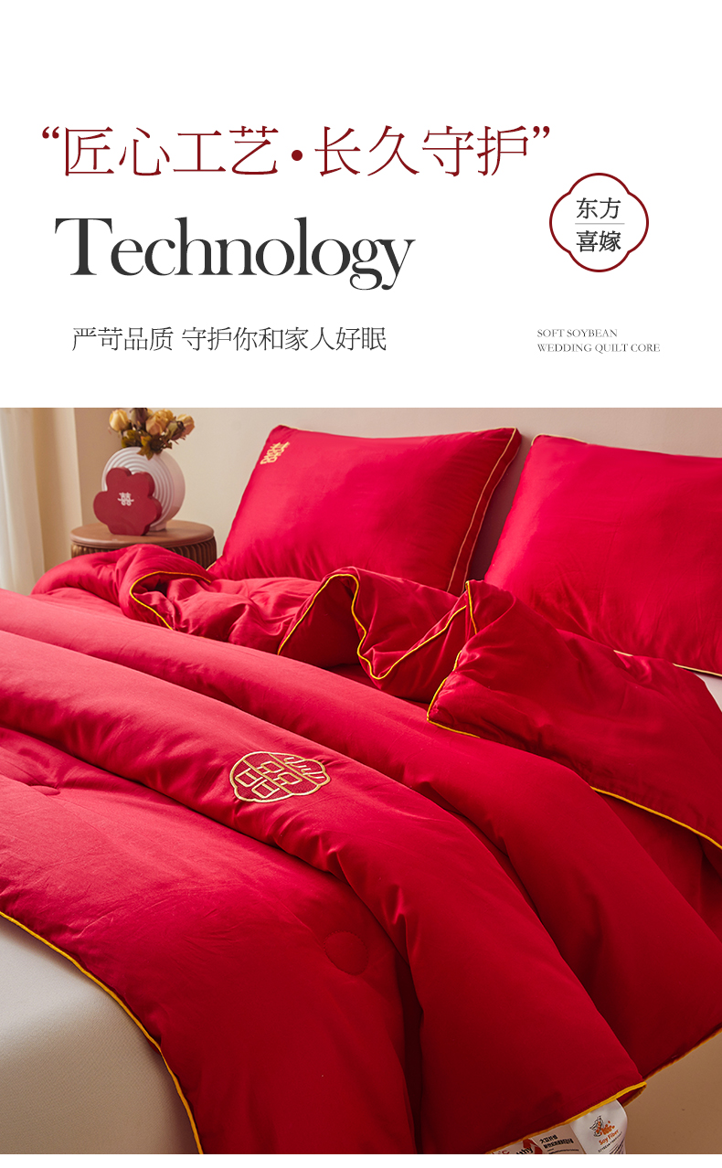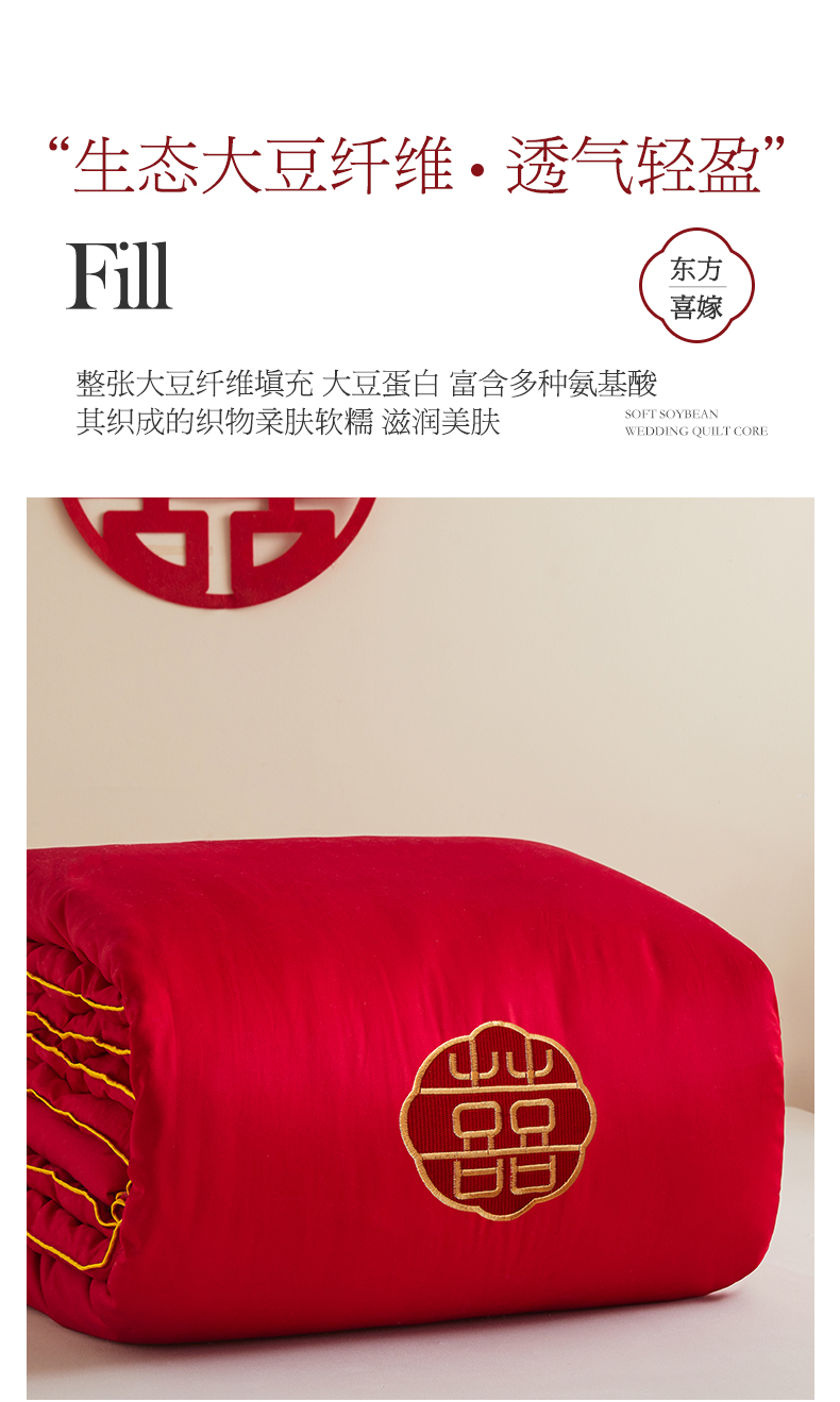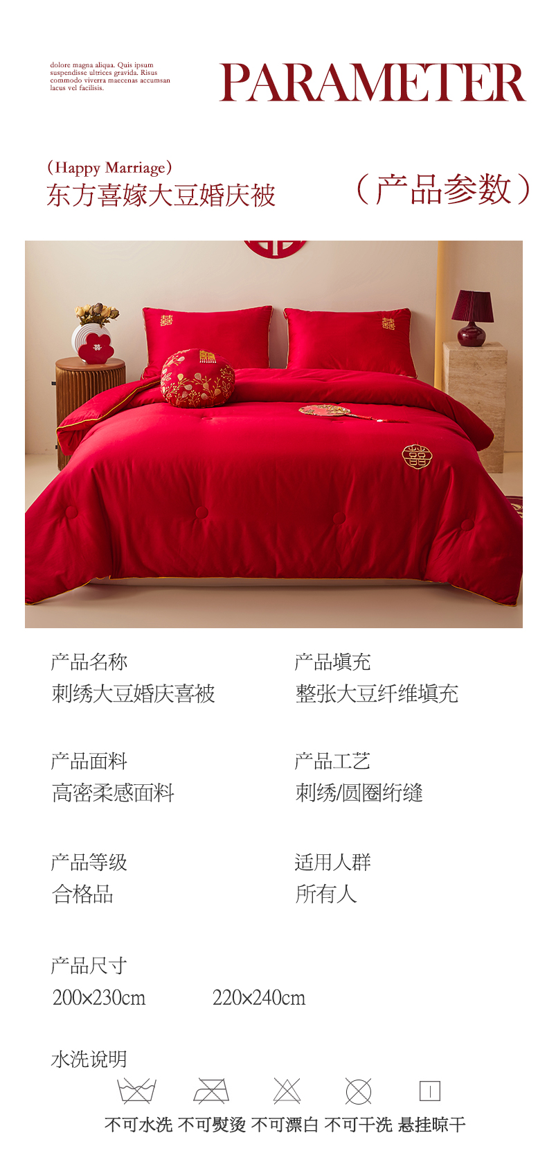 商品名称:欧乐蒂 2025新款婚庆刺绣纤维被 囍嫁 红