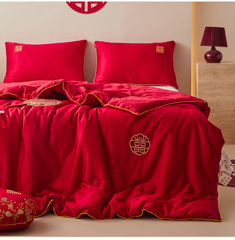 欧乐蒂 2025新款婚庆刺绣纤维被 囍嫁 红