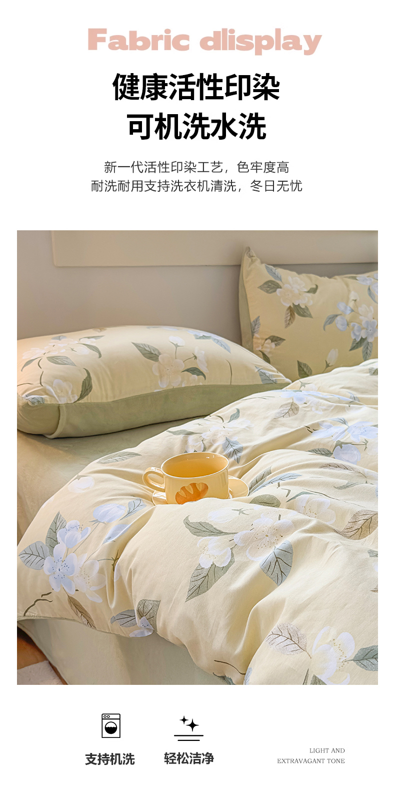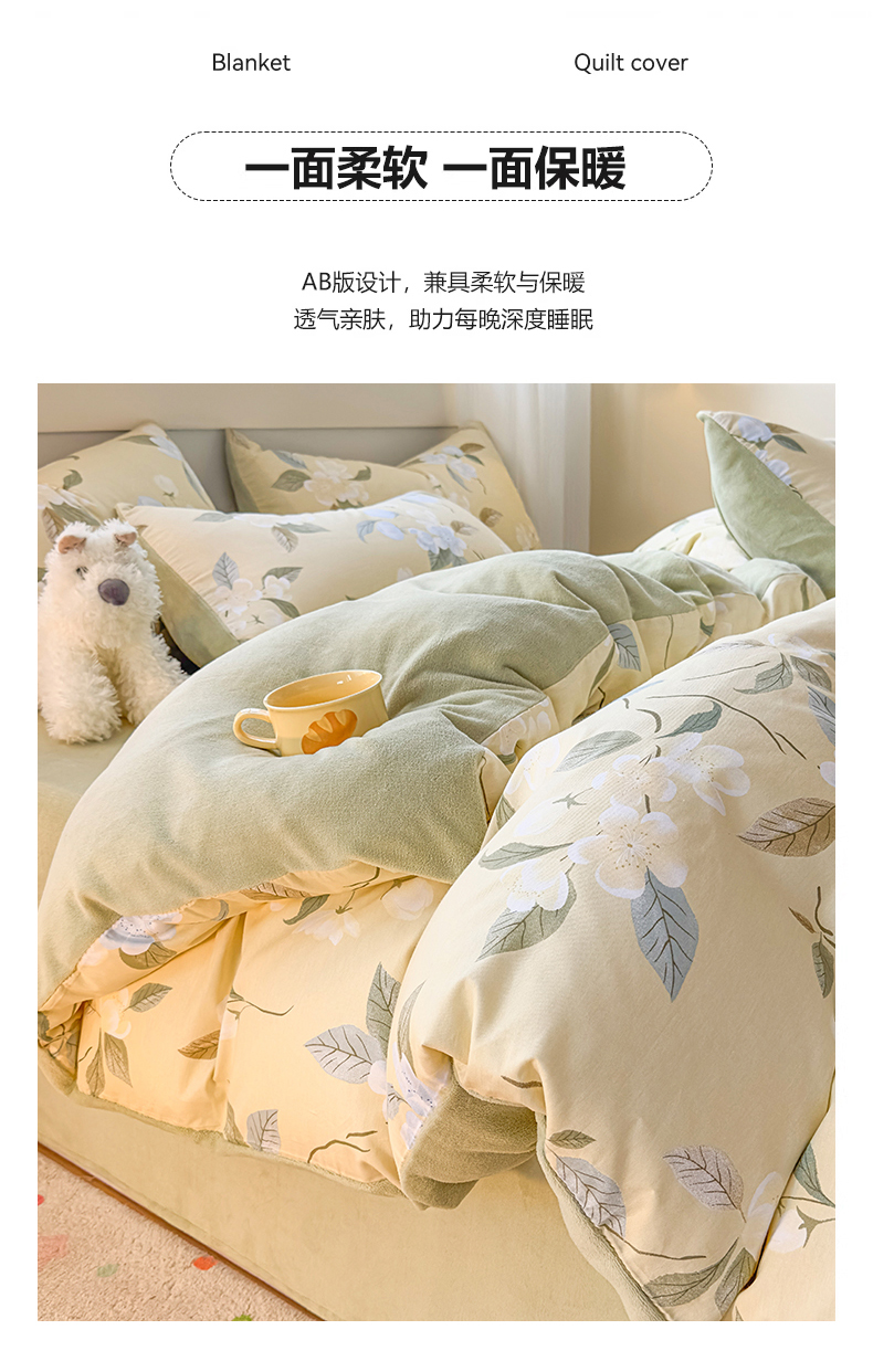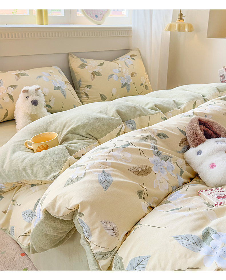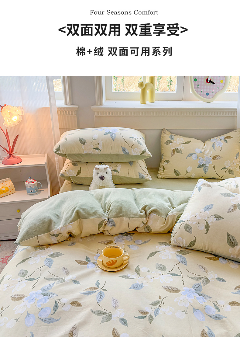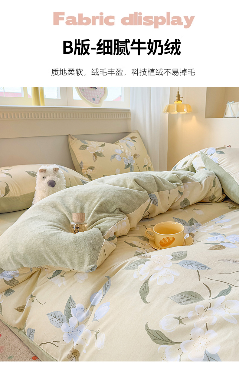 商品名称:KA家纺 2025新款秋冬A棉B绒纯棉牛奶绒棉加绒四件套 玉兰花