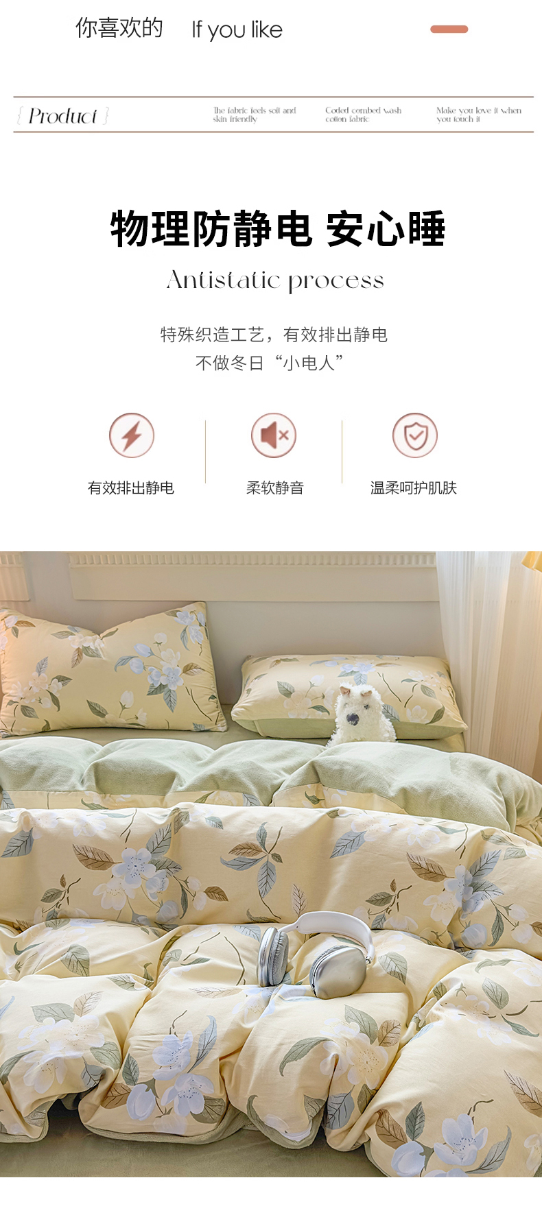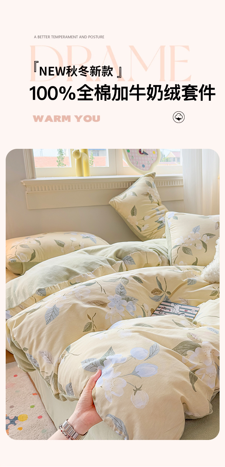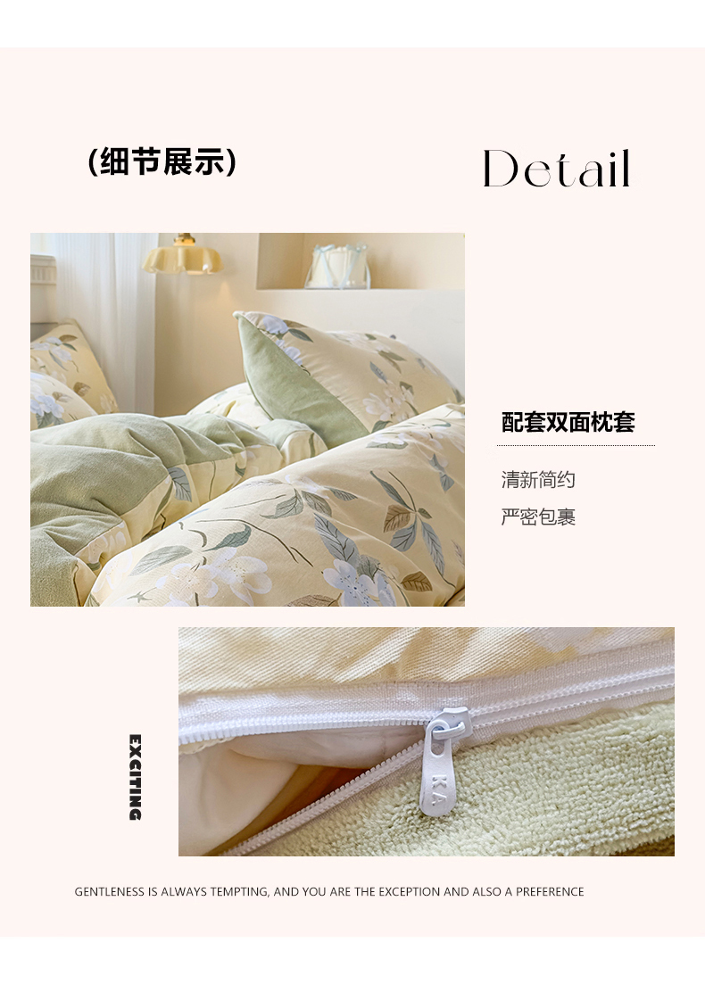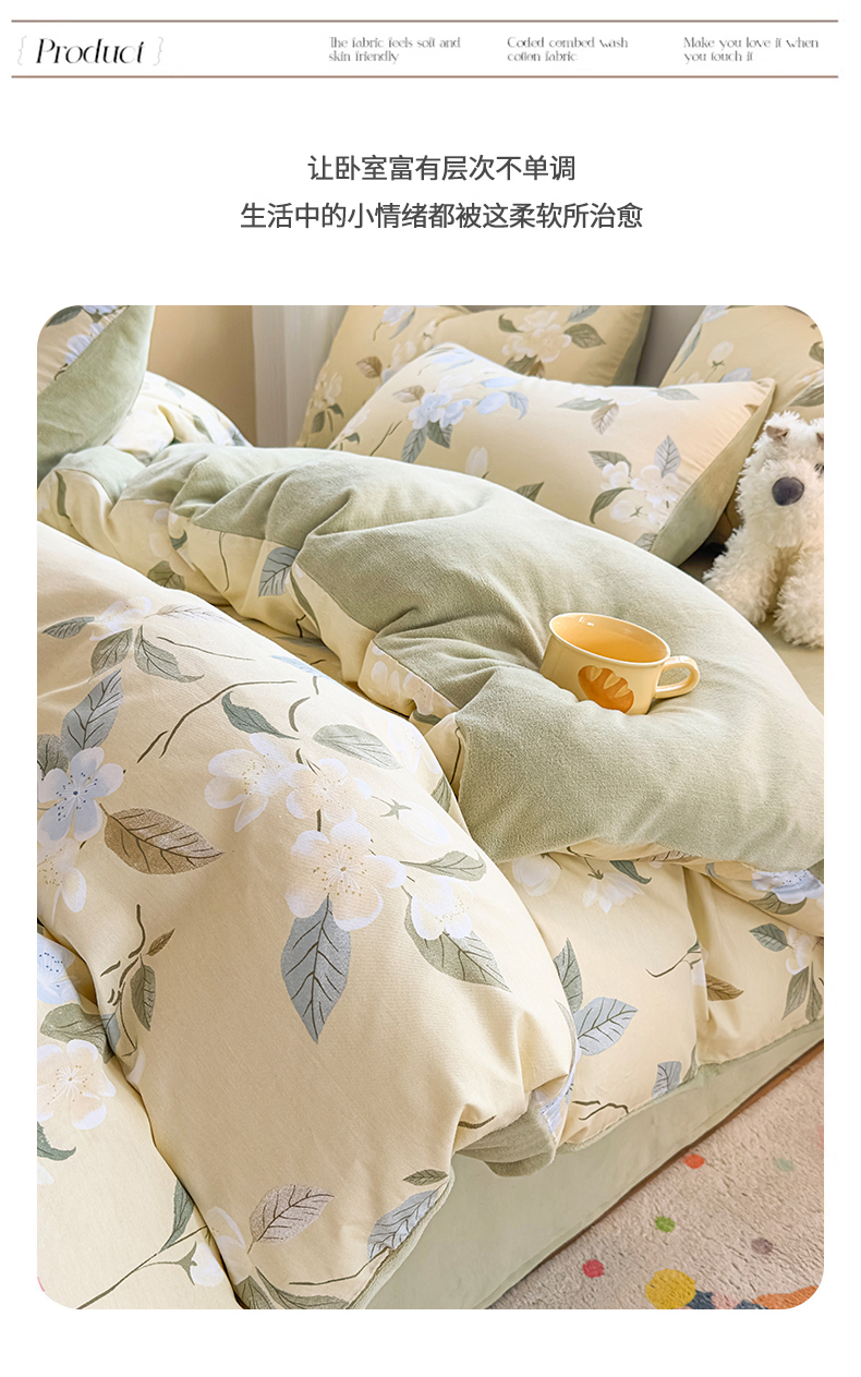 商品名称:KA家纺 2025新款秋冬A棉B绒纯棉牛奶绒棉加绒四件套 玉兰花