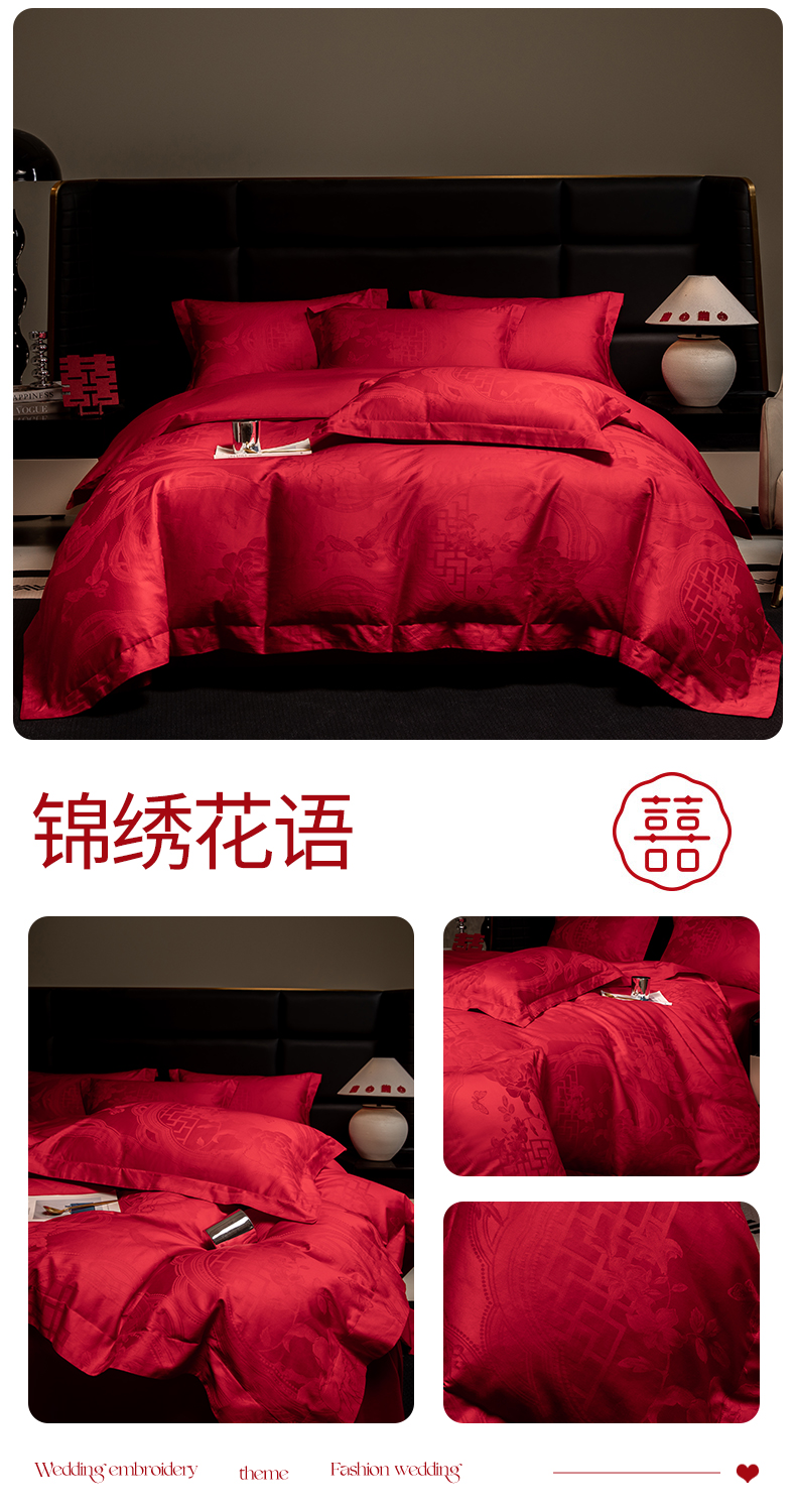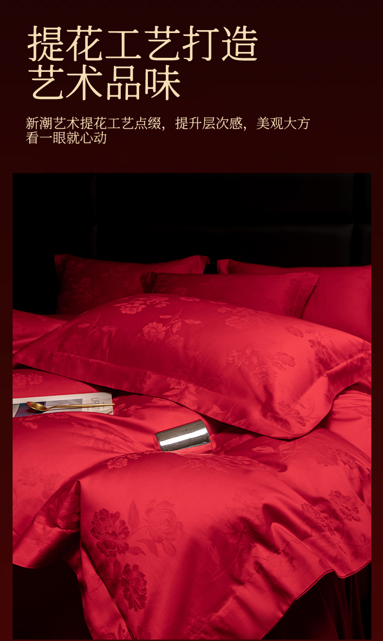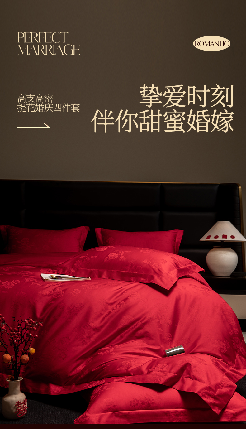 当前位置: 91家纺网 > 商品网购 > 床品套件 > 四件套 > 婚庆四件套 > 欧乐蒂 2025新款高支高密婚庆提花四件套 玫瑰情缘