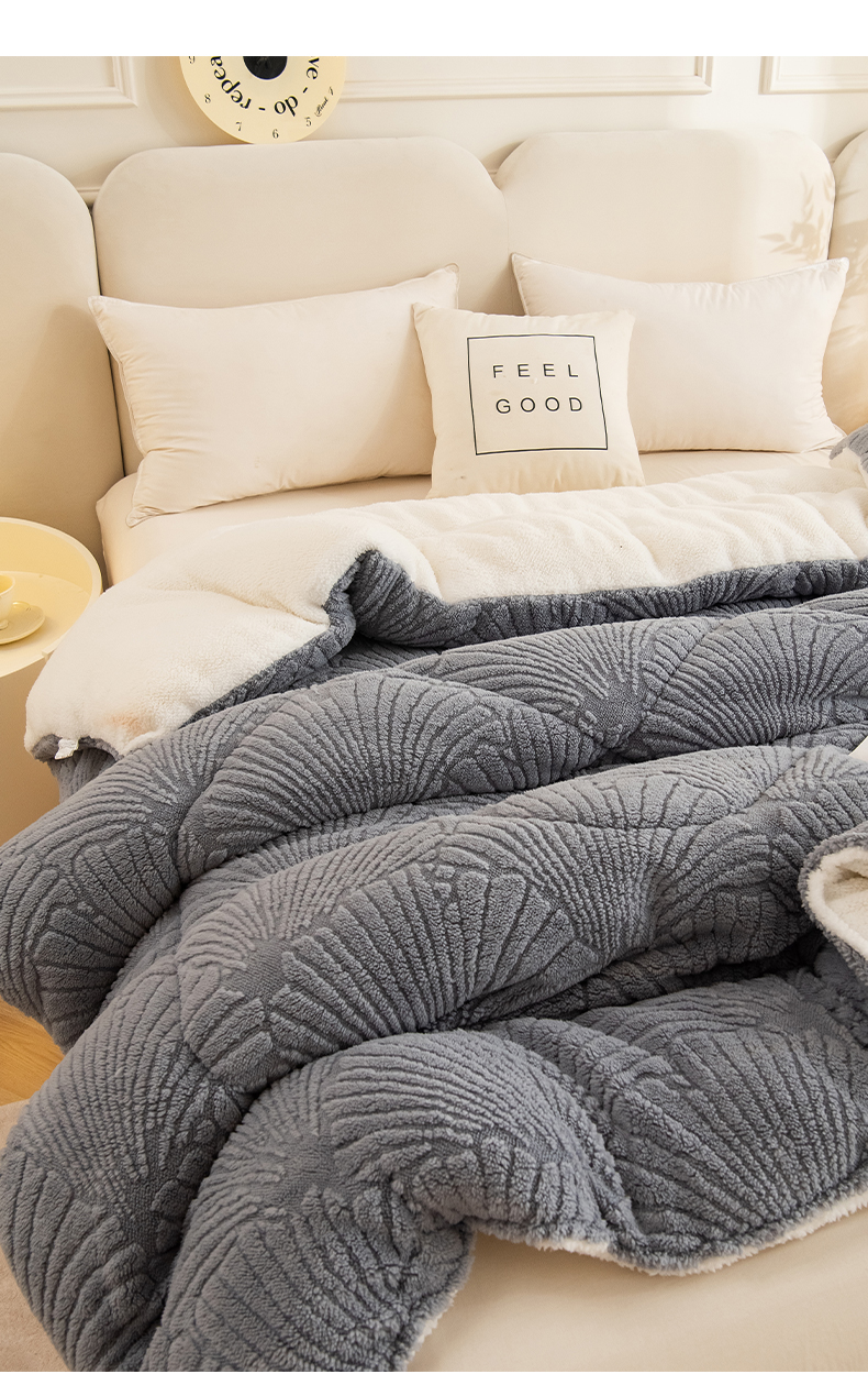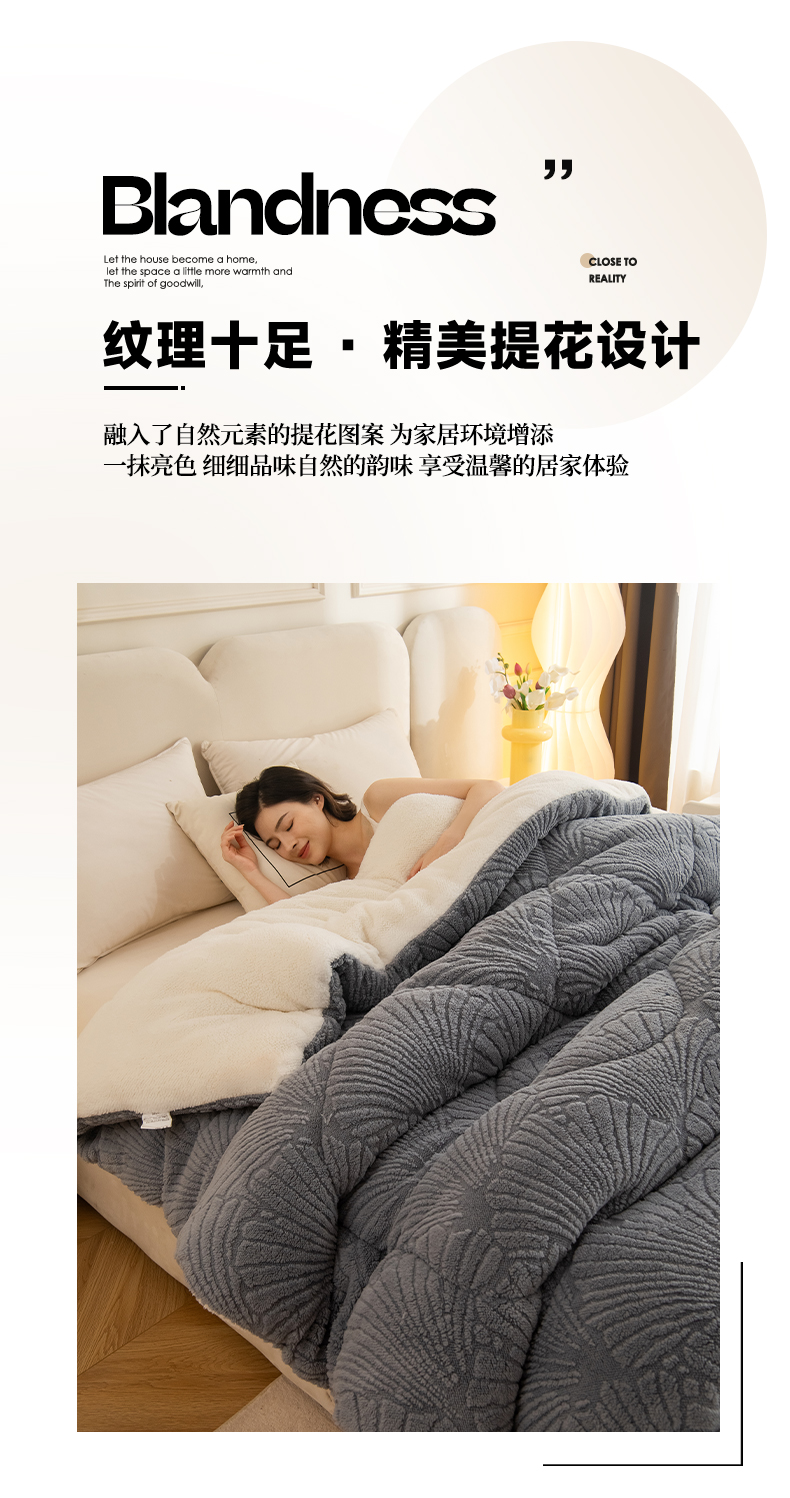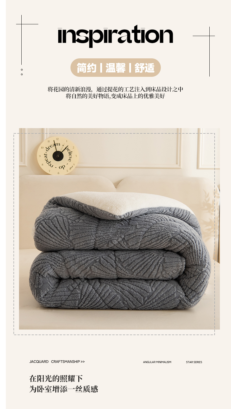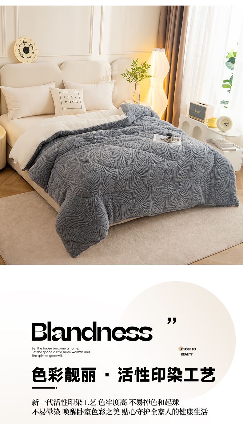 商品名称:畅销被业 2025新款跨境外贸塔芙绒羊羔绒提花系列冬被子被芯 银杏叶浅灰